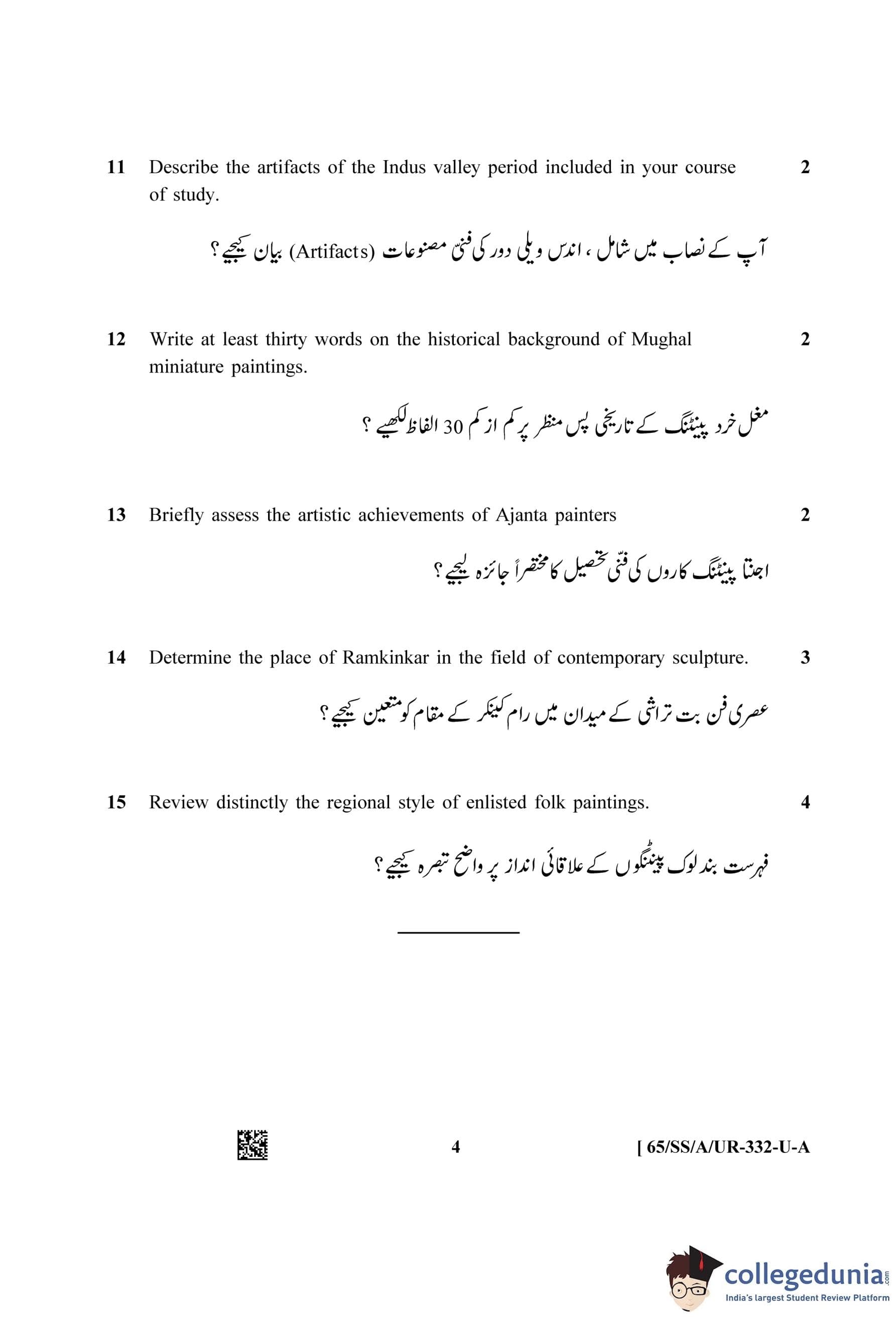 NIOS Class 12 Painting Urdu Question Paper 2023 with Answer Key pdf (Set A) is available for download here. The exam was conducted by National Institute of Open Schooling on April 11, 2023 in the Afternoon Session 2.30 PM to 4 PM. The question paper comprised a total of 15 questions.