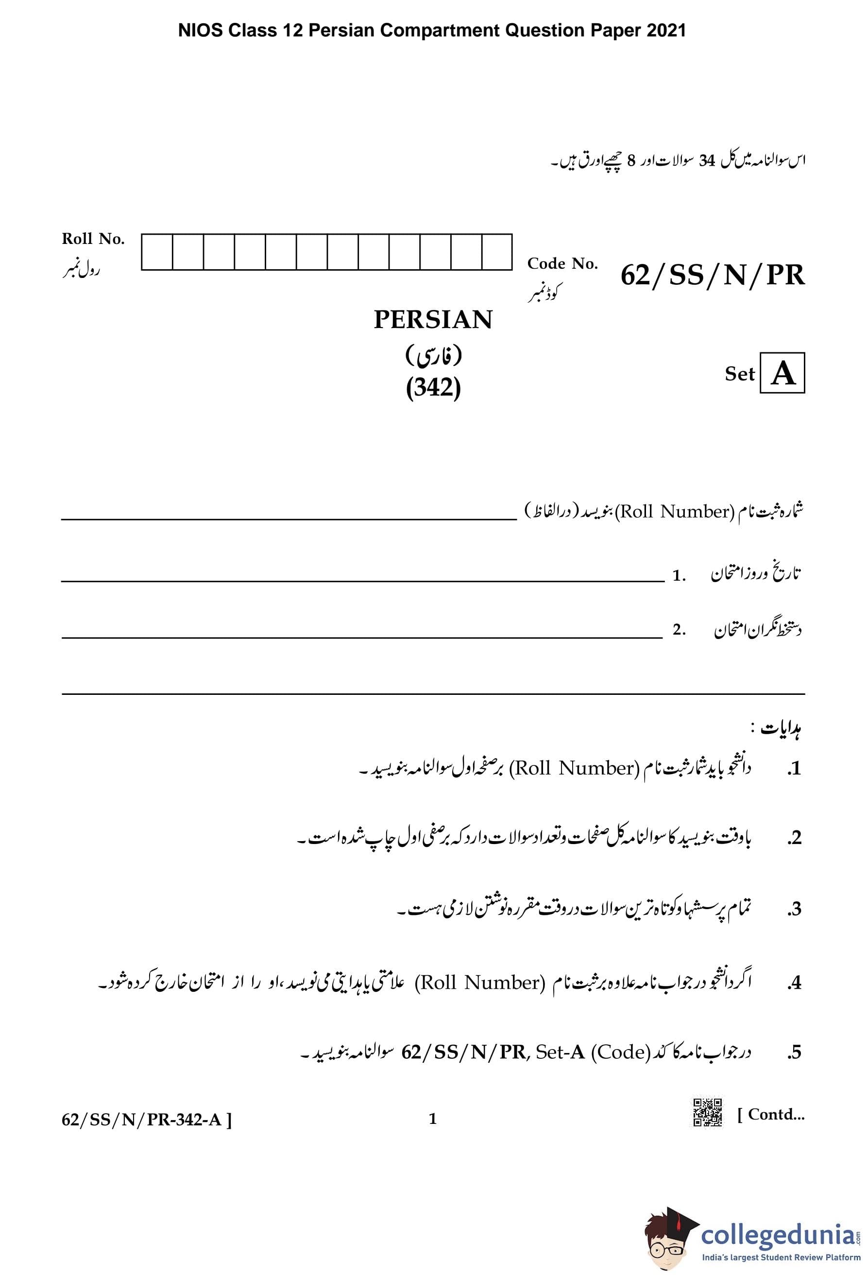 | NIOS Class 12 Persian Question Paper 2021 PDF | NIOS Class 12 Persian Answer Key 2021 PDF |