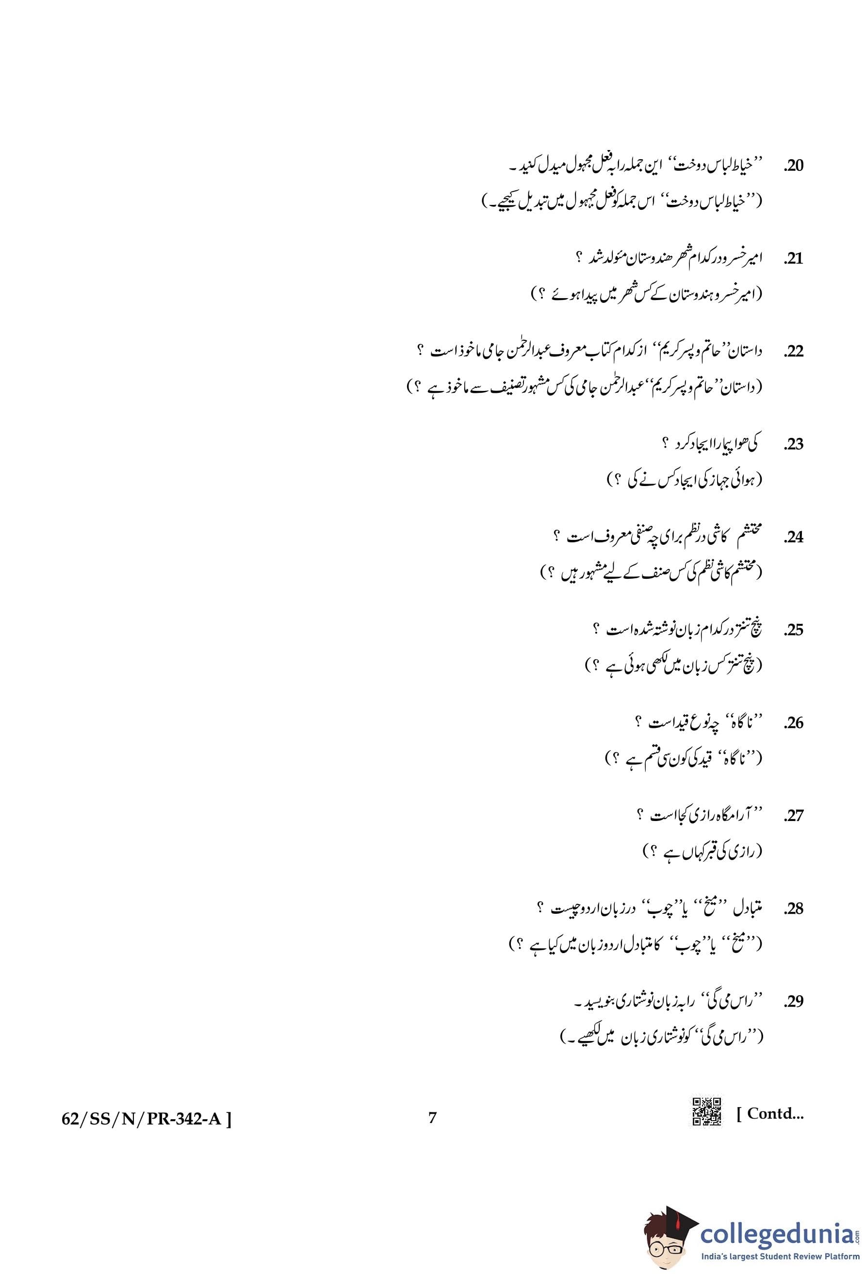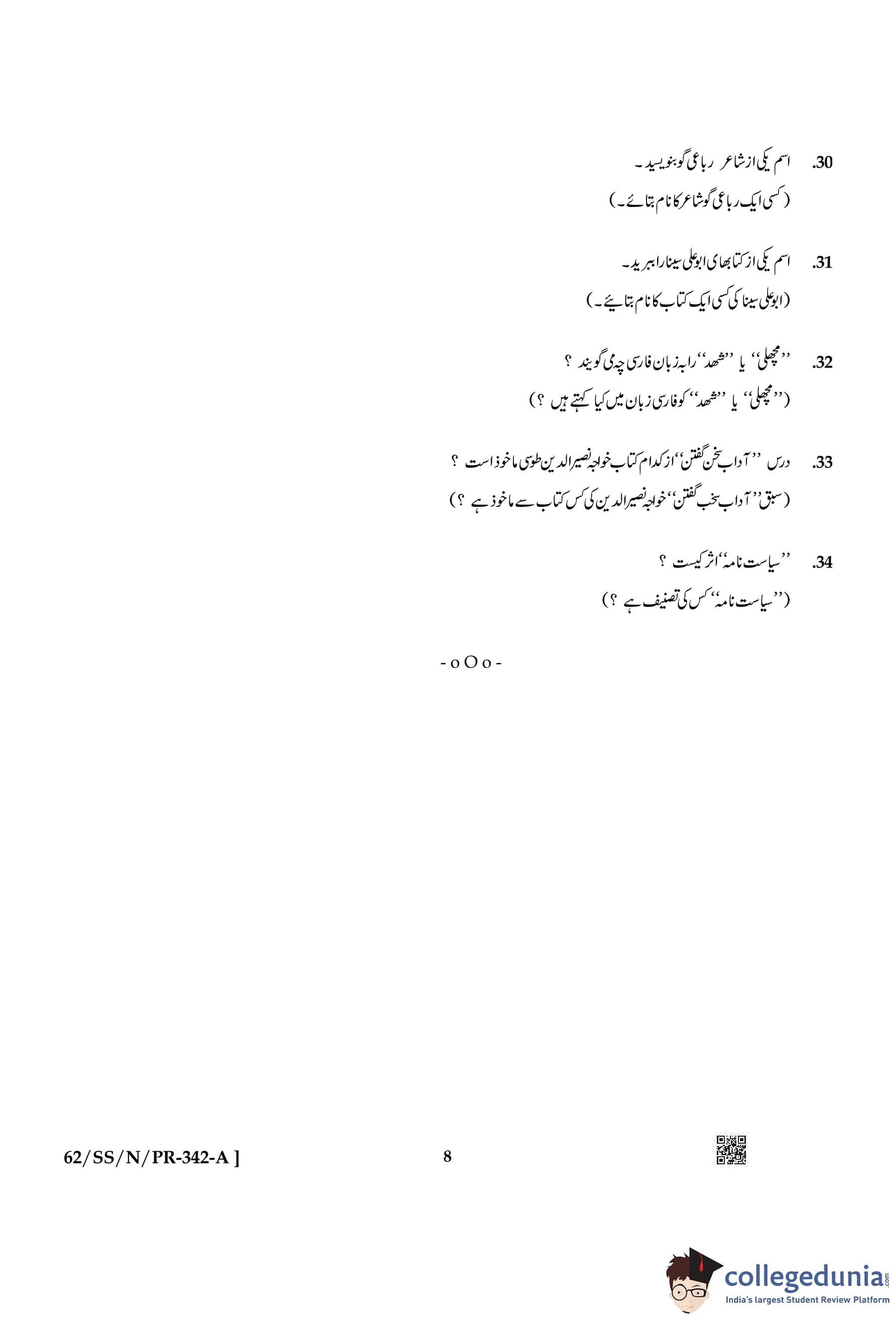 NIOS Class 12 Persian Compartment Question Paper 2021 with Answer Key pdf is available for download here. The exam was conducted by National Institute of Open Schooling on November 26, 2021 in the Afternoon Session 2:30 PM to 5:30 PM. The question paper comprised a total of 34 questions.