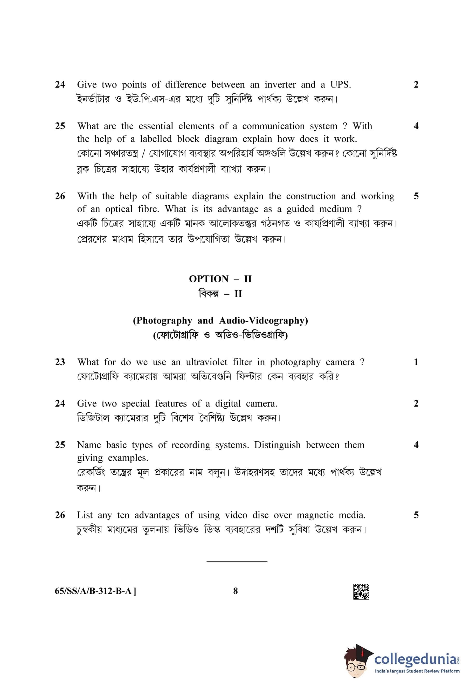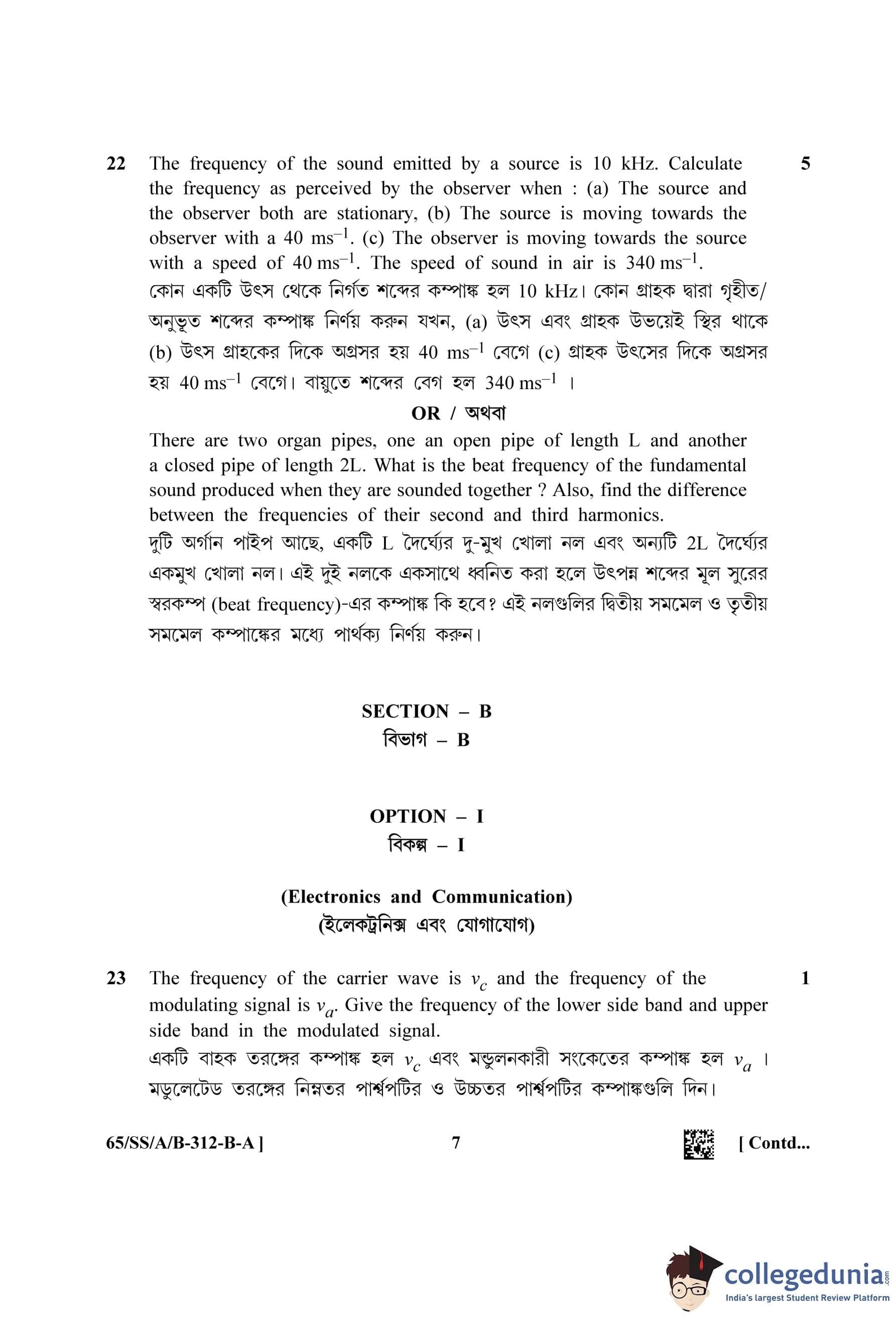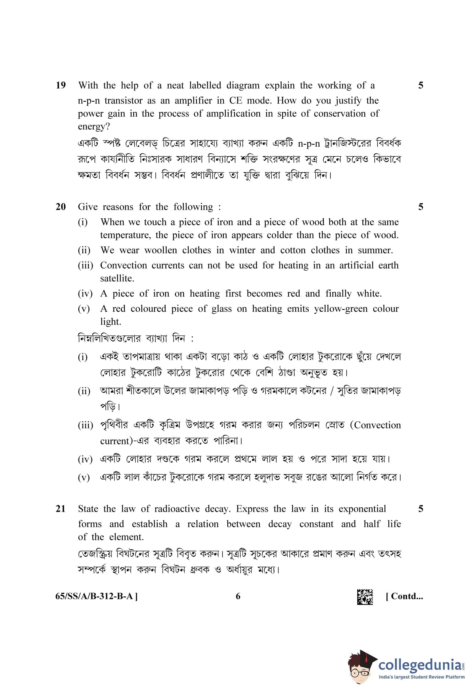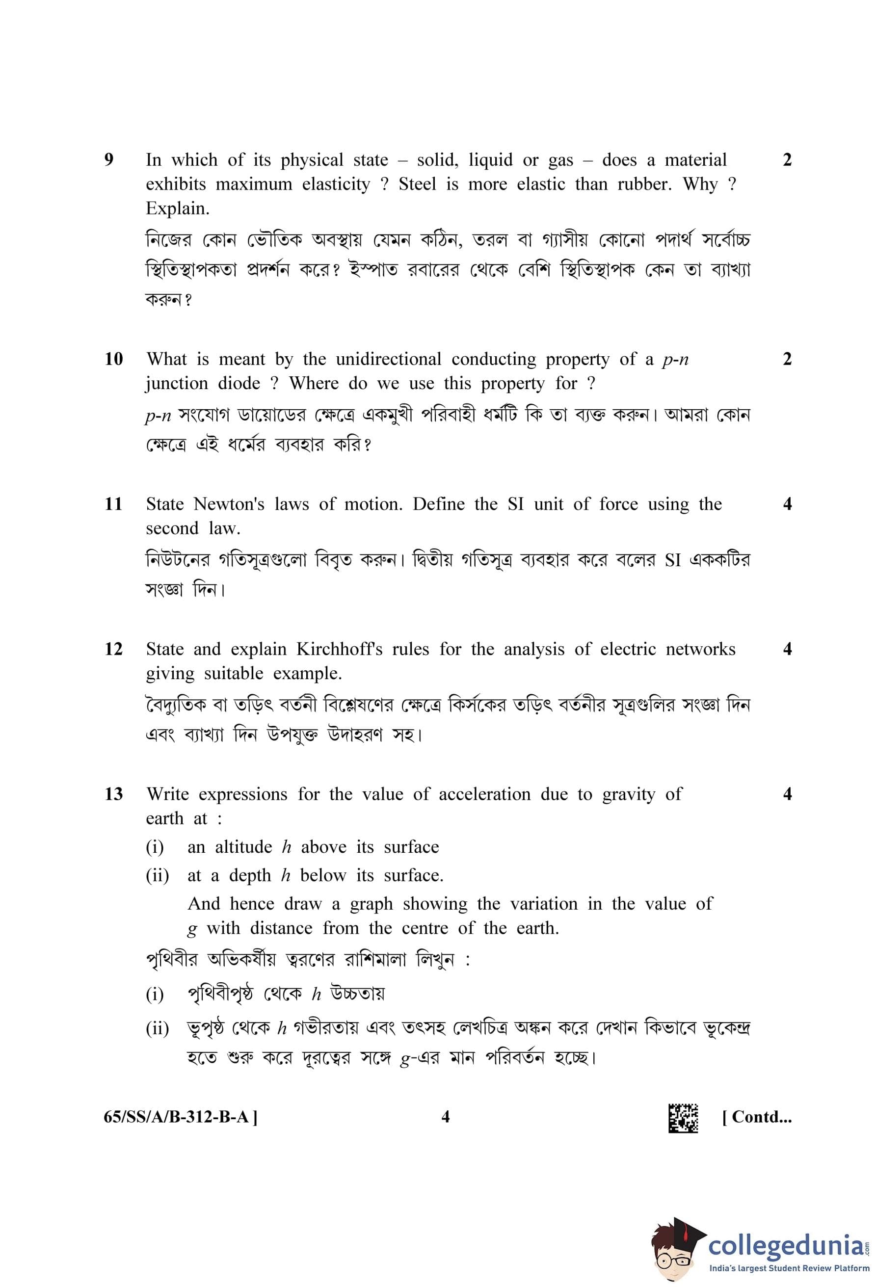 NIOS Class 12 Physics Bengali Question Paper 2023 with Answer Key Set A
