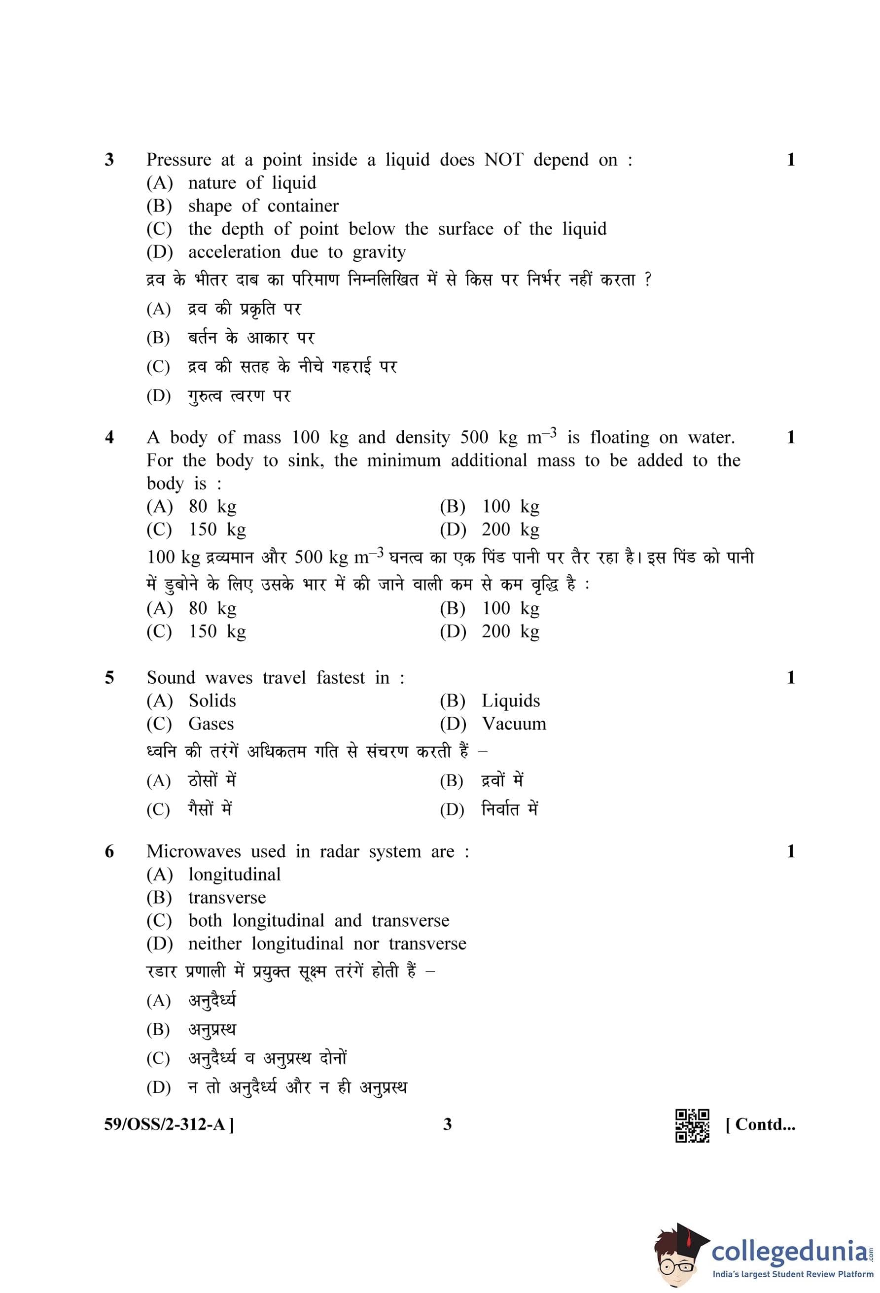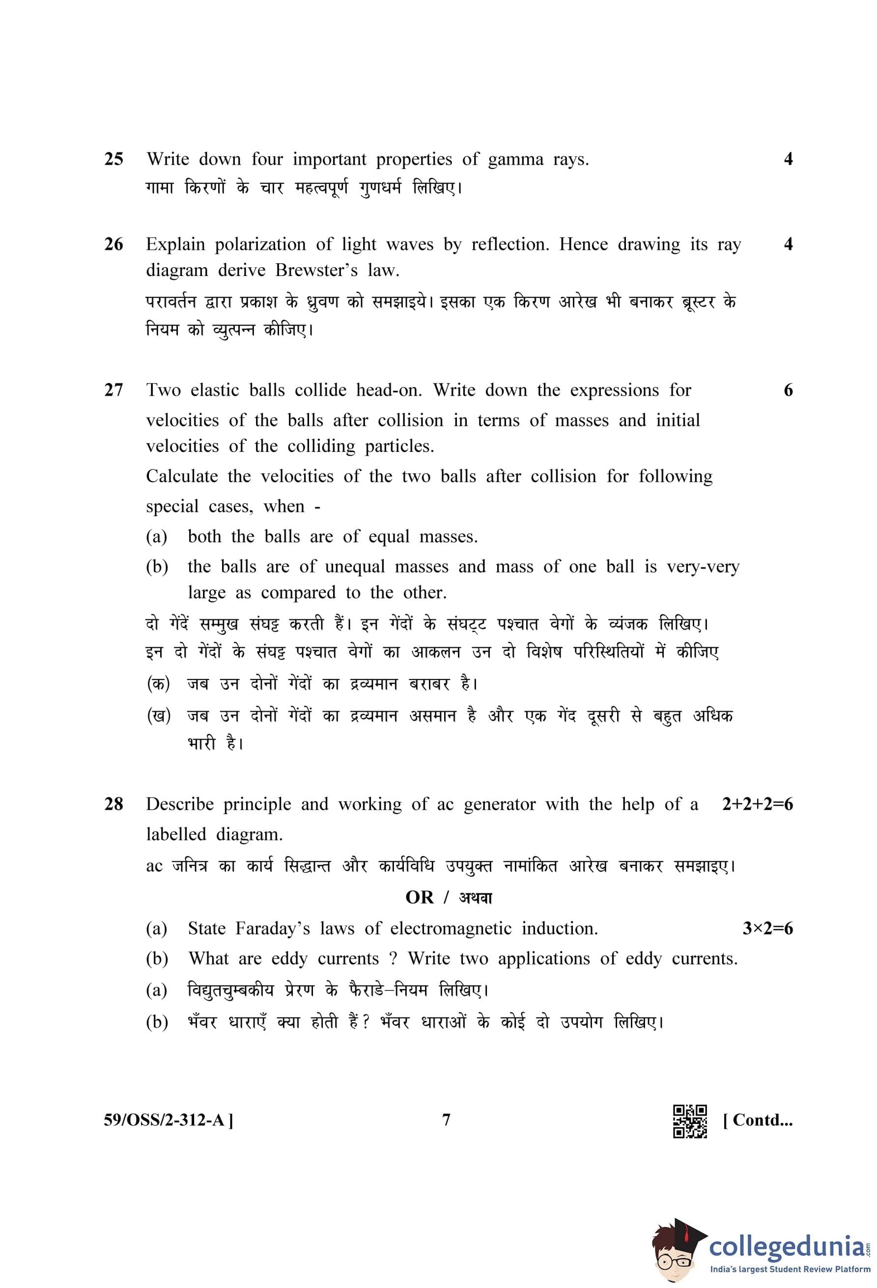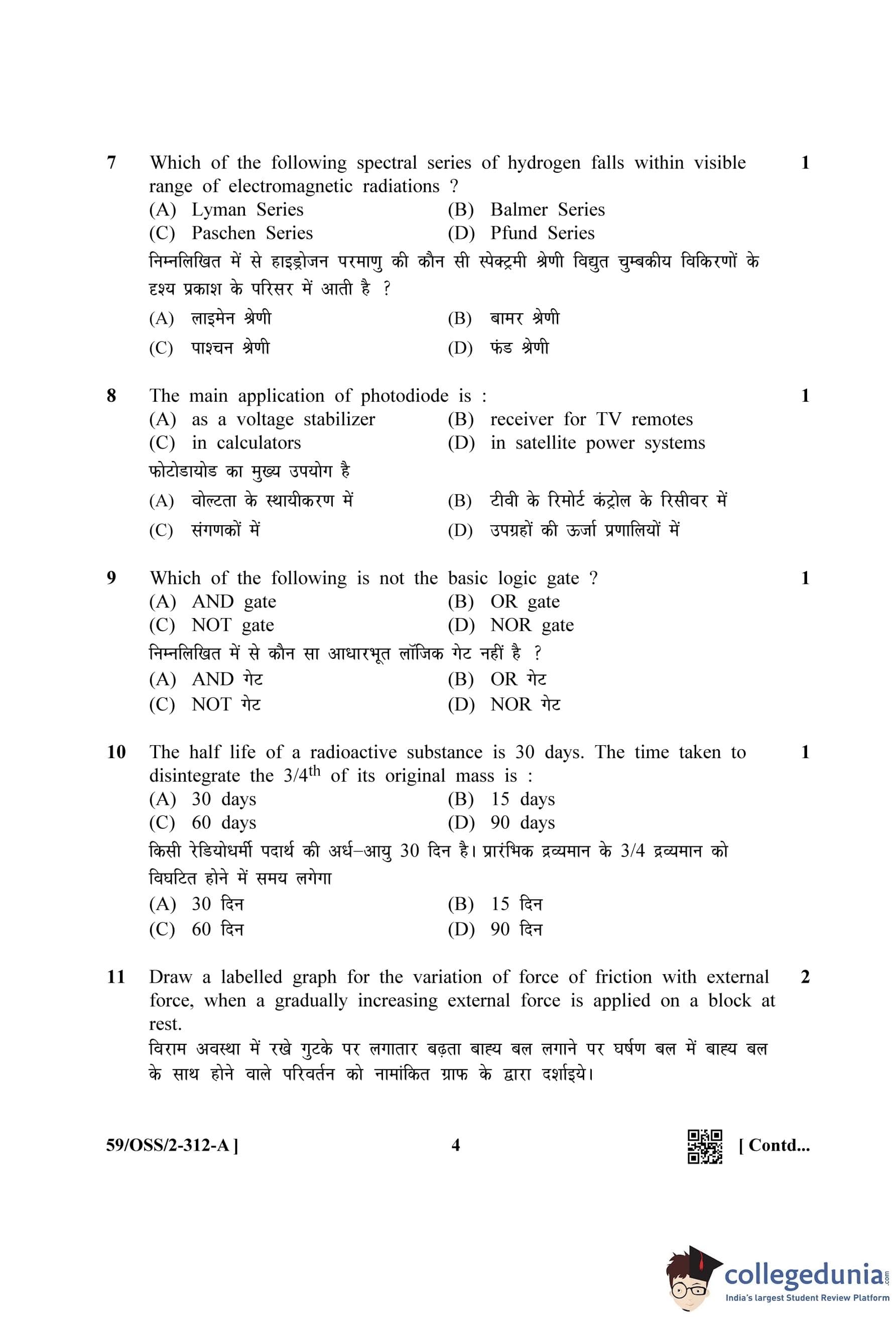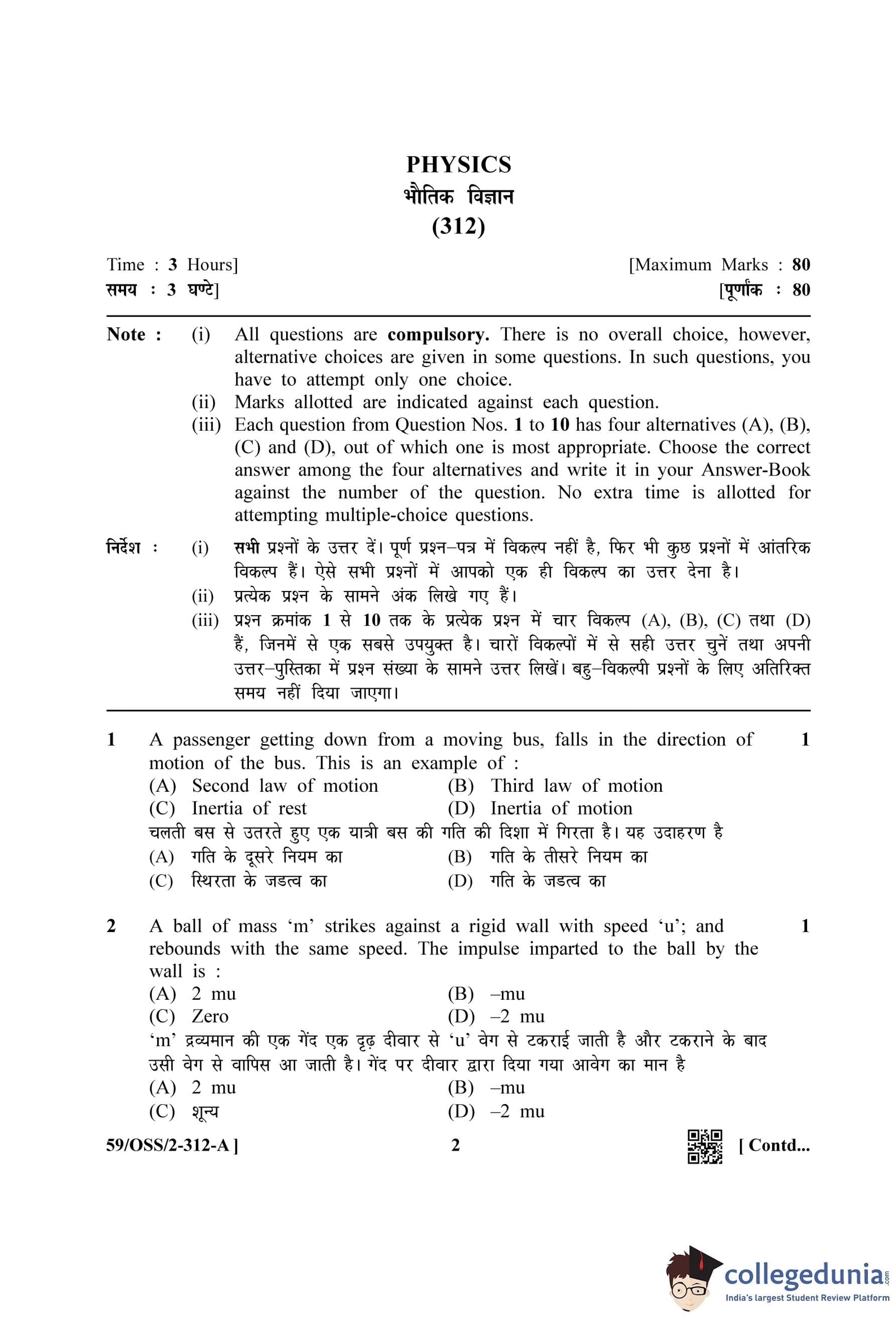 NIOS Class 12 Physics (Set A) Compartment Question Paper 2019 with Answer Key