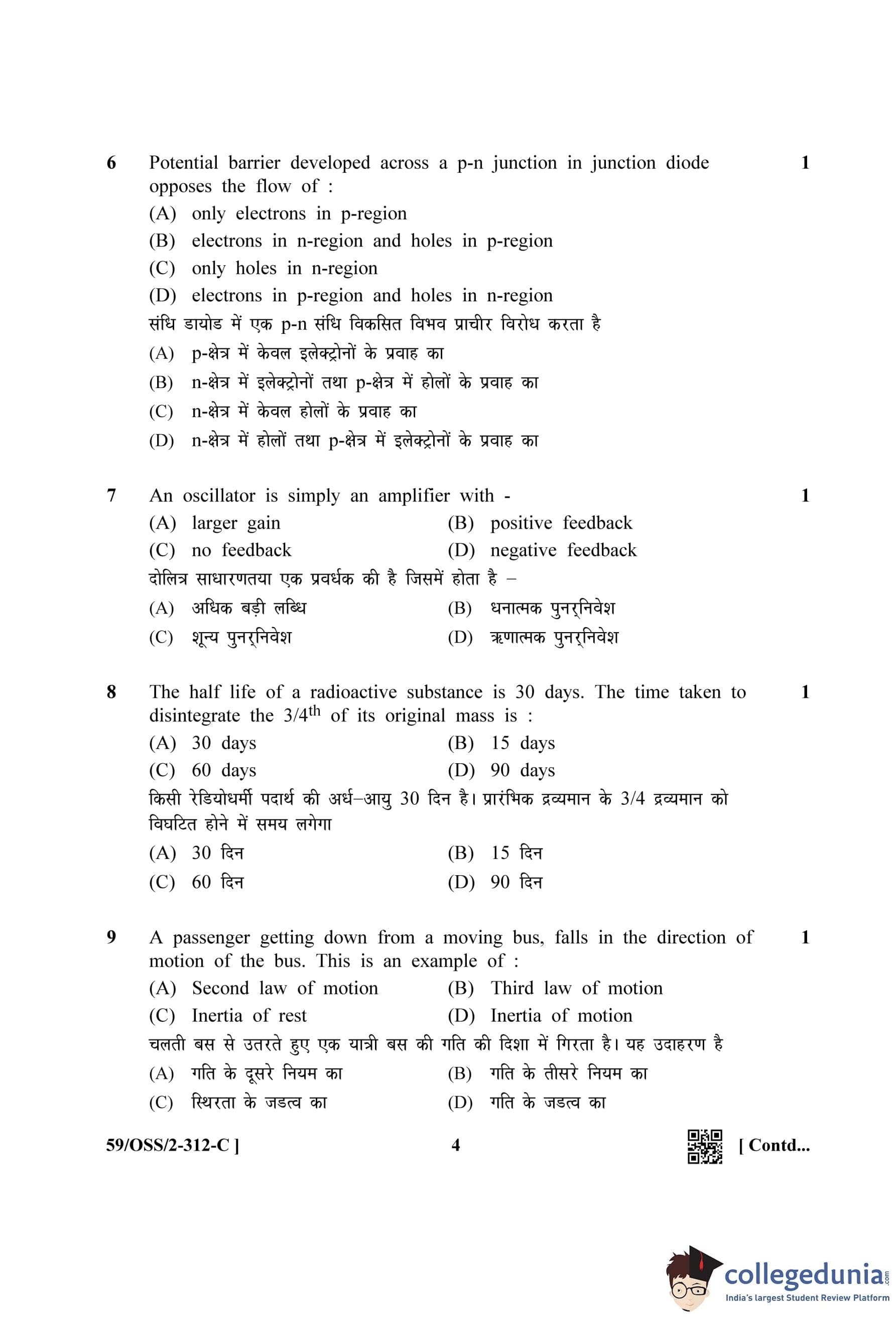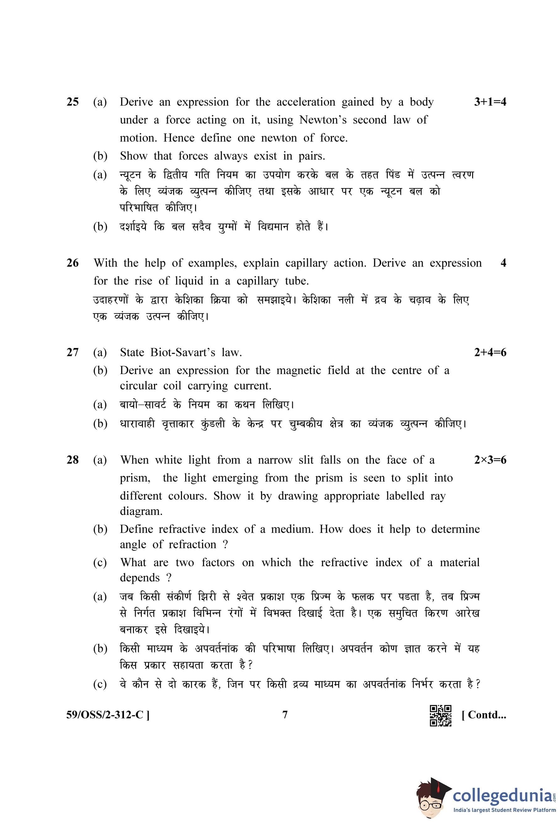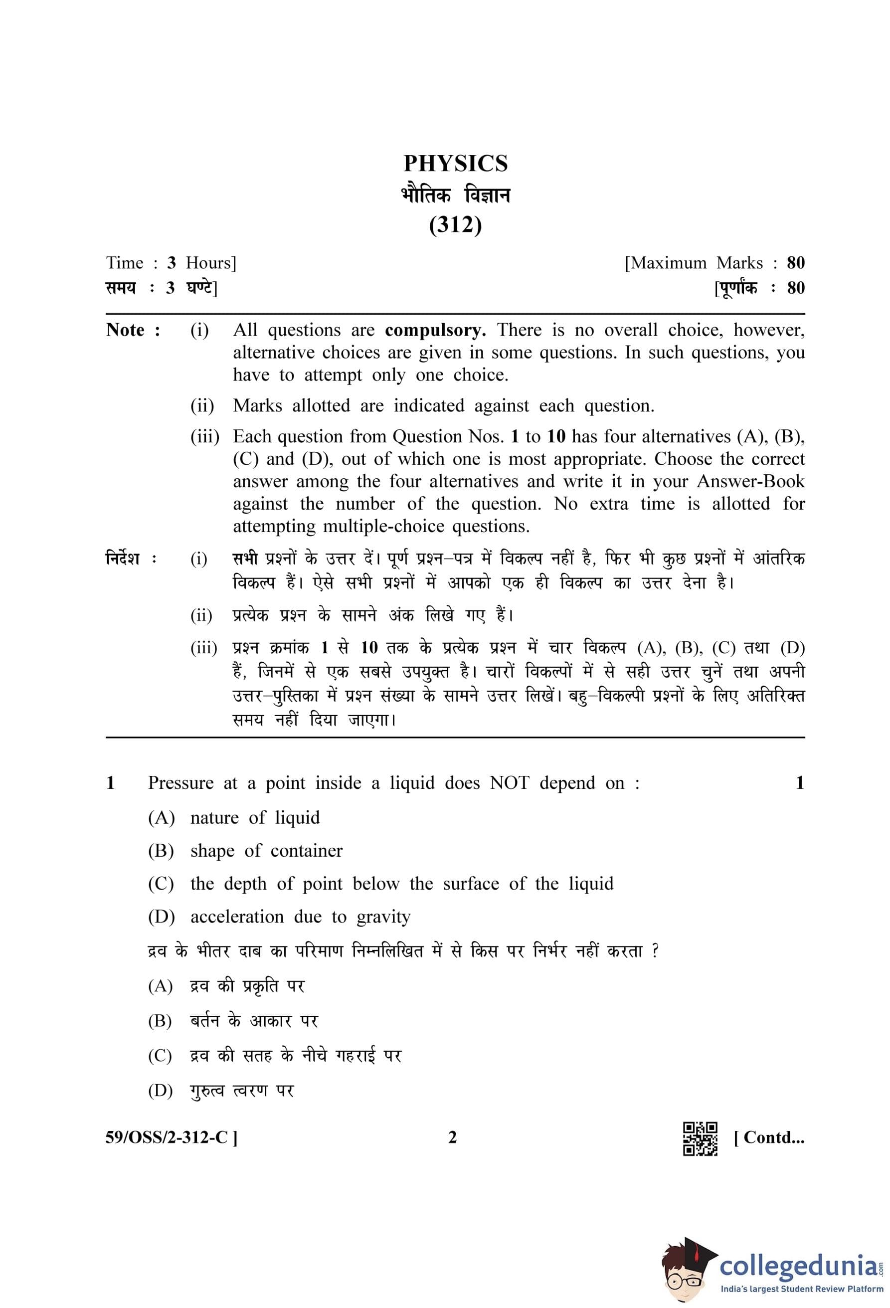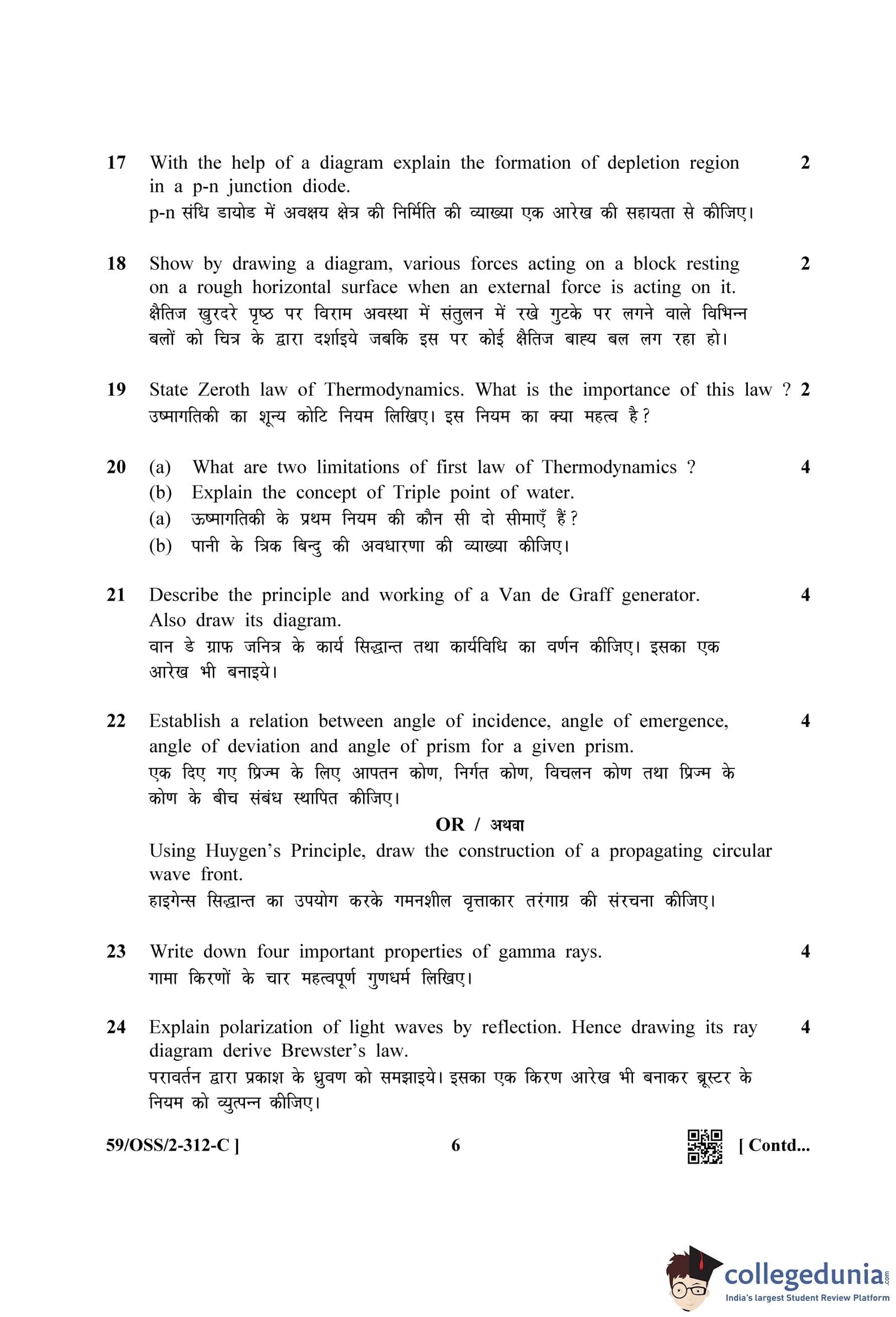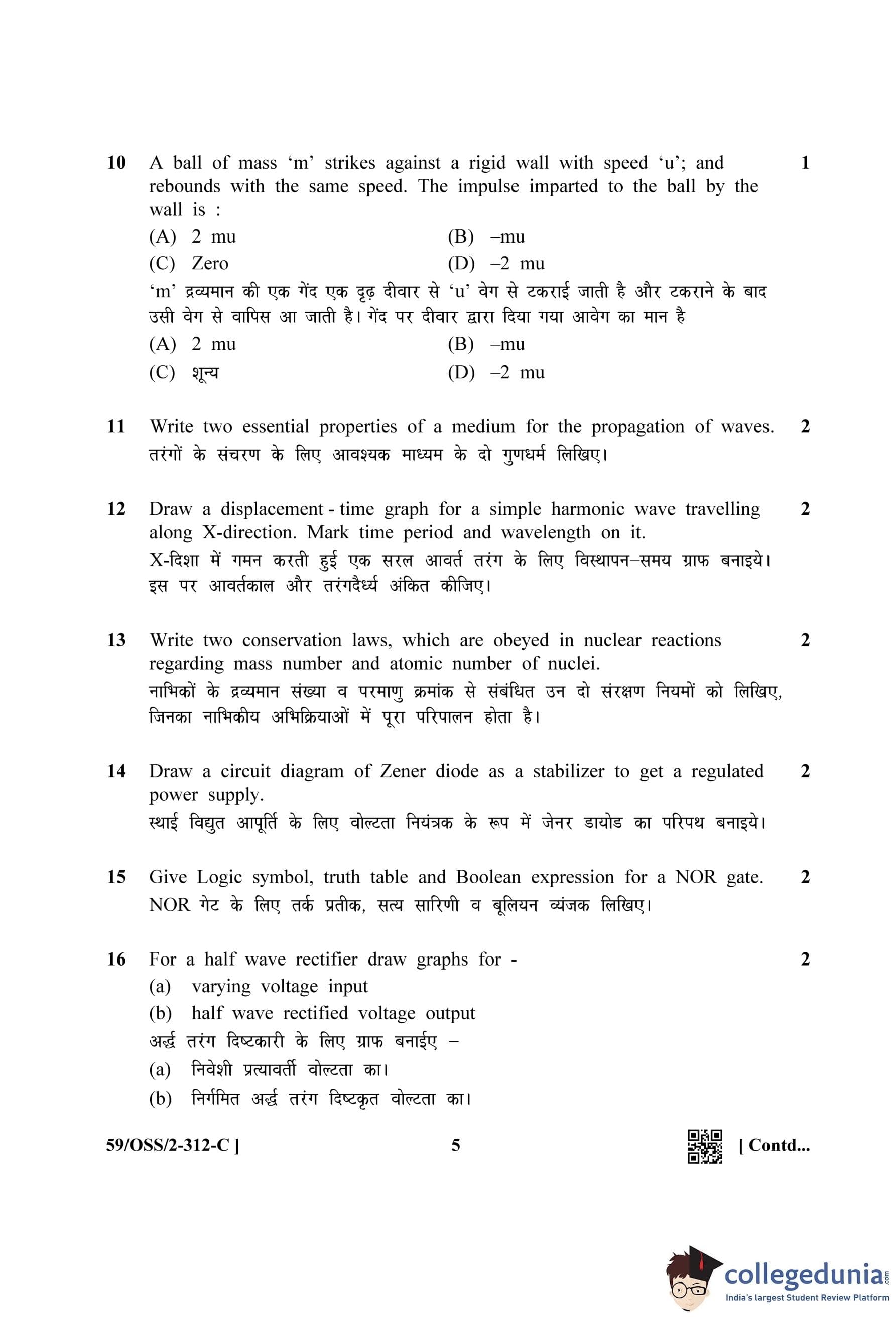 NIOS Class 12 Physics (Set C) Compartment Question Paper 2019 with Answer Key
