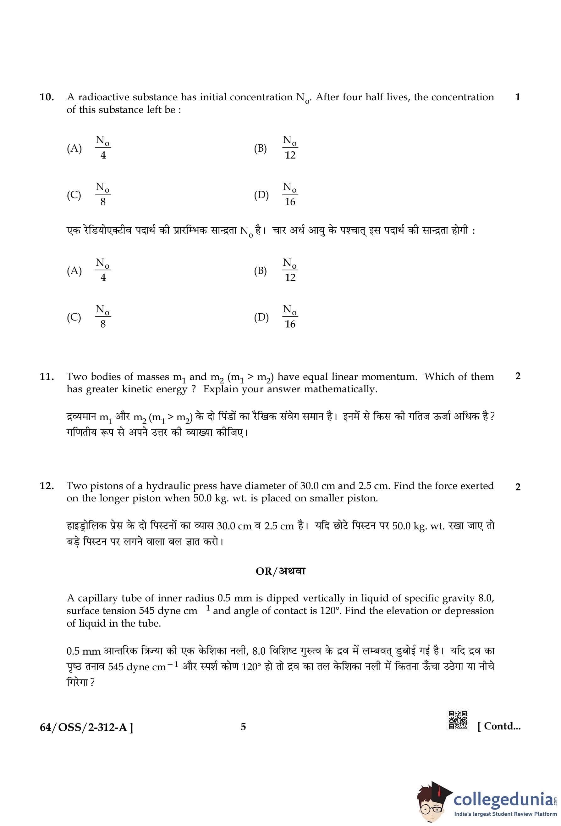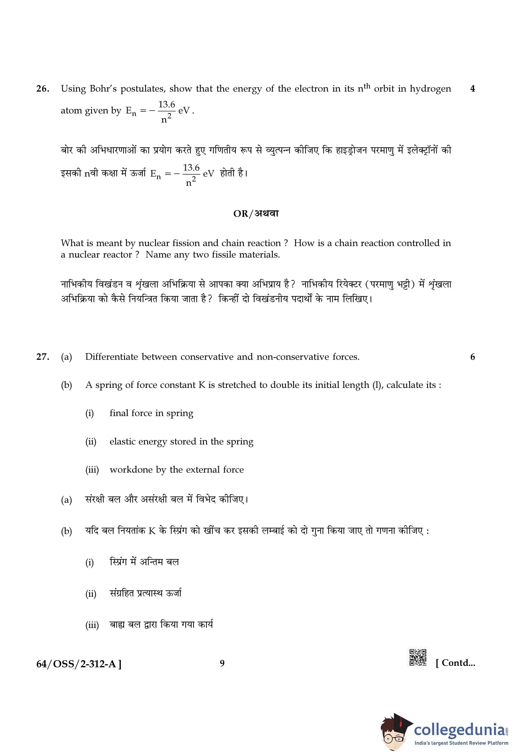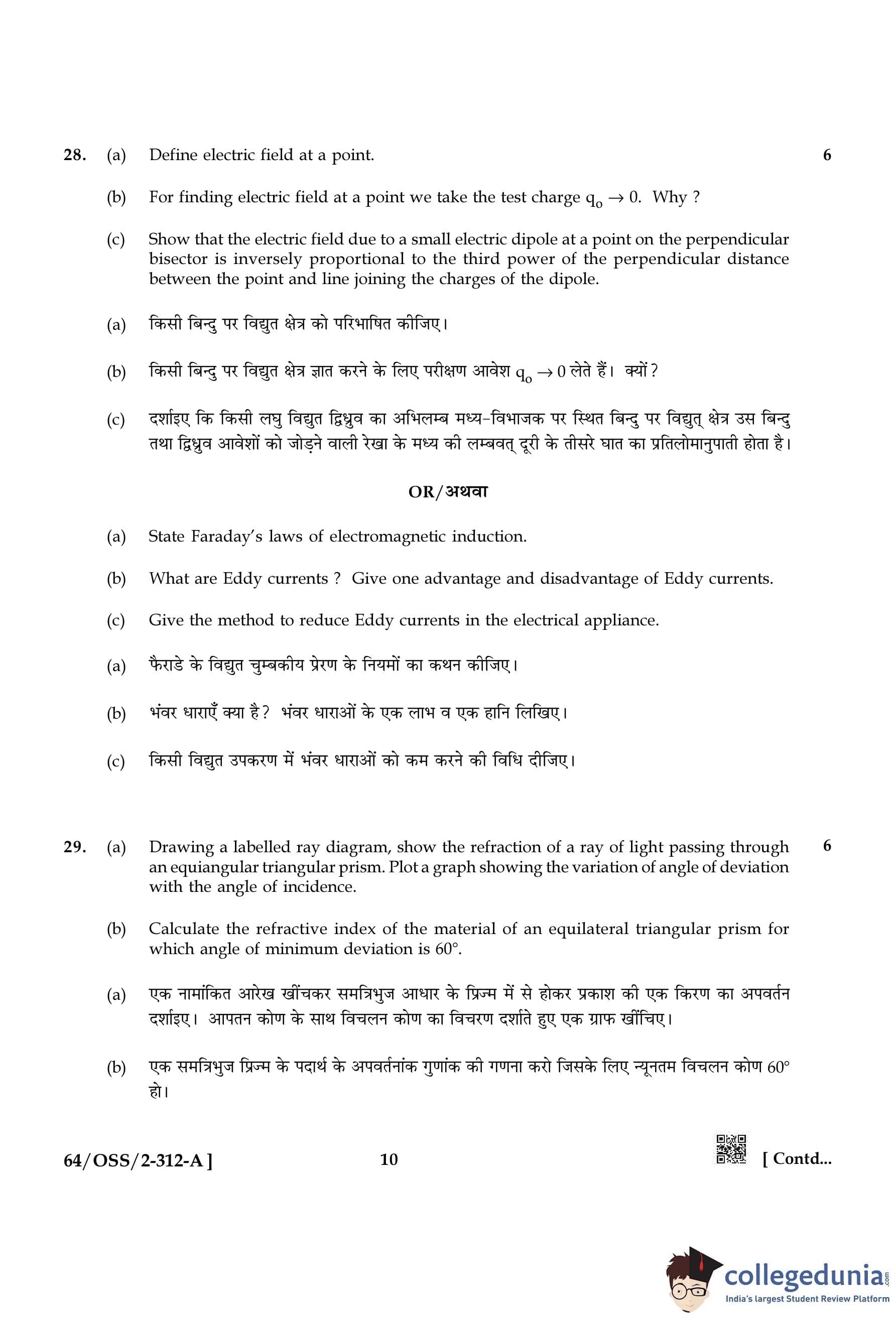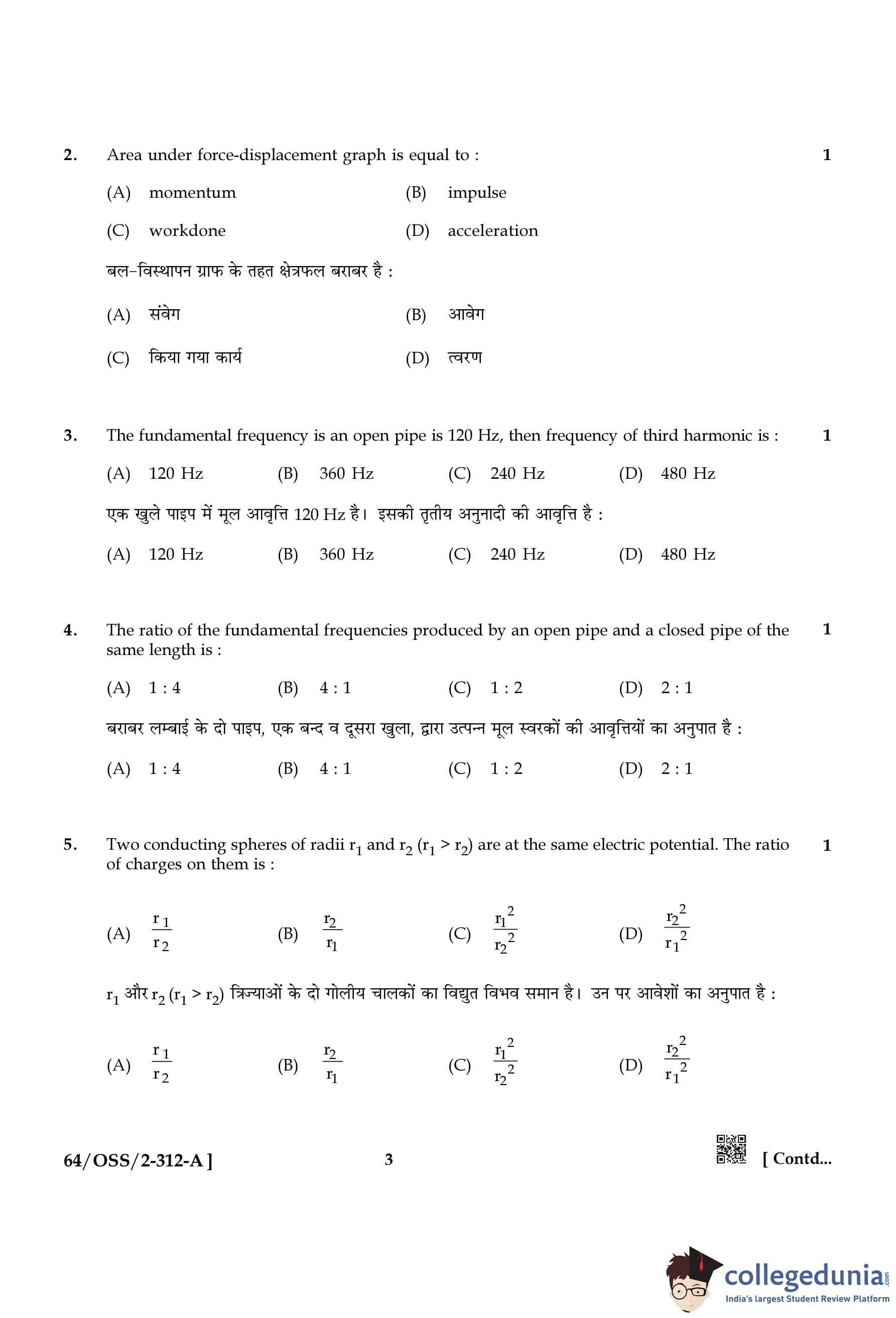 NIOS Class 12 Physics (Set A) Compartment Question Paper 2022 with Answer Key