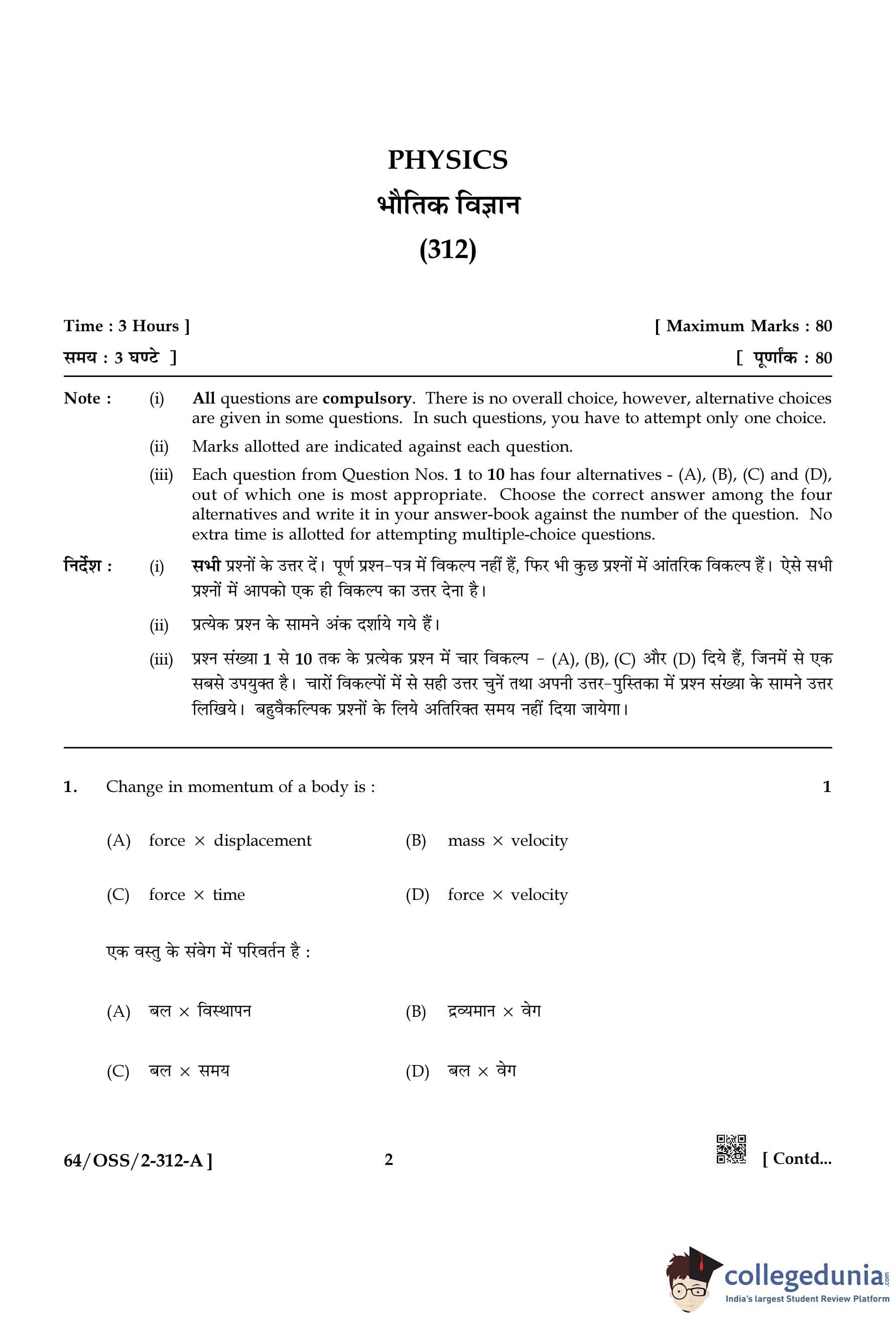 NIOS Class 12 Physics Compartment Question Paper 2022 with Answer Key pdf (Set A) is available for download here. The exam was conducted by National Institute of Open Schooling on October 28, 2022 in the Afternoon Session 2:30 PM to 5:30 PM. The question paper comprised a total of 30 questions.