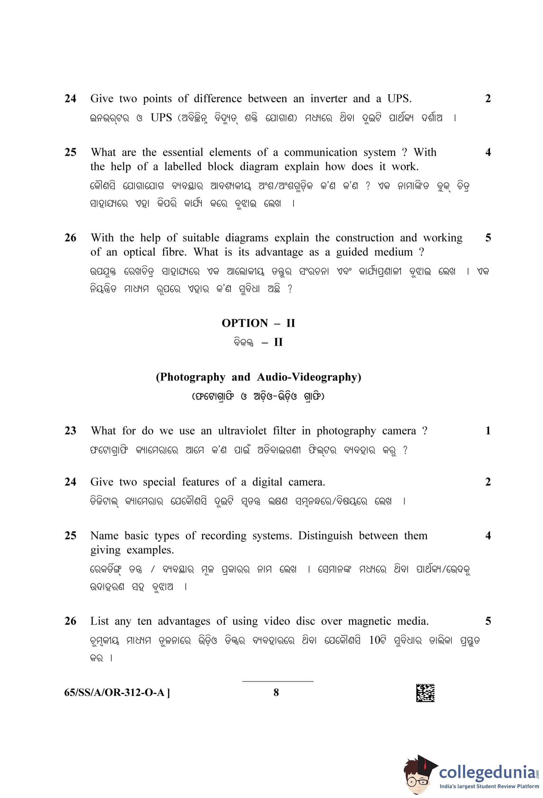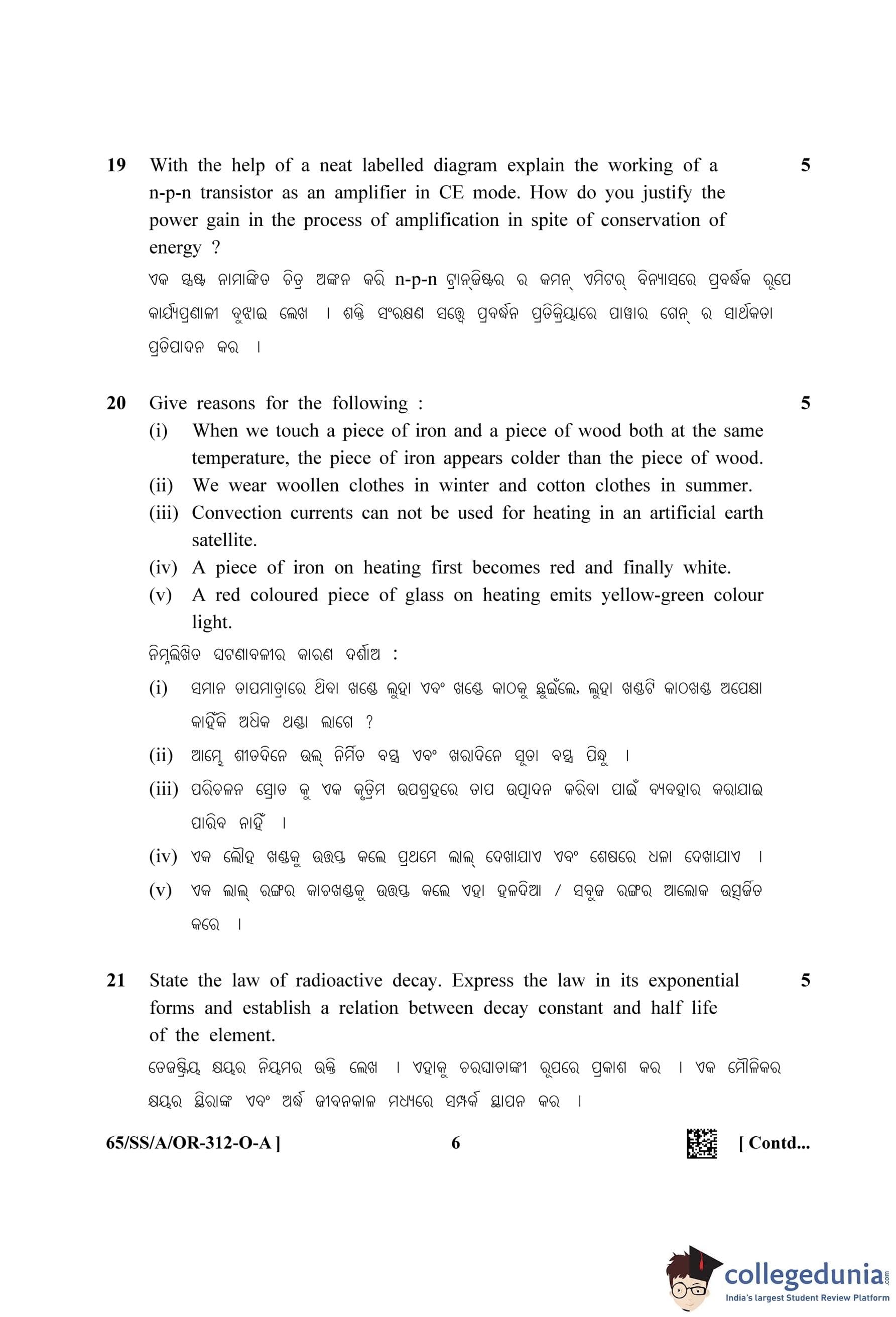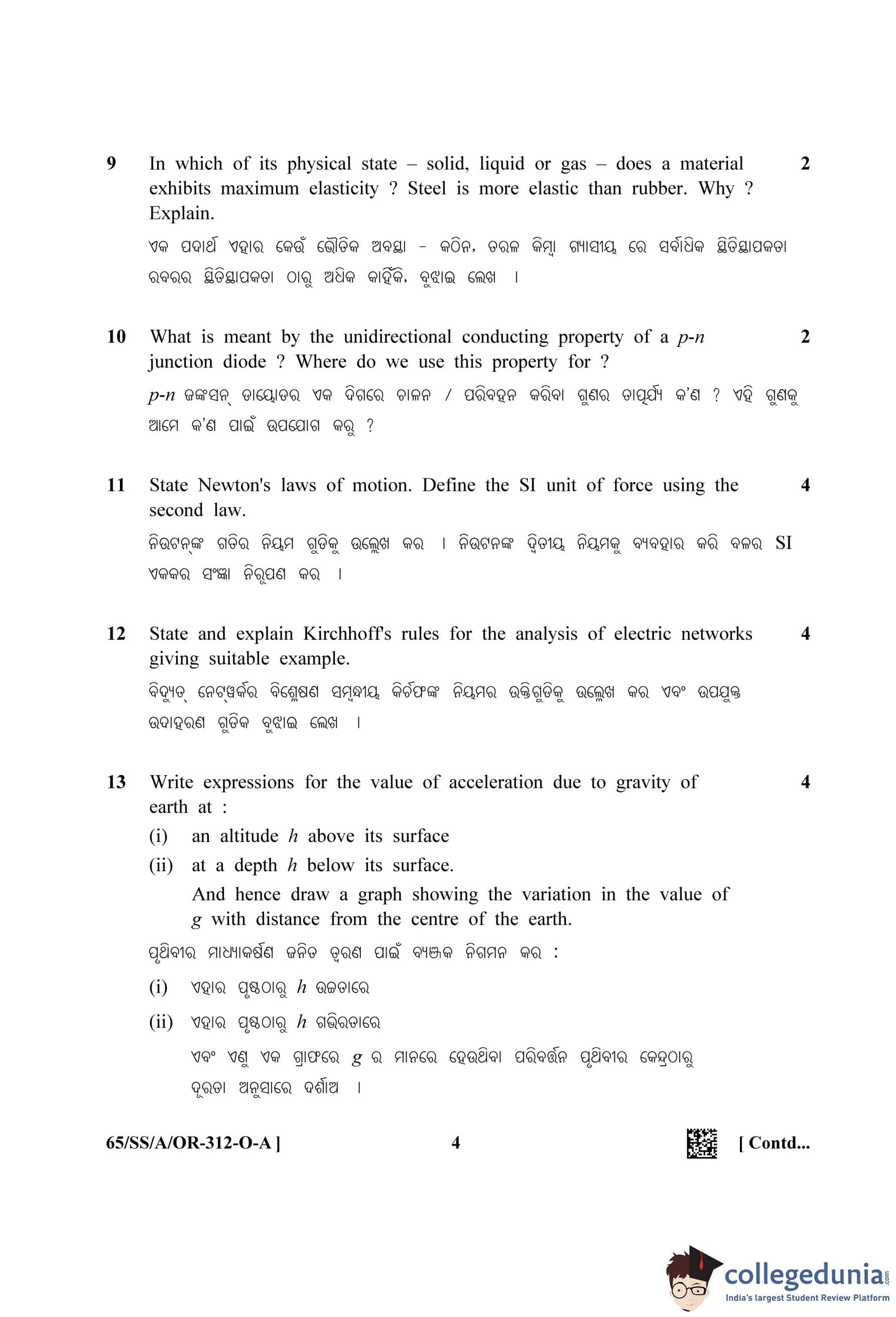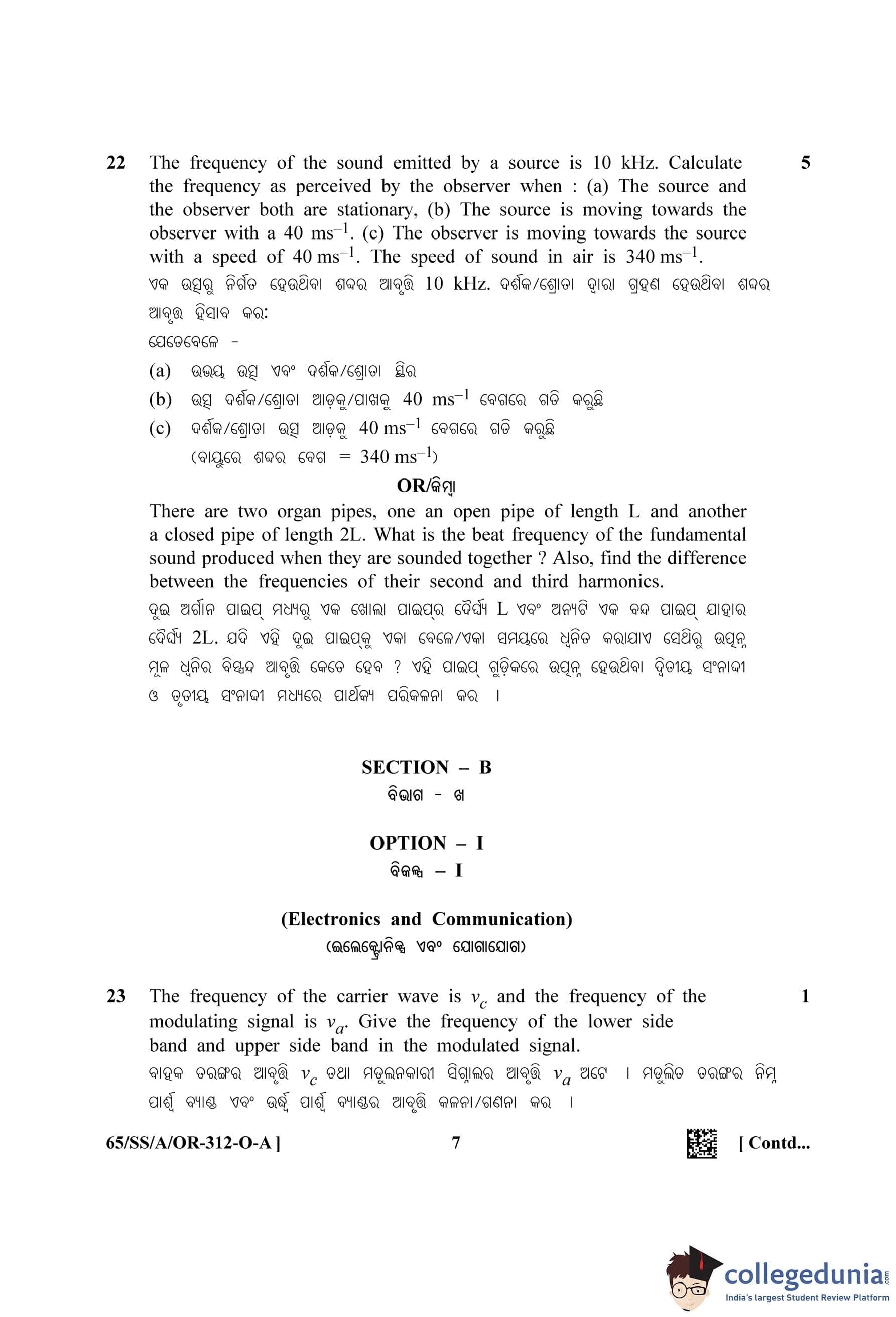 NIOS Class 12 Physics Oriya Question Paper 2023 with Answer Key Set A