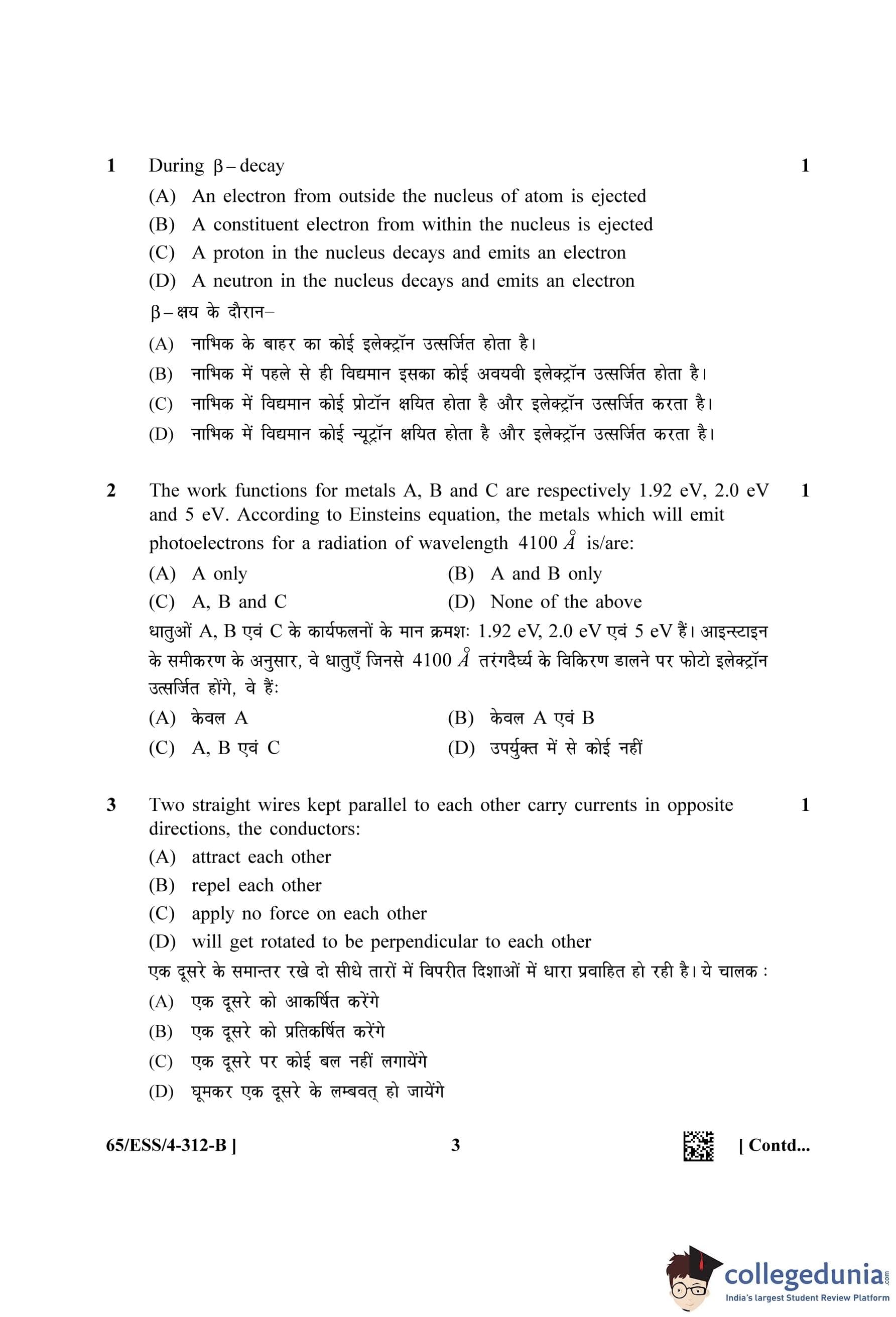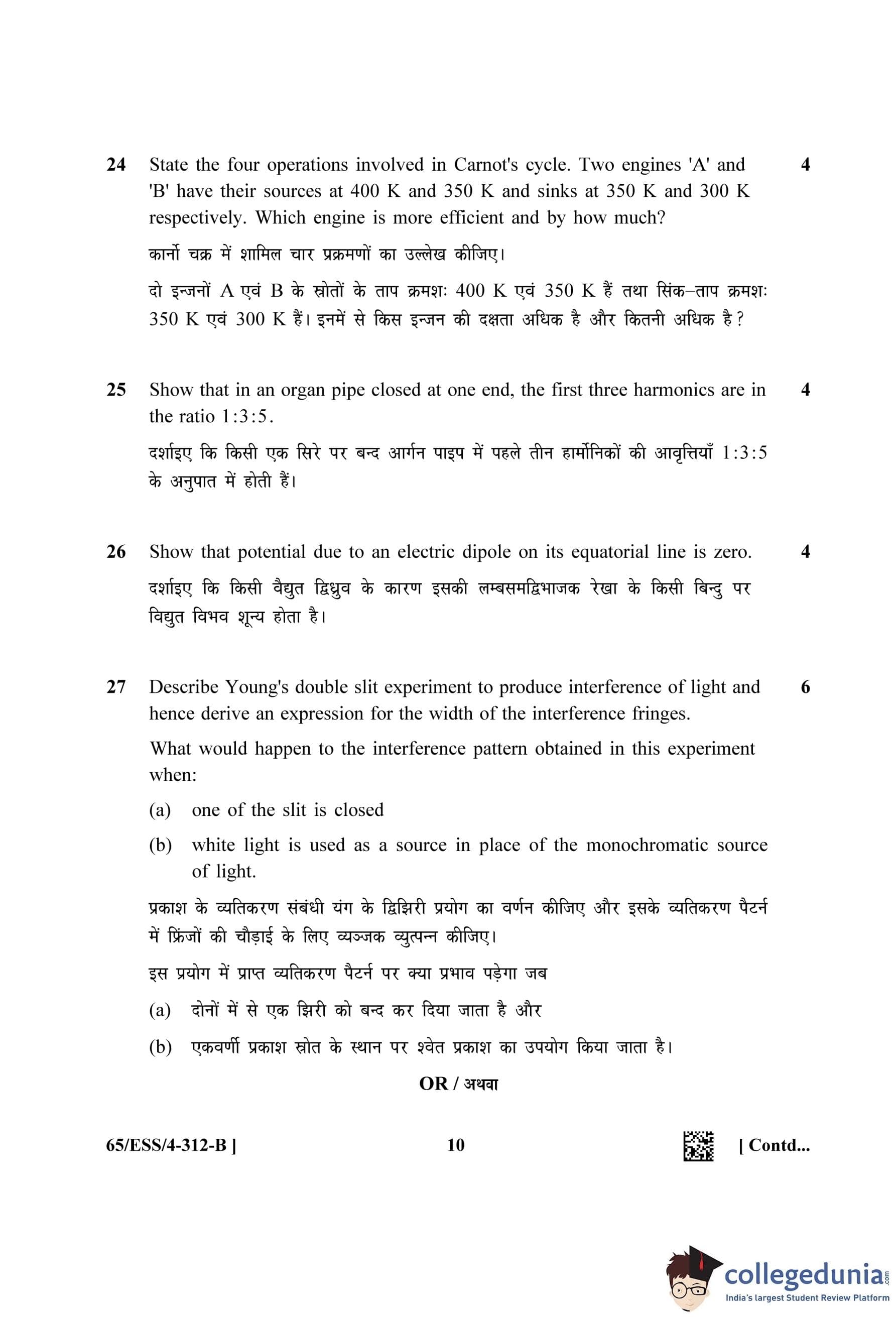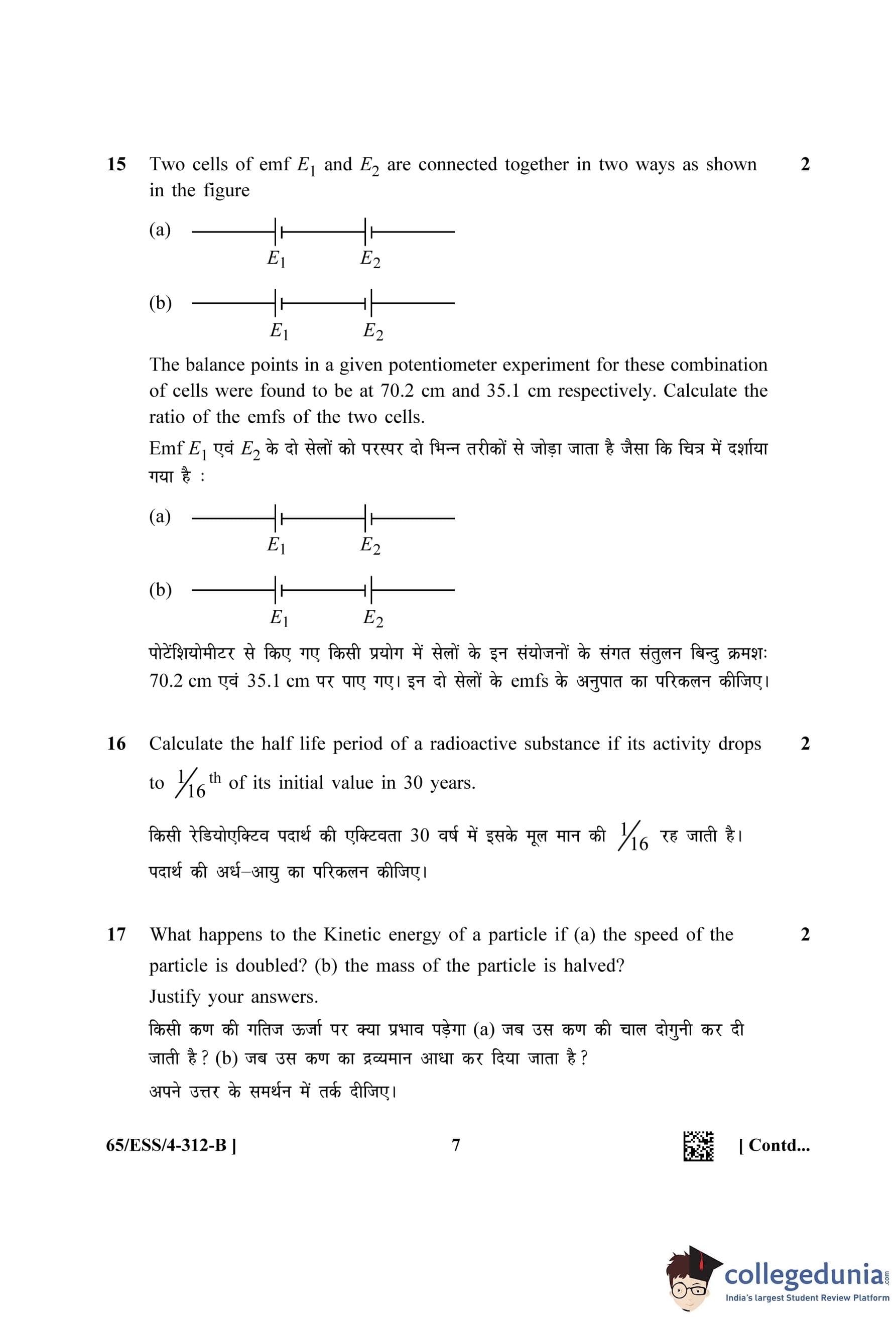 NIOS Class 12 Physics (Set B - ESS) Question Paper 2023 with Answer Key