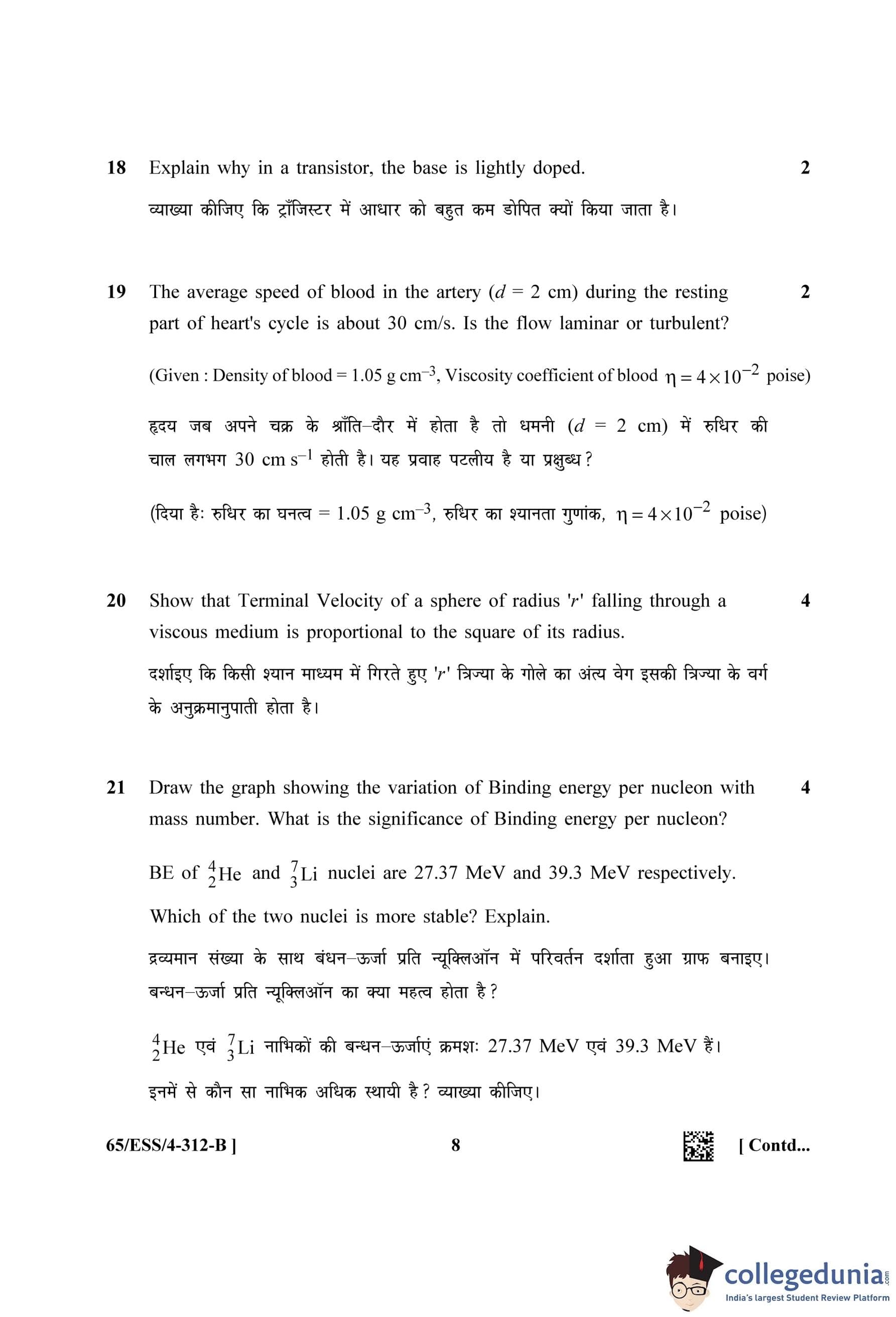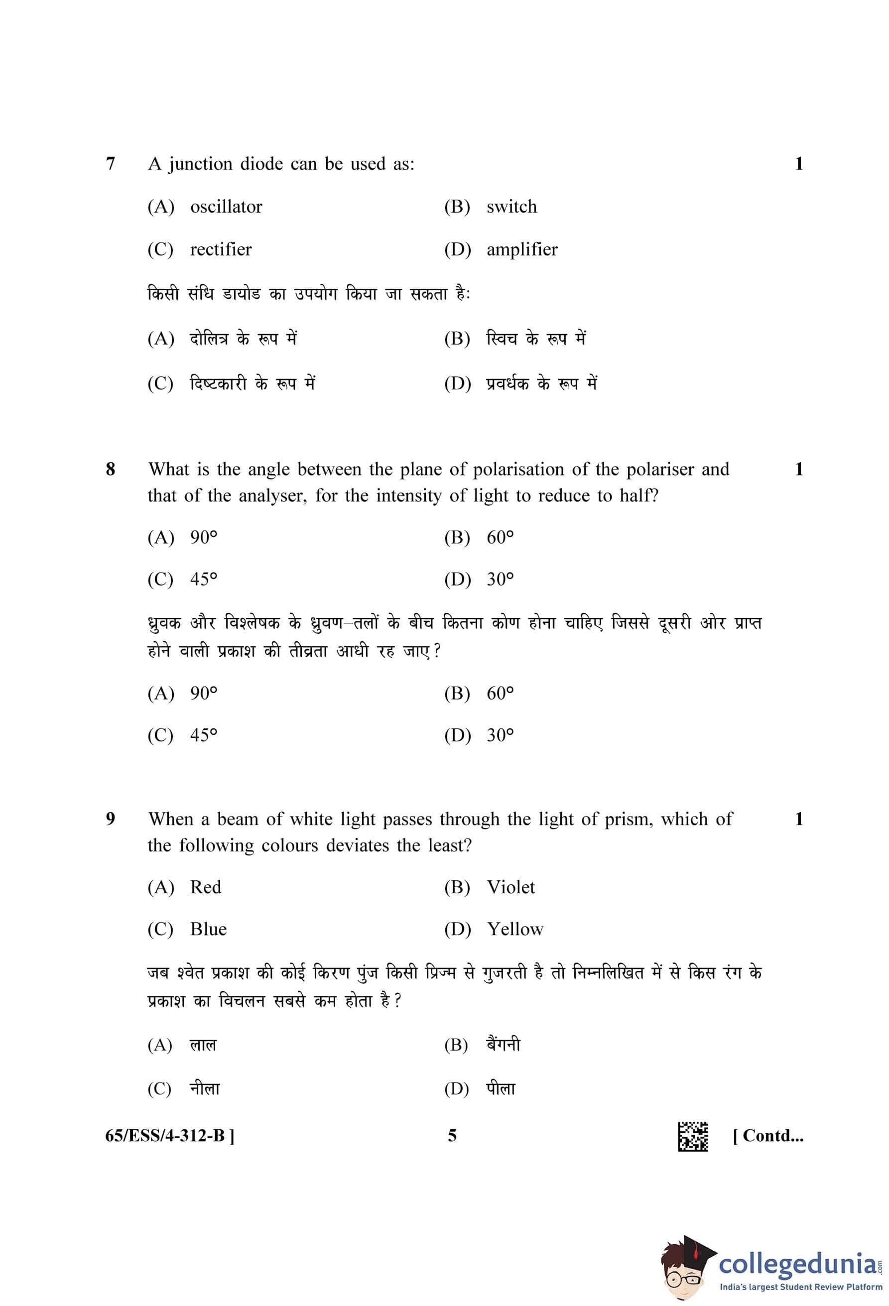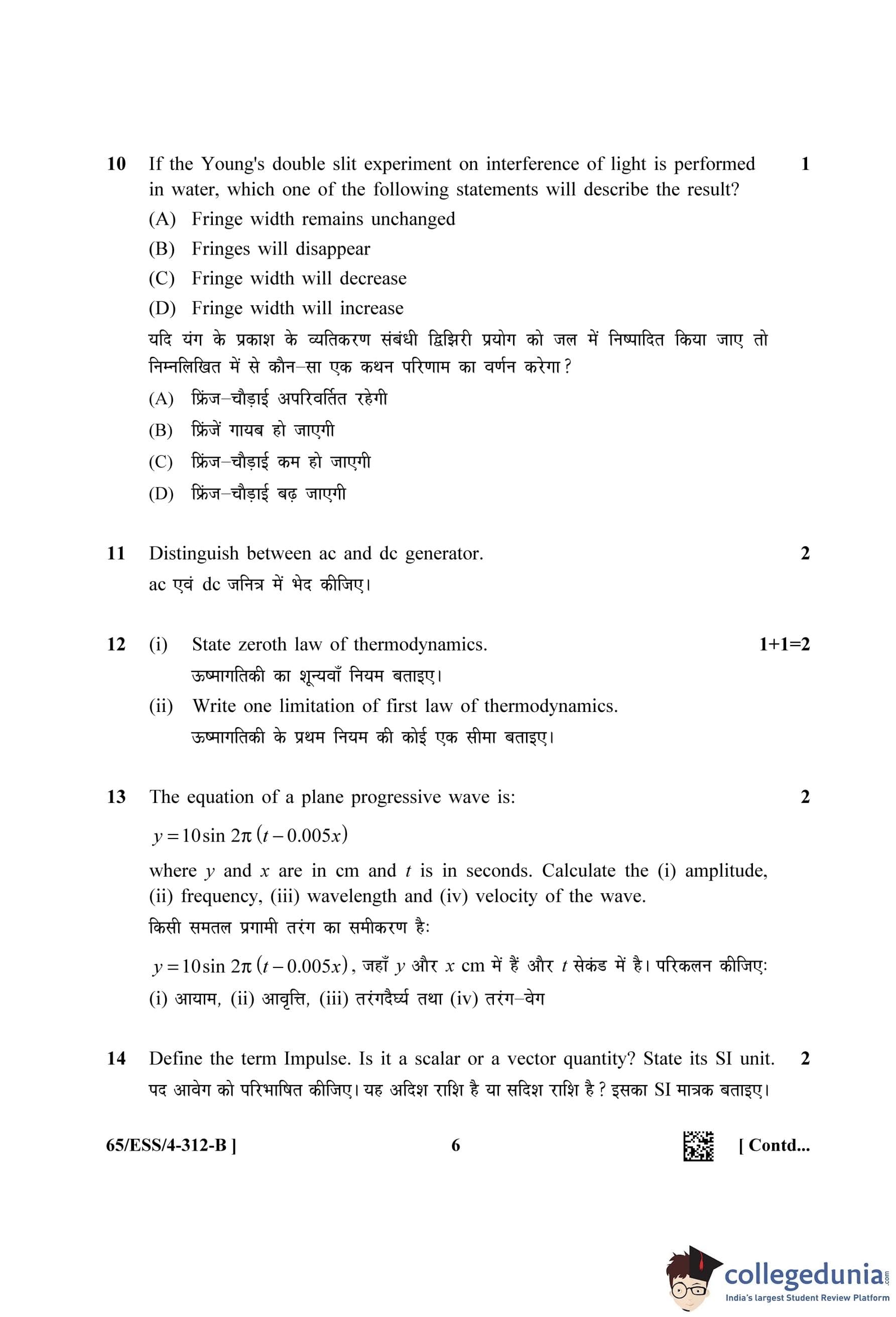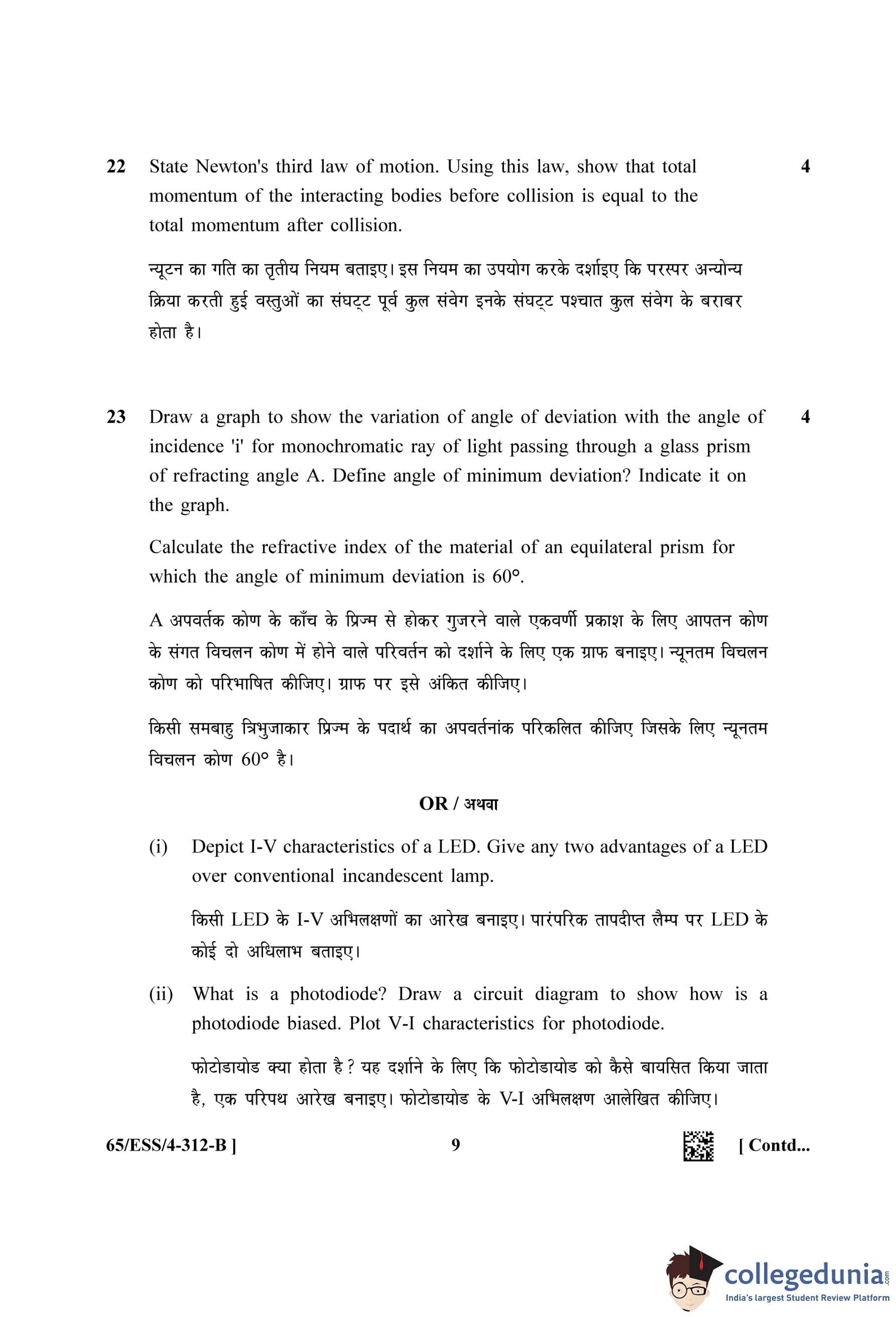 NIOS Class 12 Physics (Set B - ESS) Question Paper 2023 with Answer Key