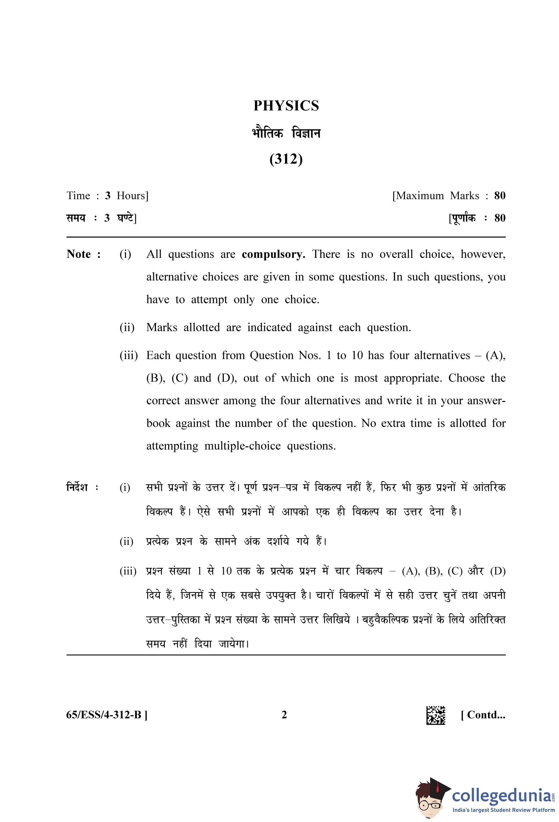 NIOS Class 12 Physics Question Paper 2023 with Answer Key pdf (Set B - ESS) is available for download here. The exam was conducted by National Institute of Open Schooling on April 28, 2023 in the Afternoon Session 2.30 PM to 5.30 PM. The question paper comprised a total of 30 questions.