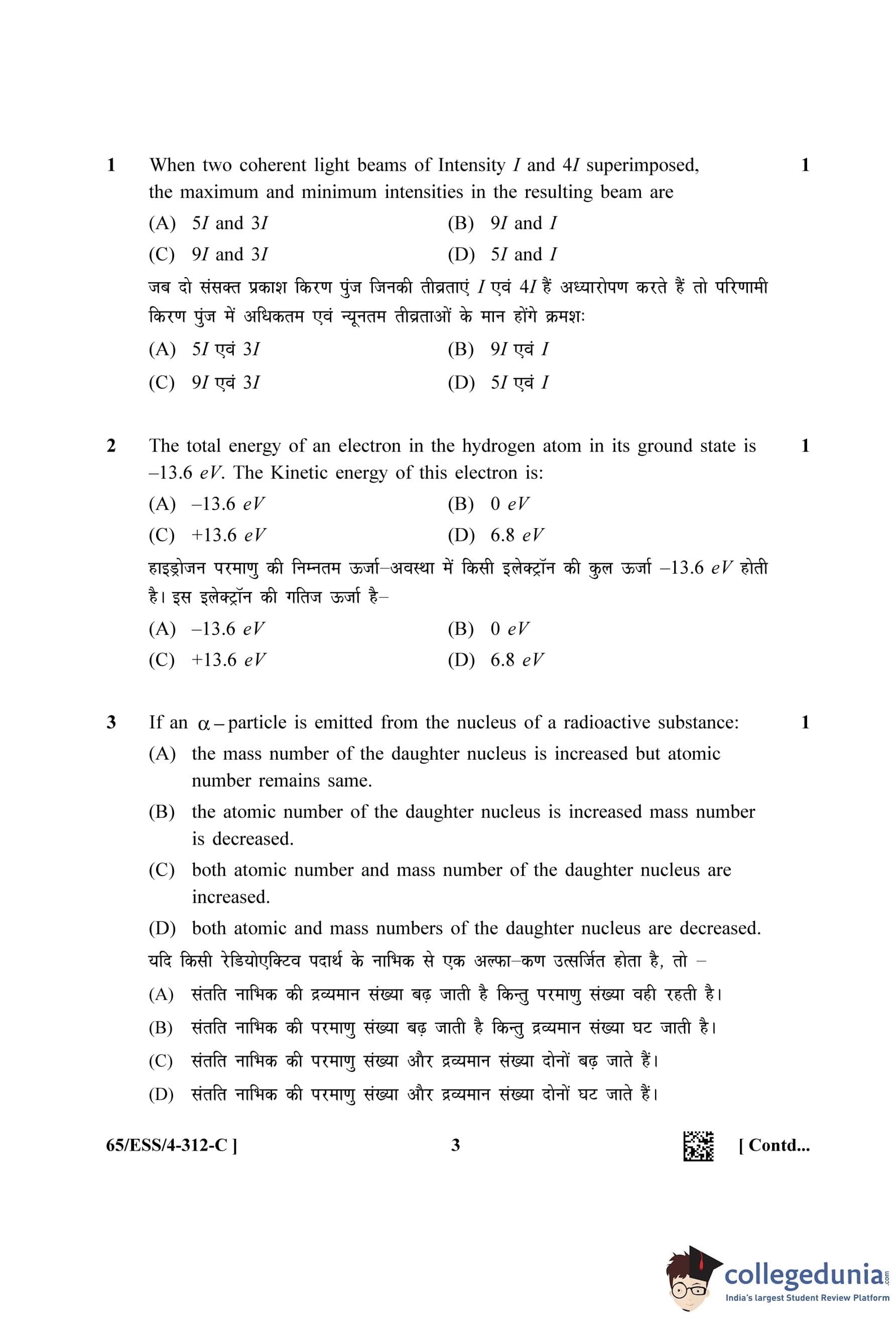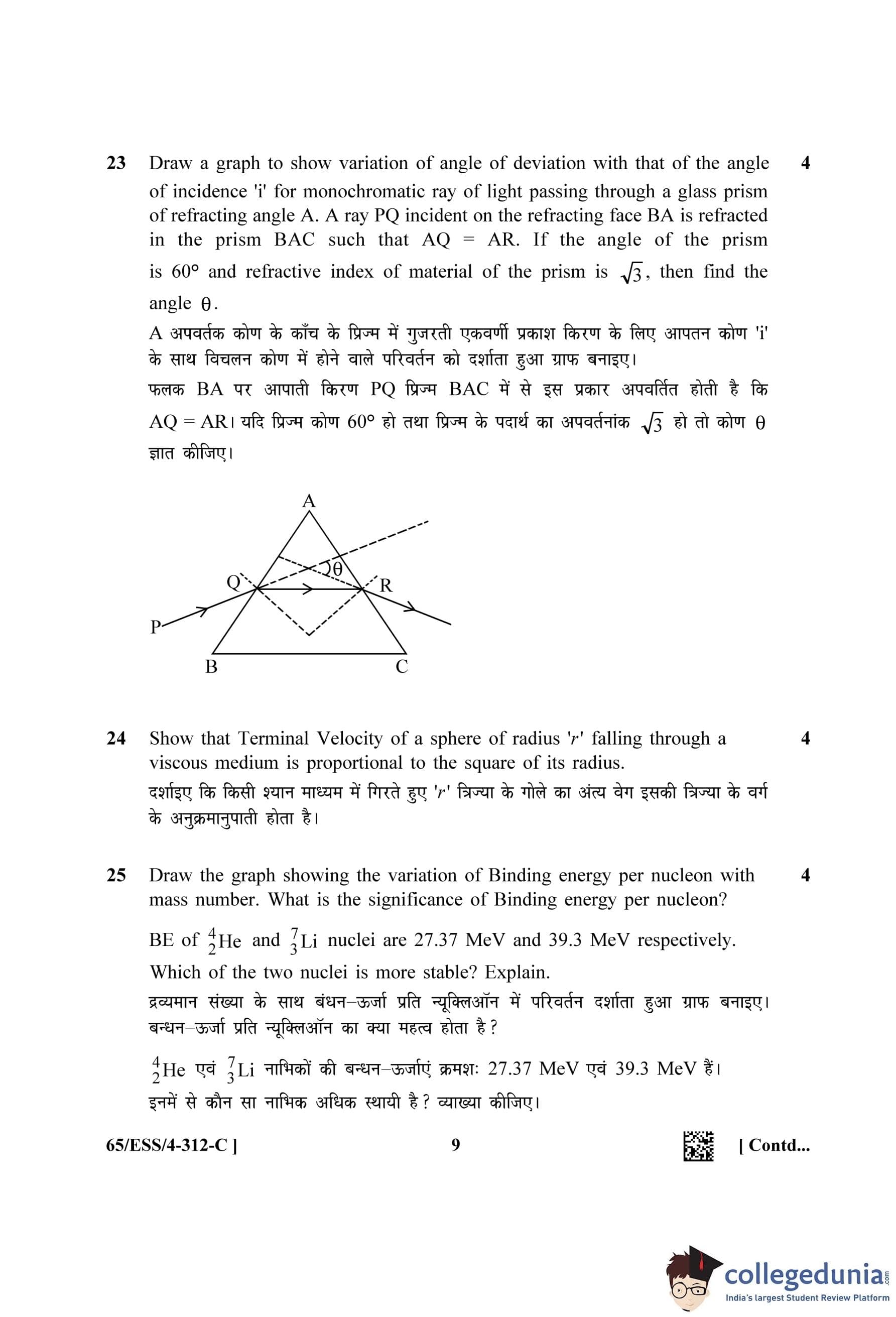 NIOS Class 12 Physics (Set C - ESS) Question Paper 2023 with Answer Key