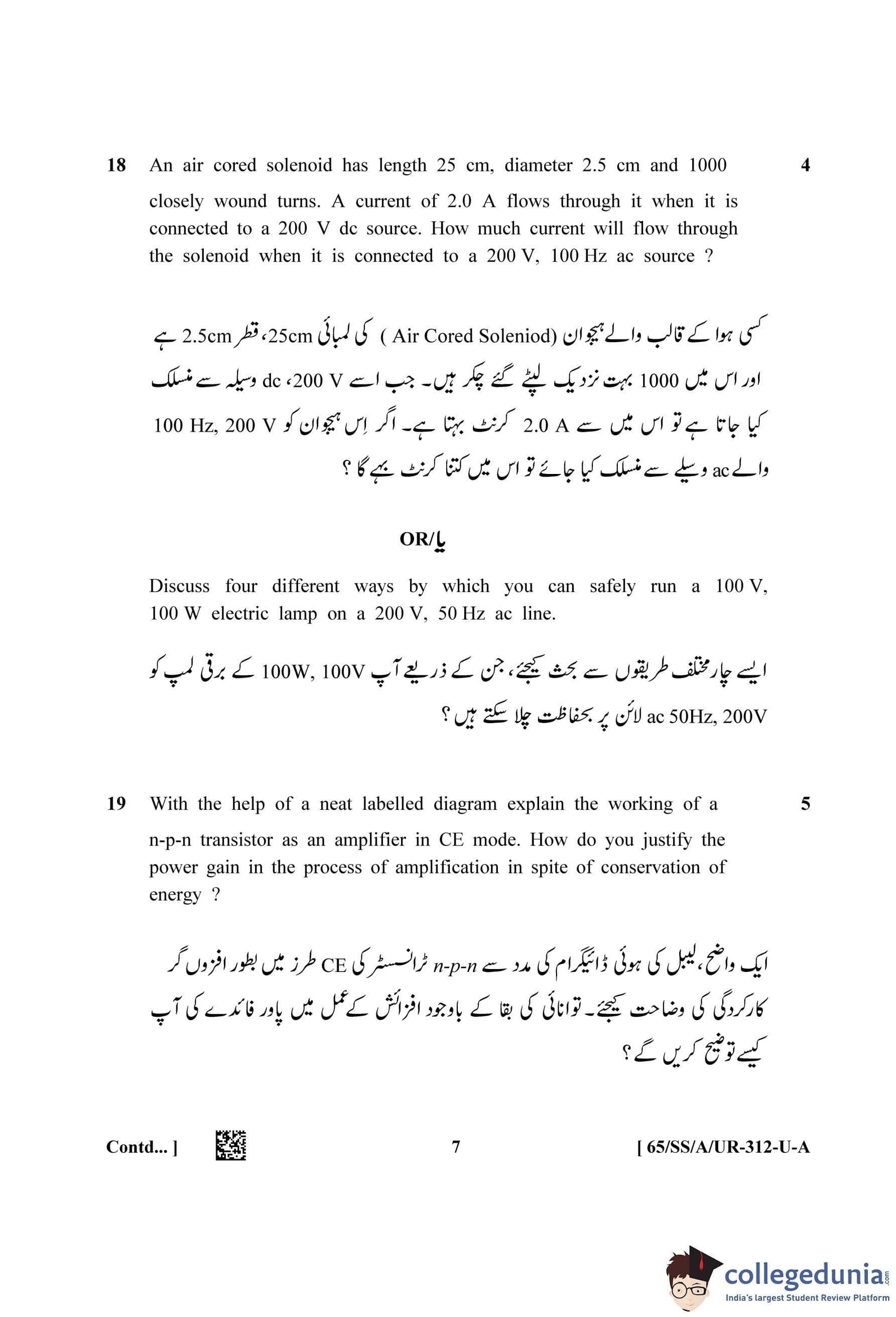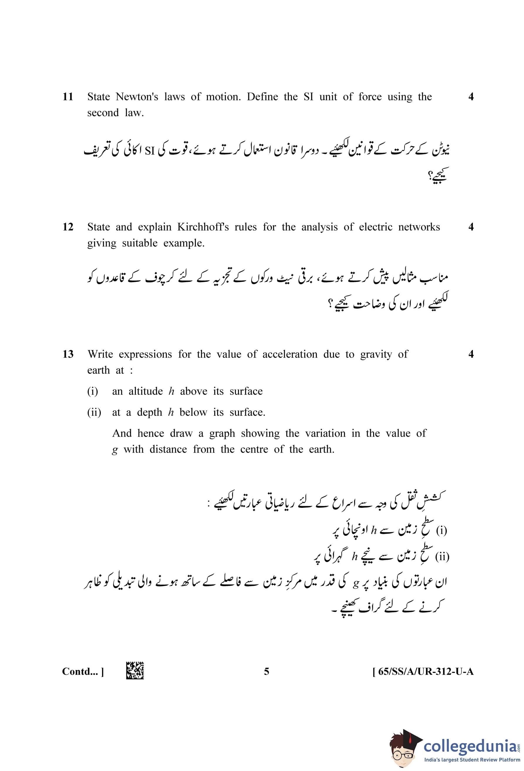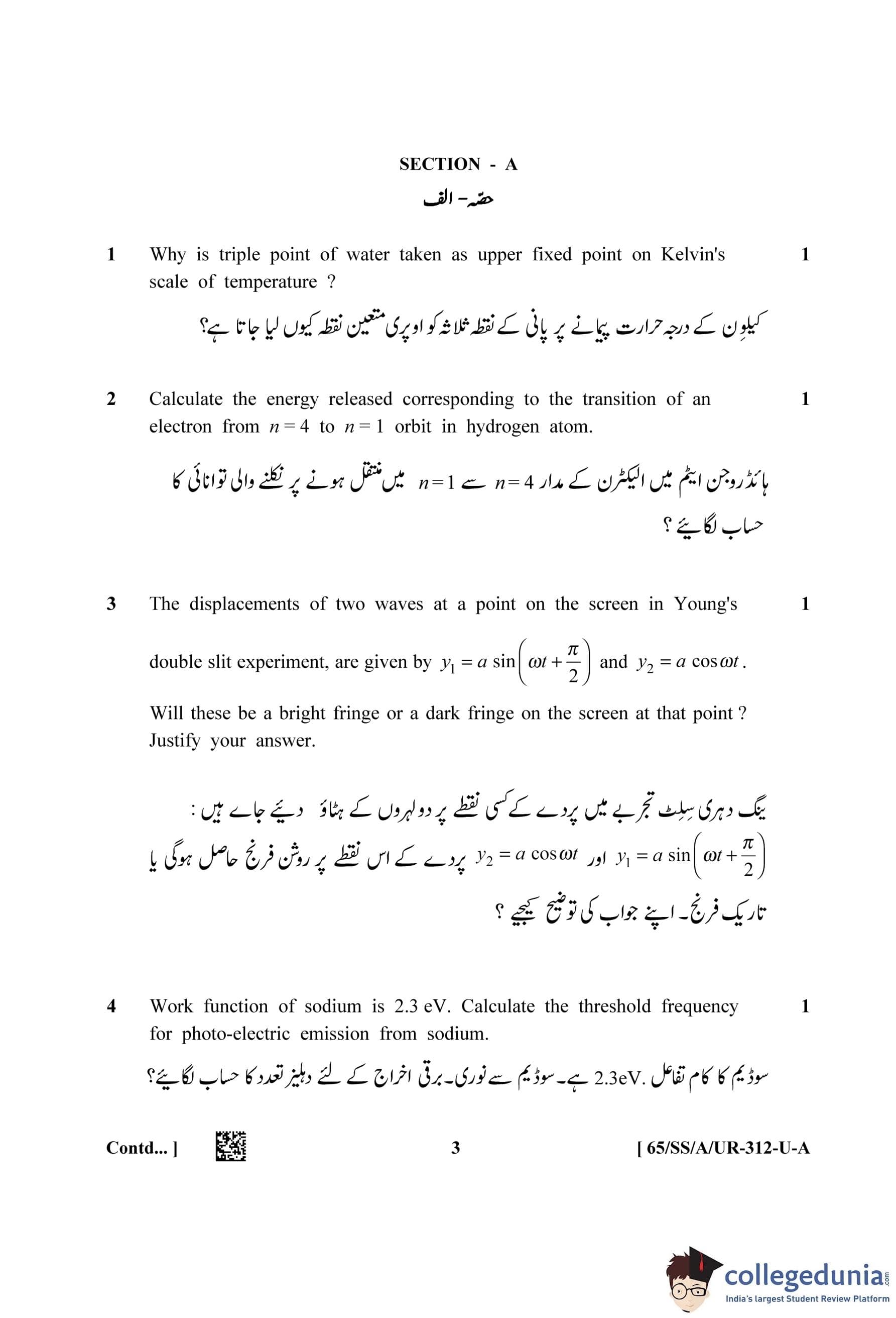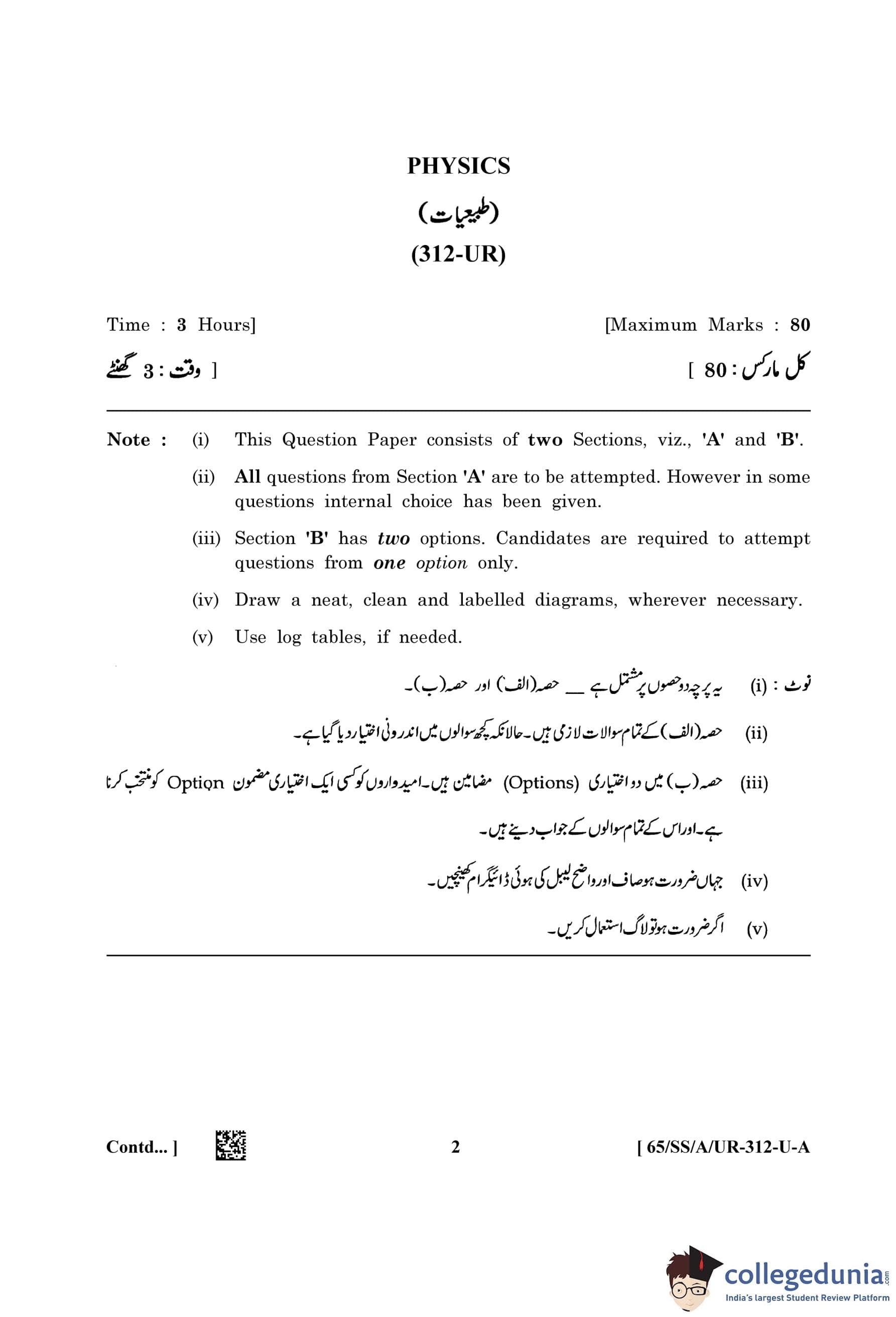 NIOS Class 12 Physics Urdu (Set A) Question Paper 2023 with Answer Key