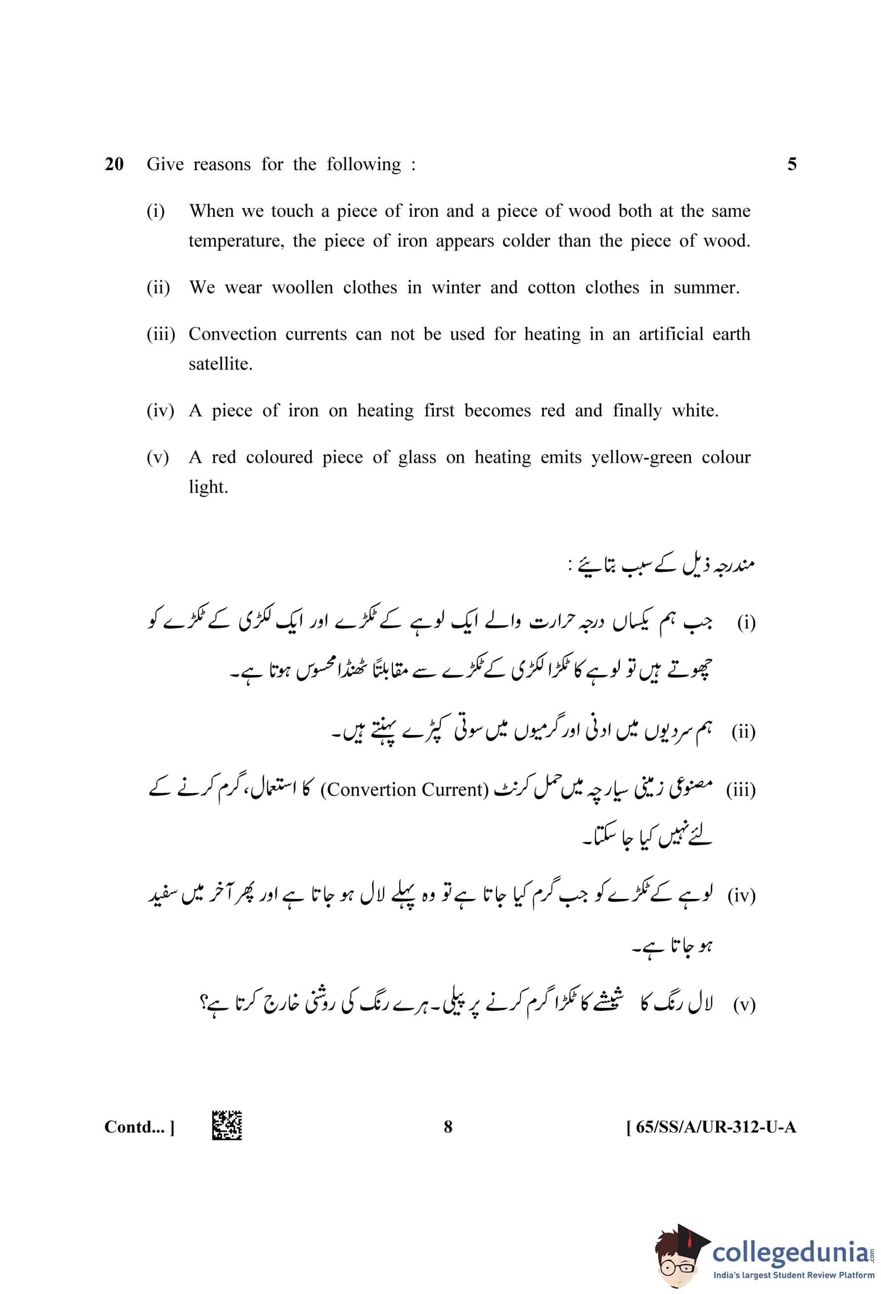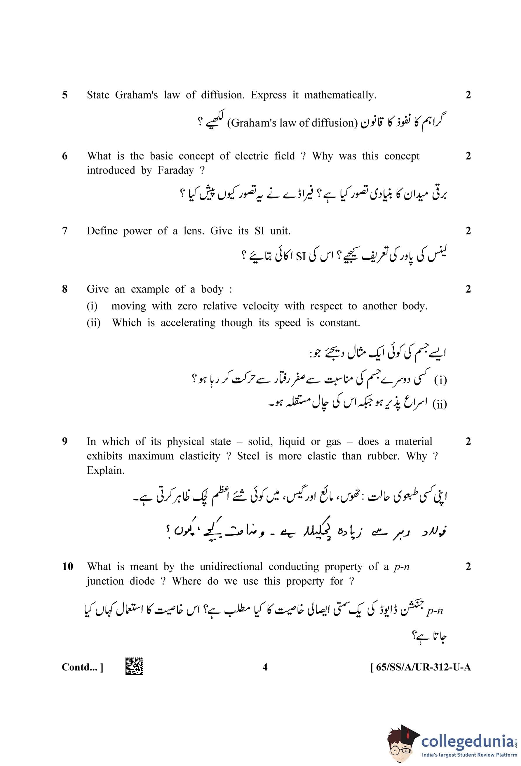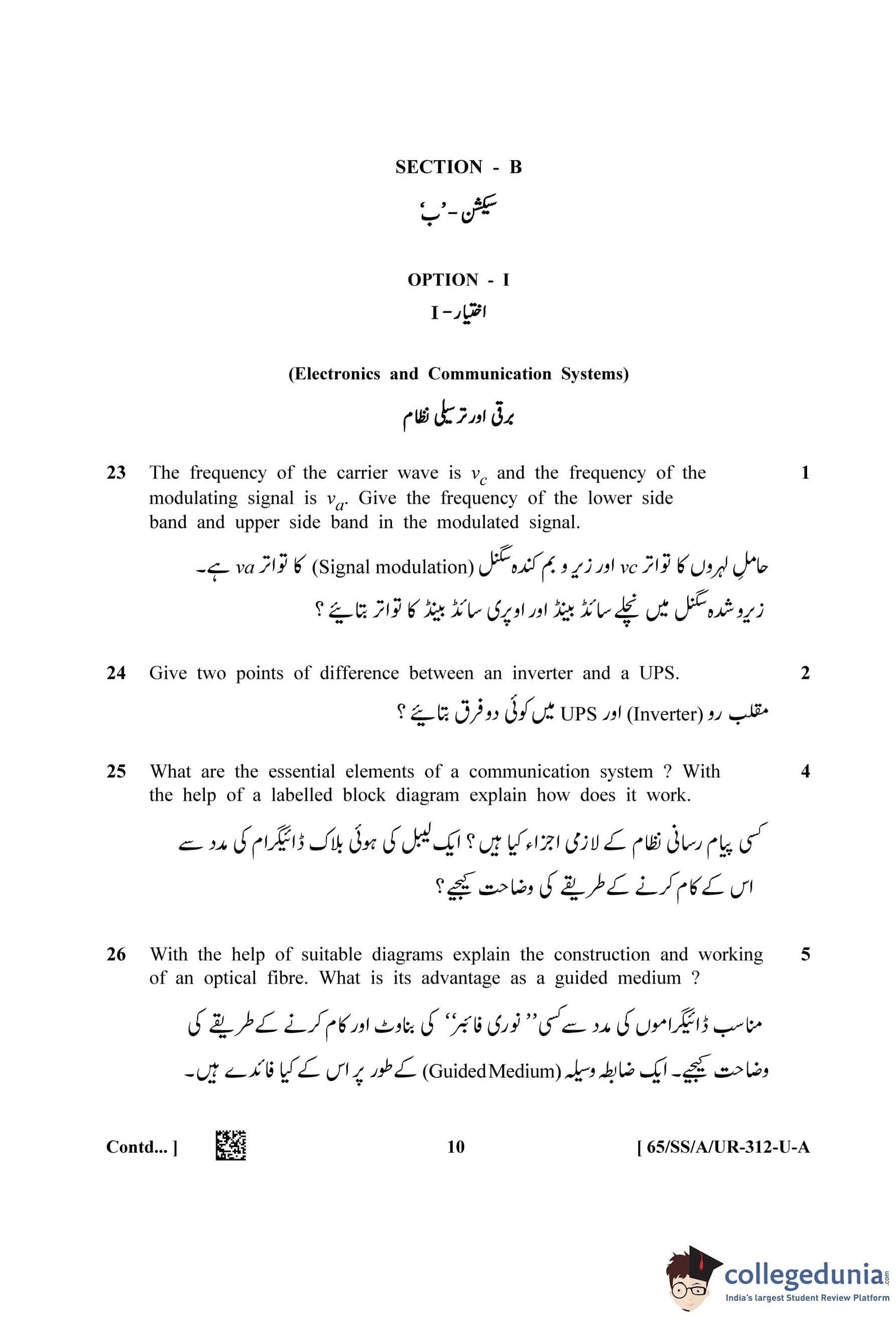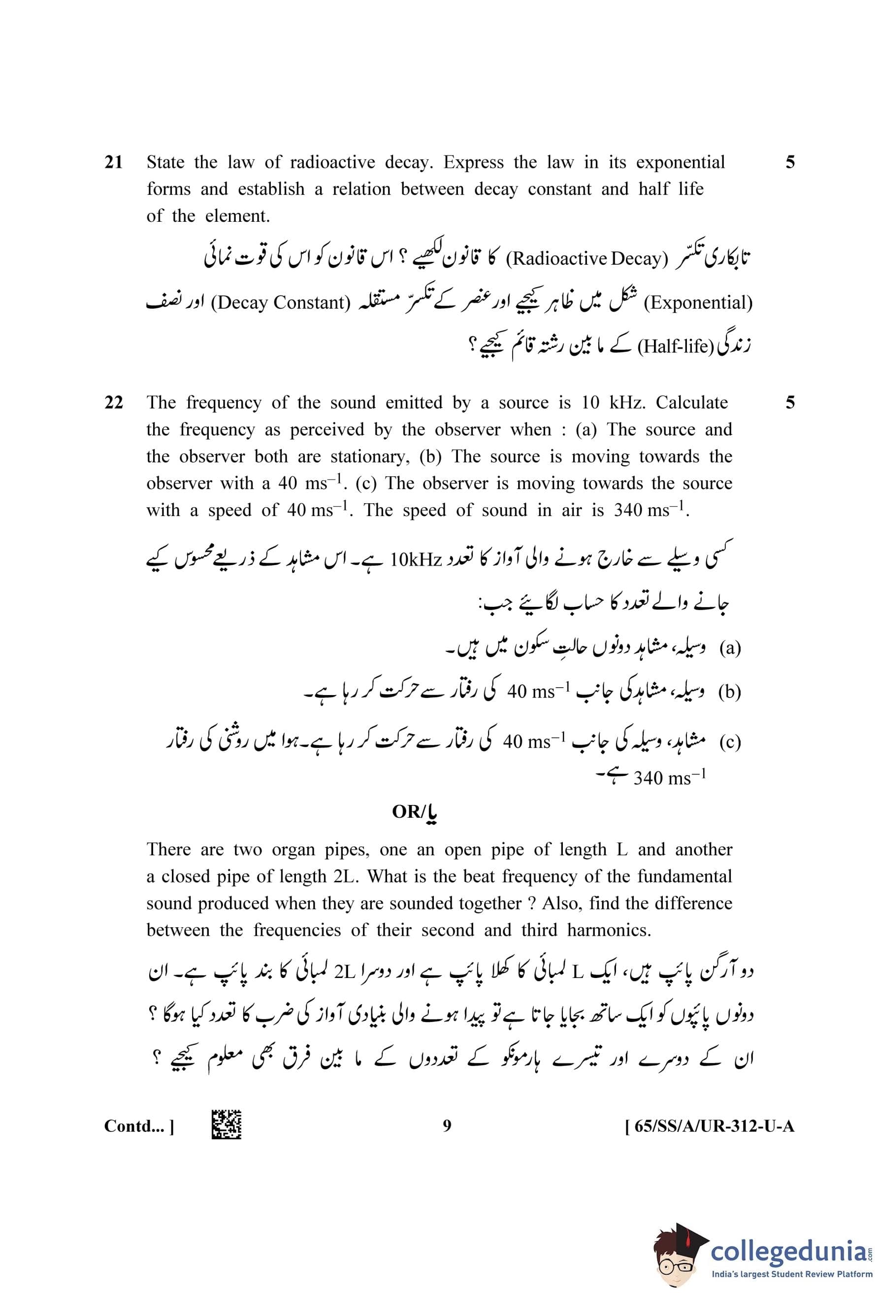 NIOS Class 12 Physics Urdu (Set A) Question Paper 2023 with Answer Key
