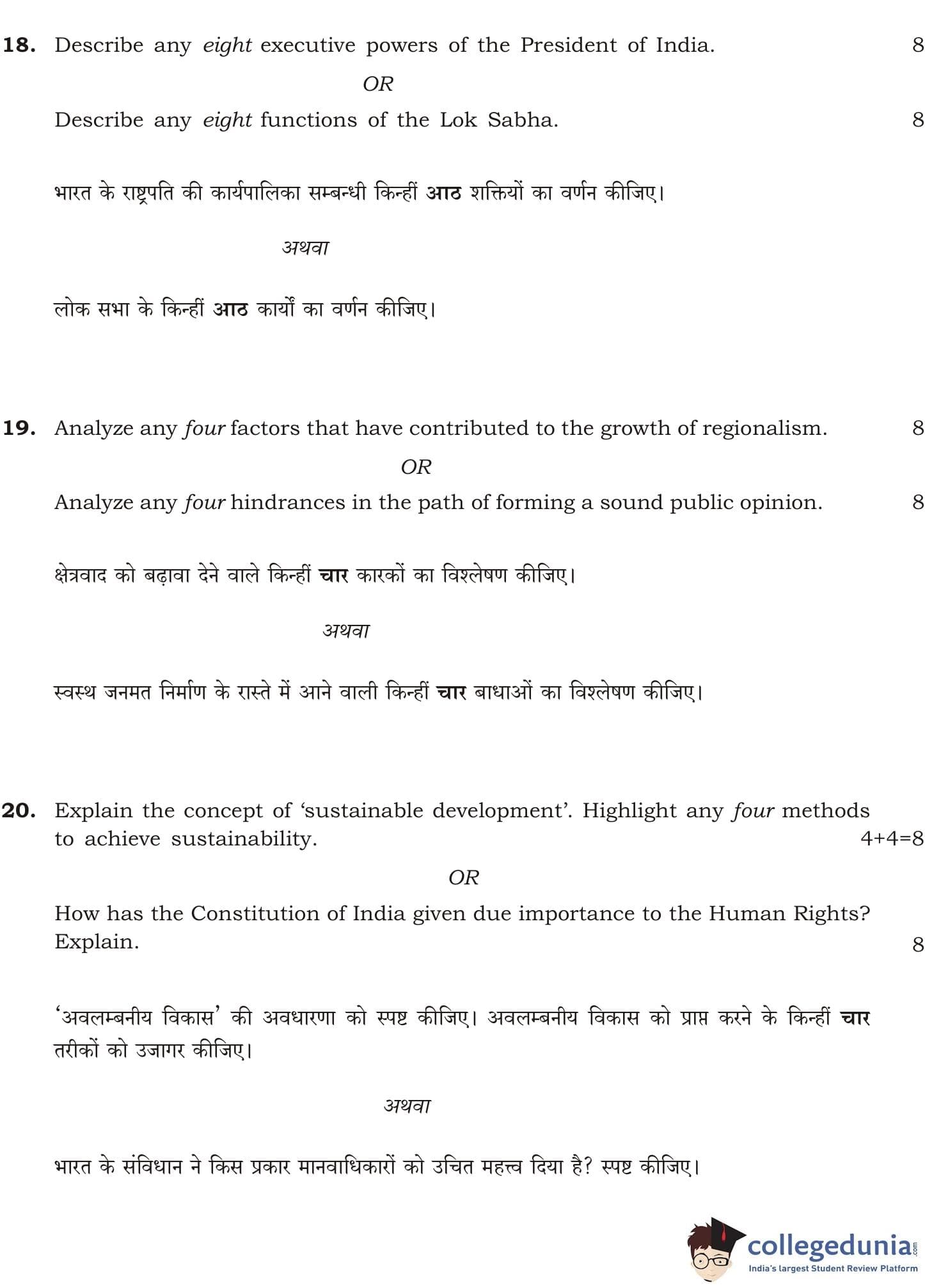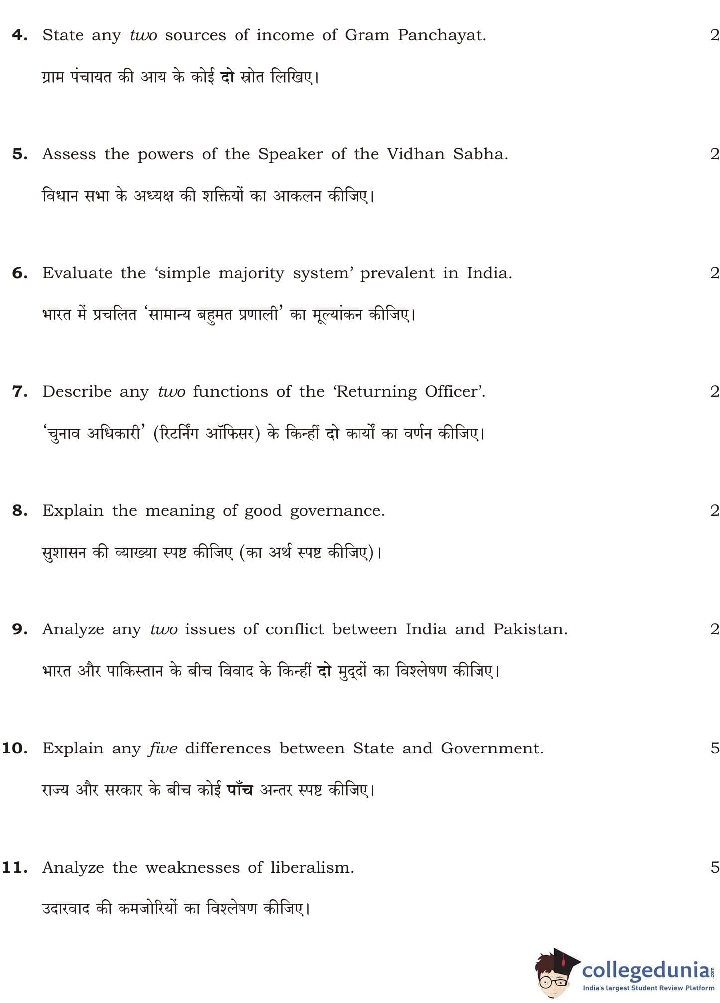 NIOS Class 12 Political Science Compartment Question Paper 2016 with Answer Key