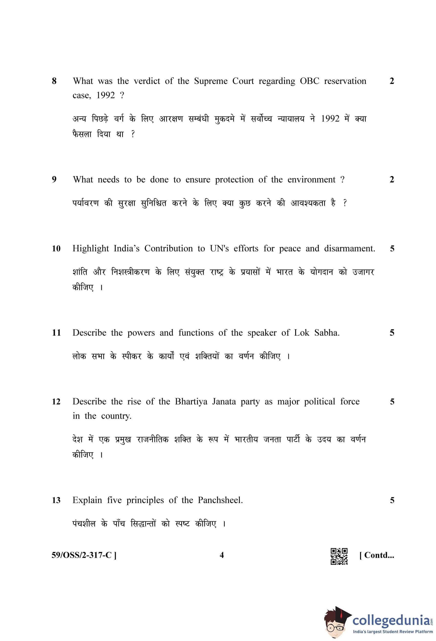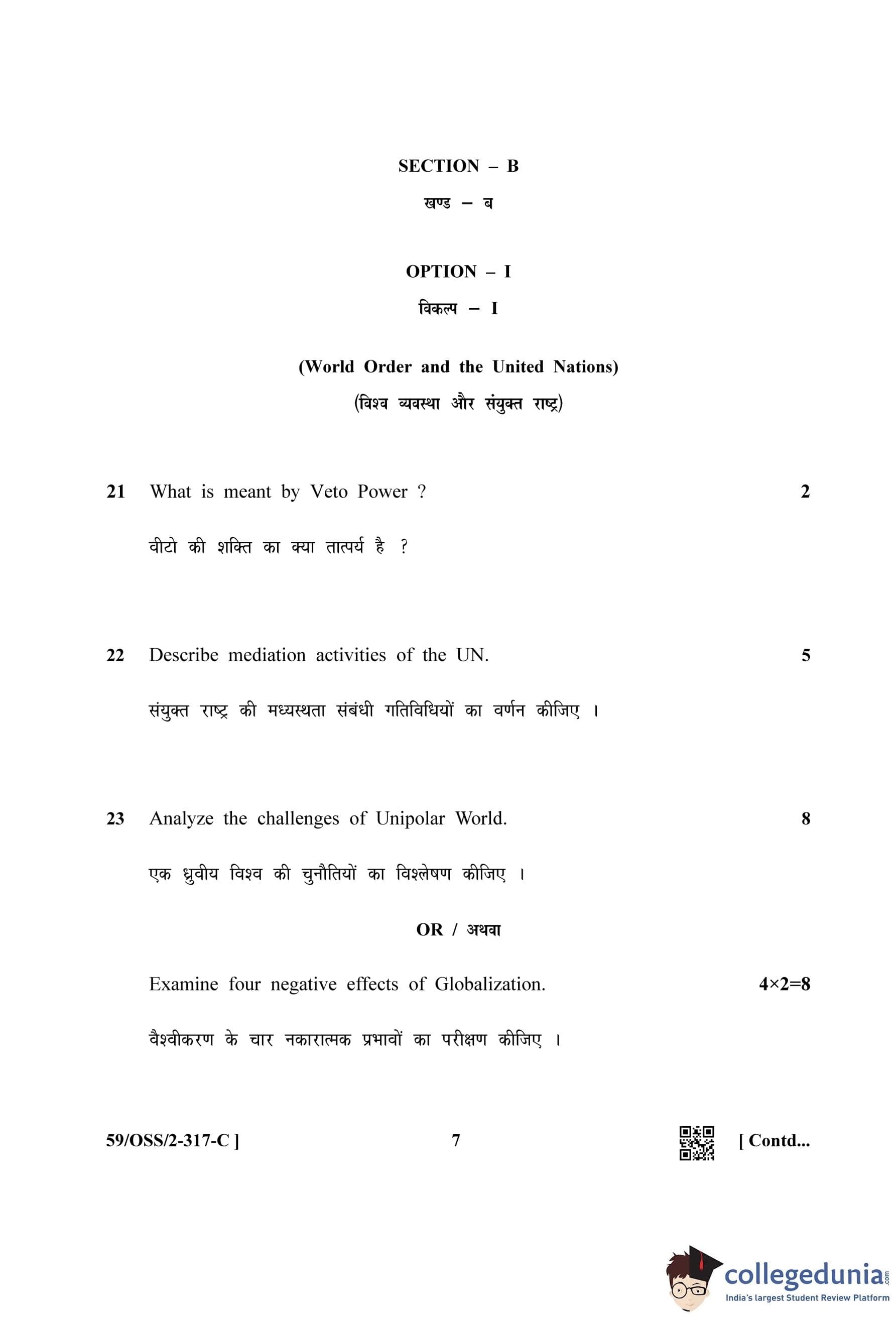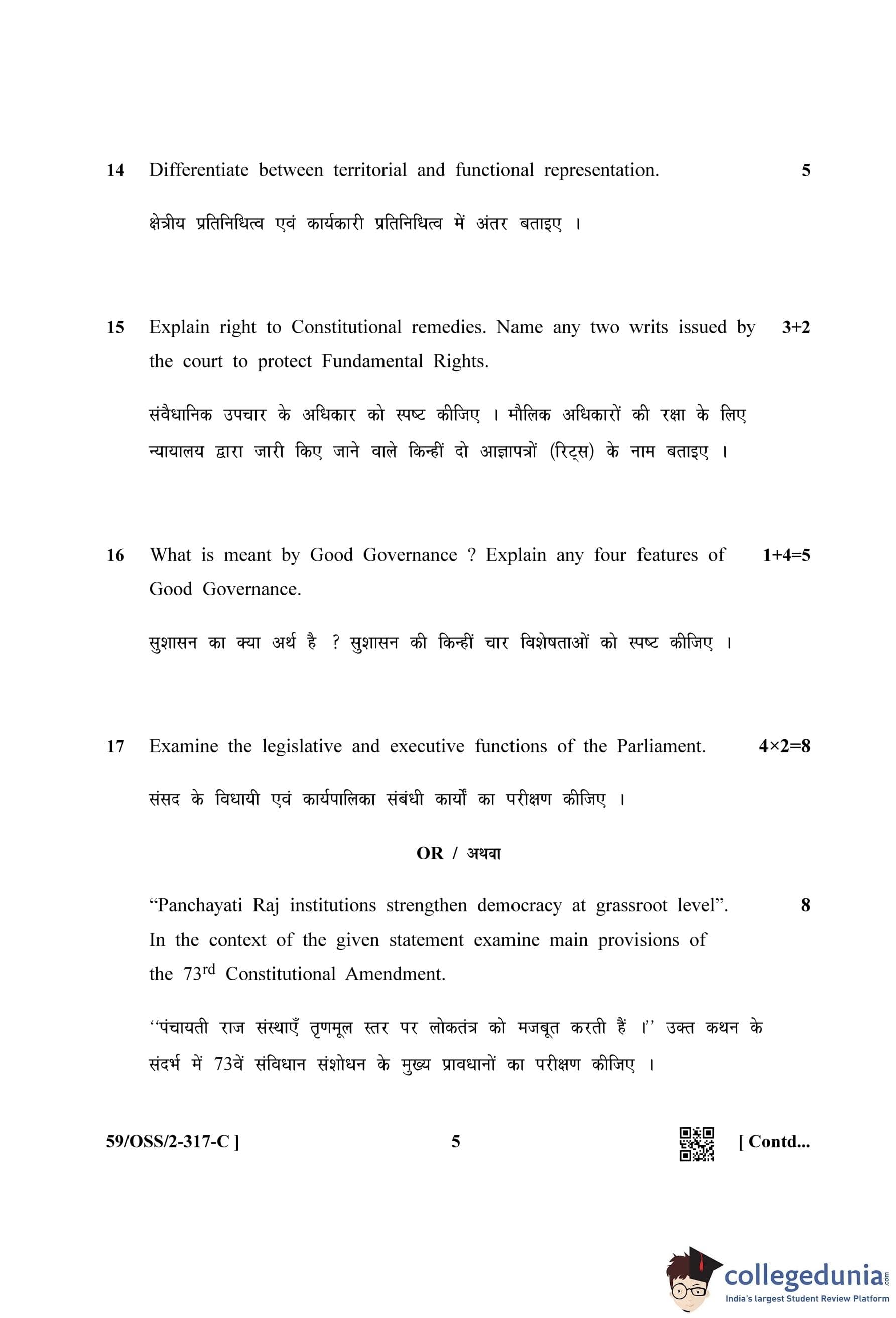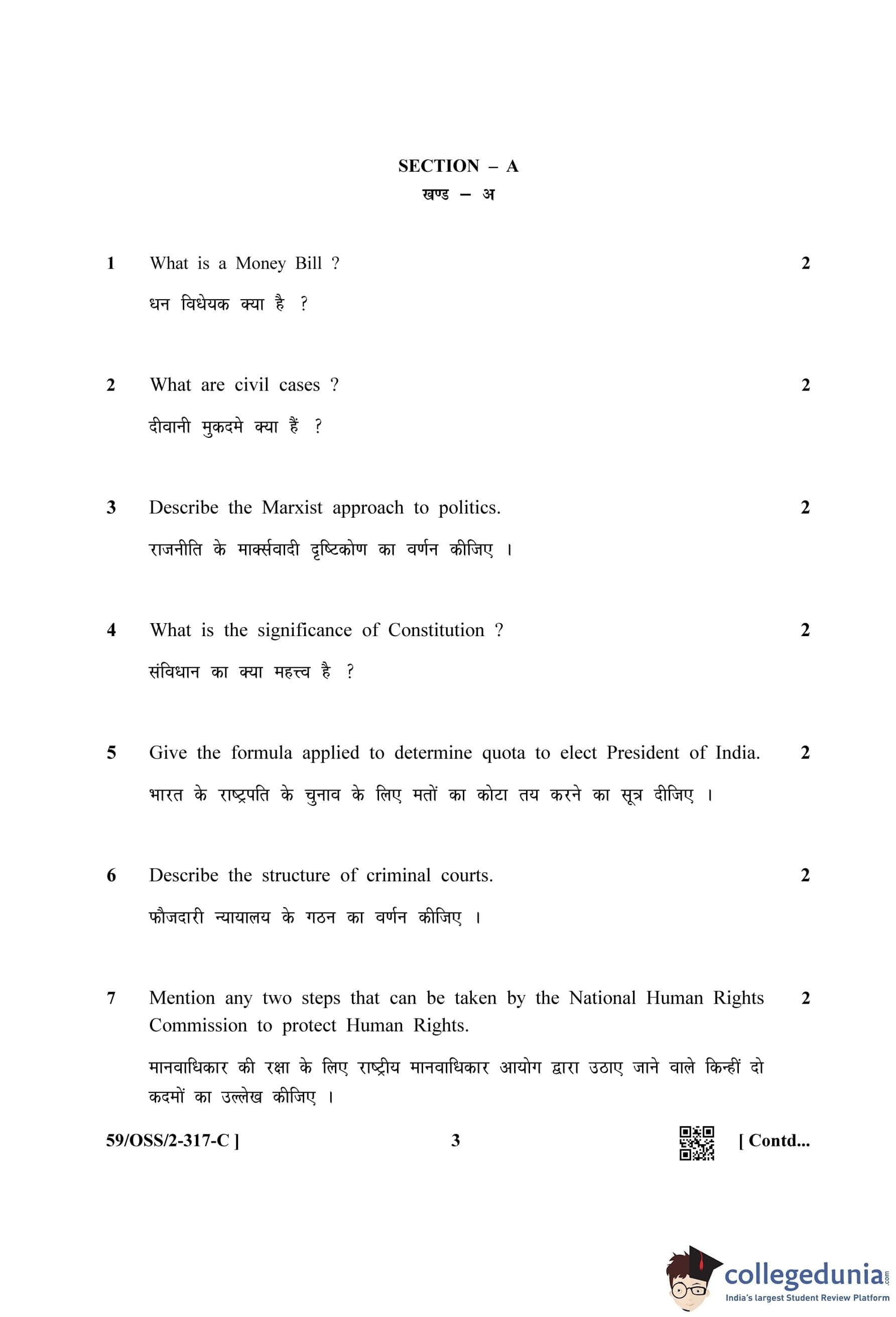 NIOS Class 12 Political Science (Set C) Compartment Question Paper 2019 with Answer Key
