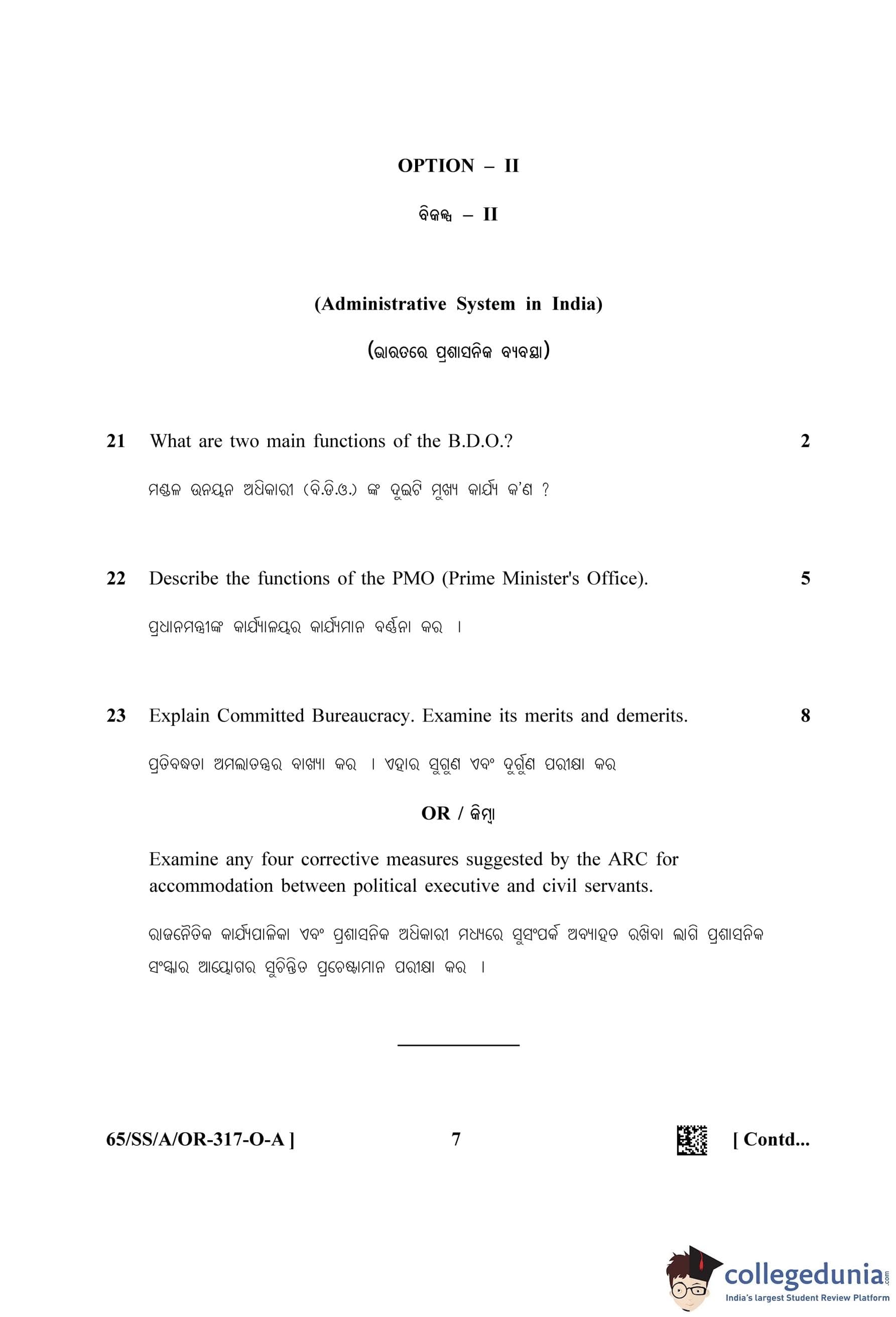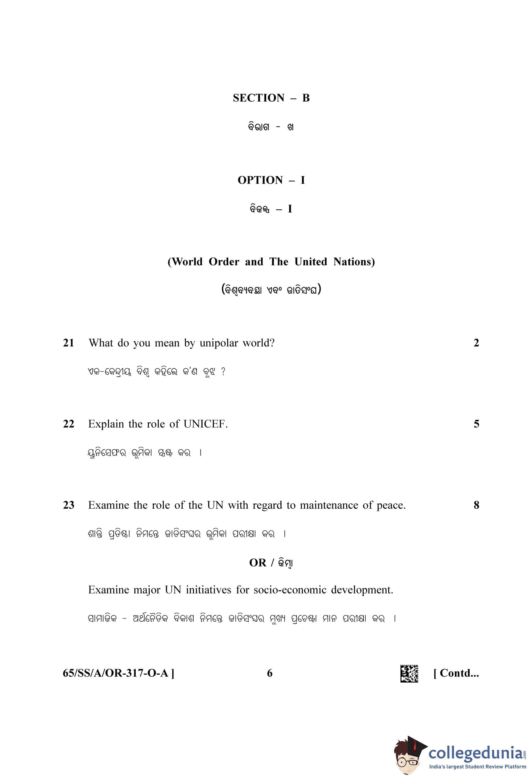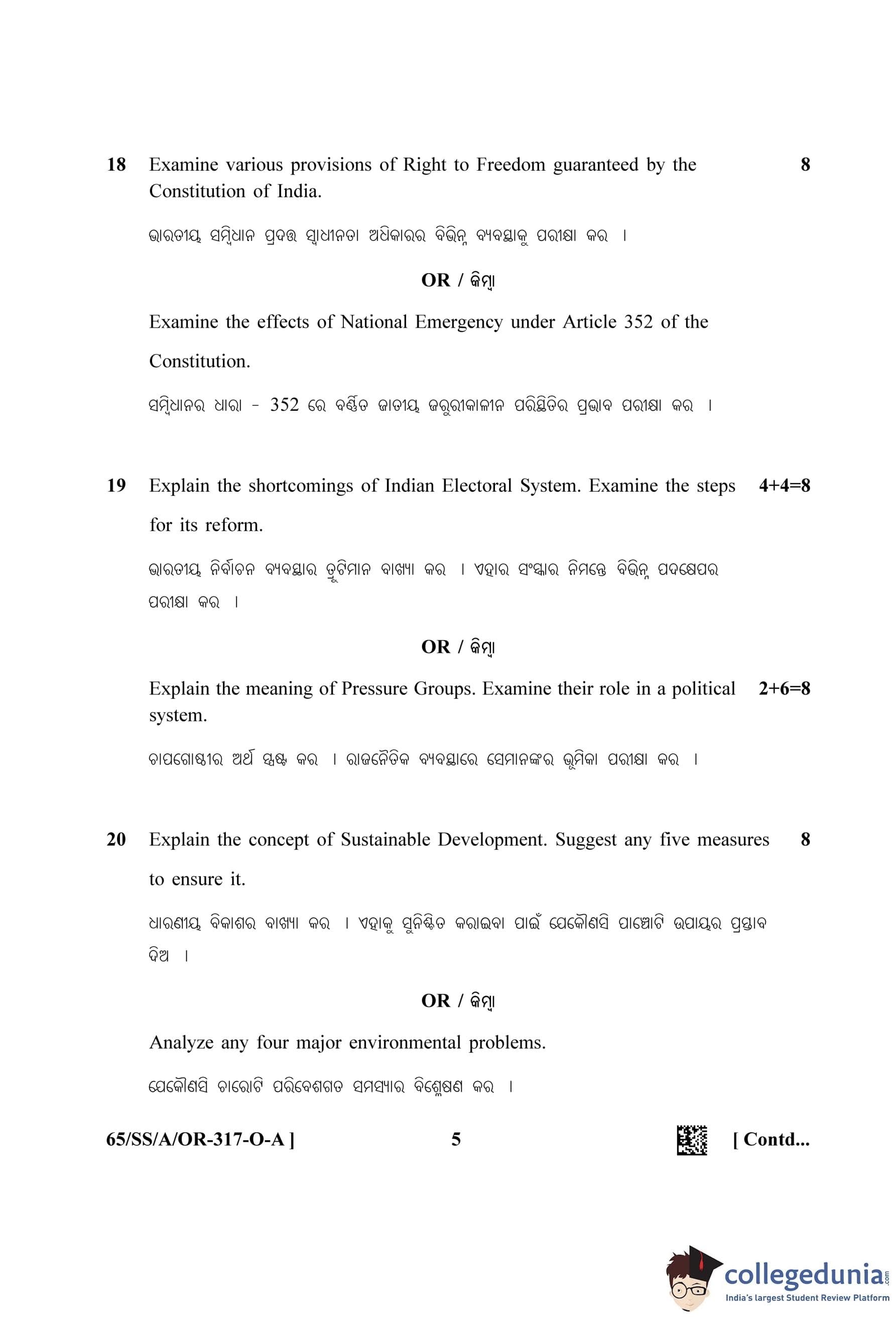 NIOS Class 12 Political Science Oriya (Set A) Question Paper 2023 with Answer Key