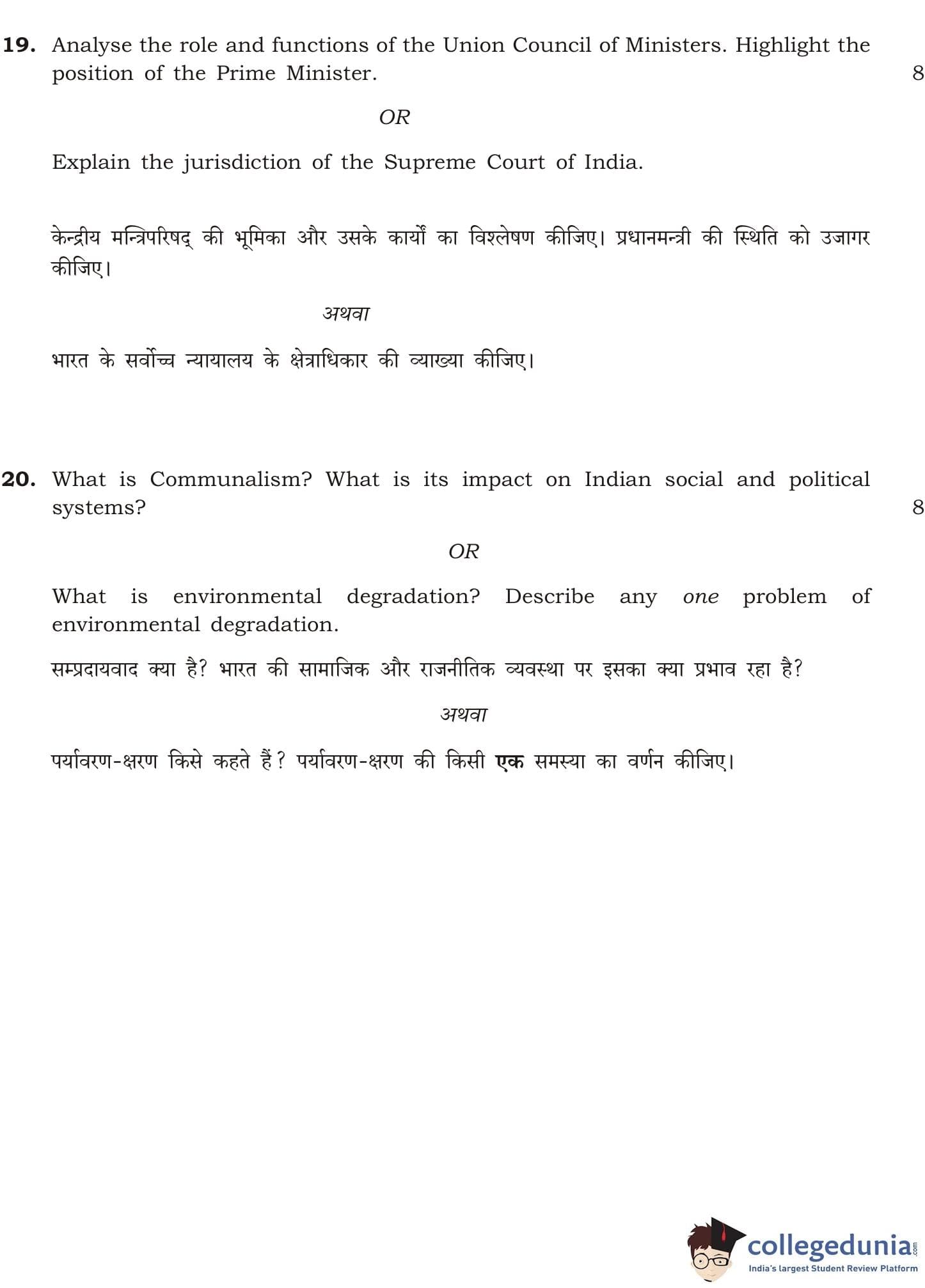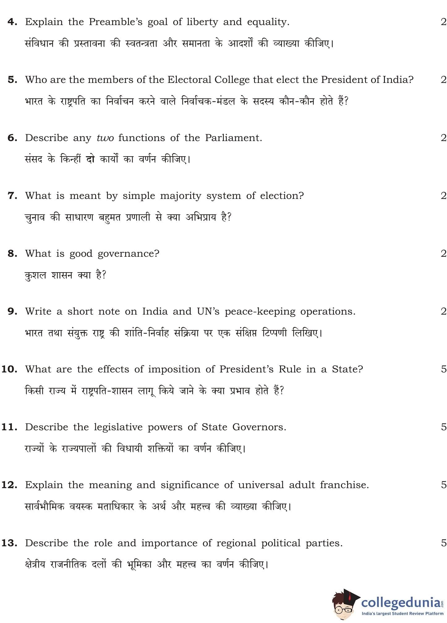 NIOS Class 12 Political Science Question Paper 2011 with Answer Key