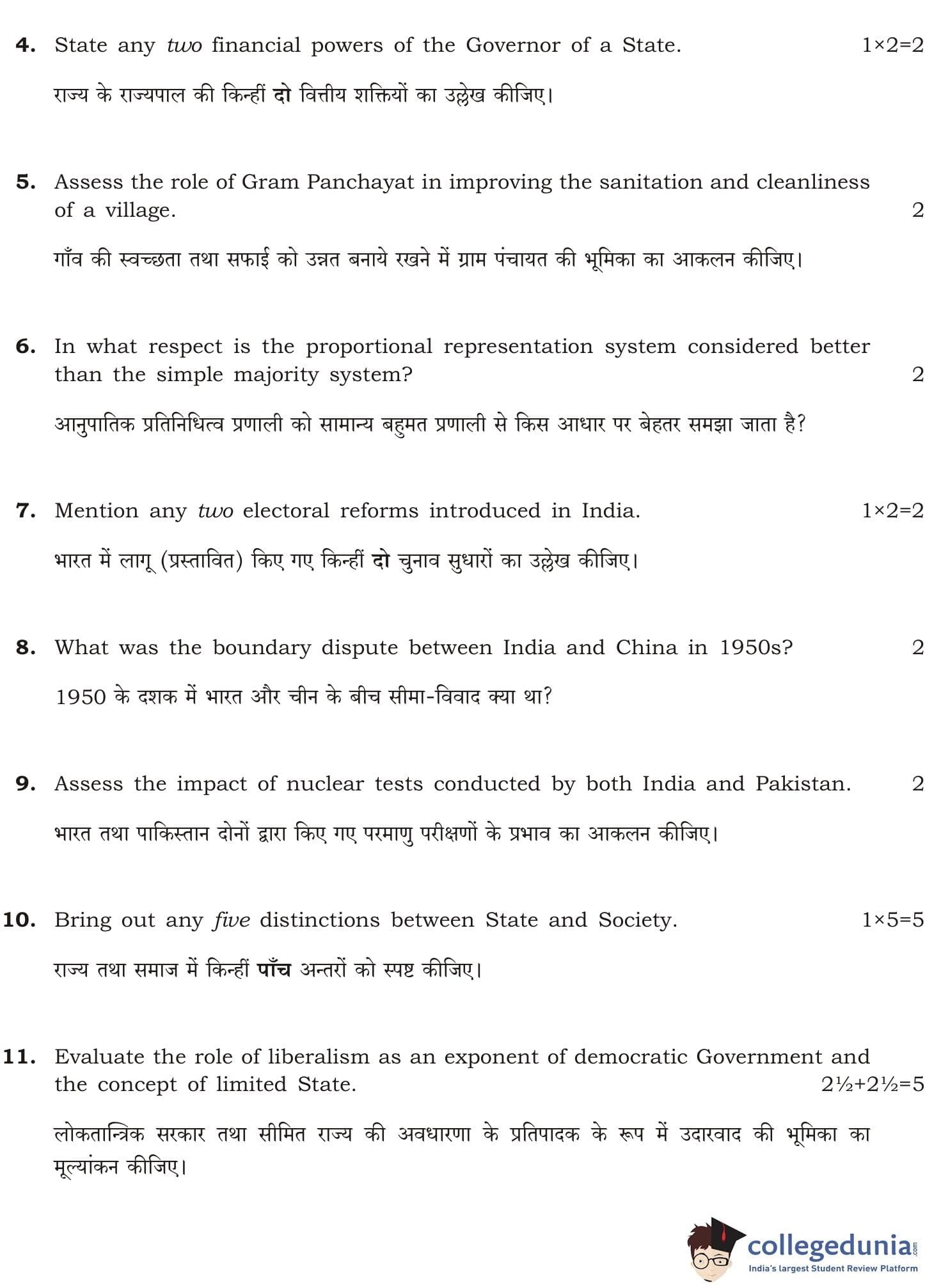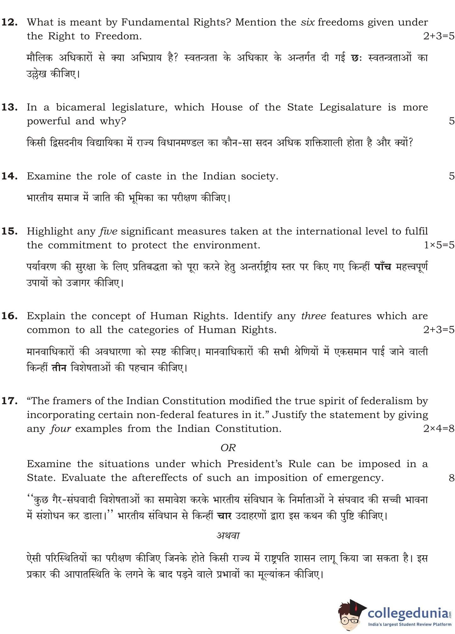 NIOS Class 12 Political Science Question Paper 2015 with Answer Key