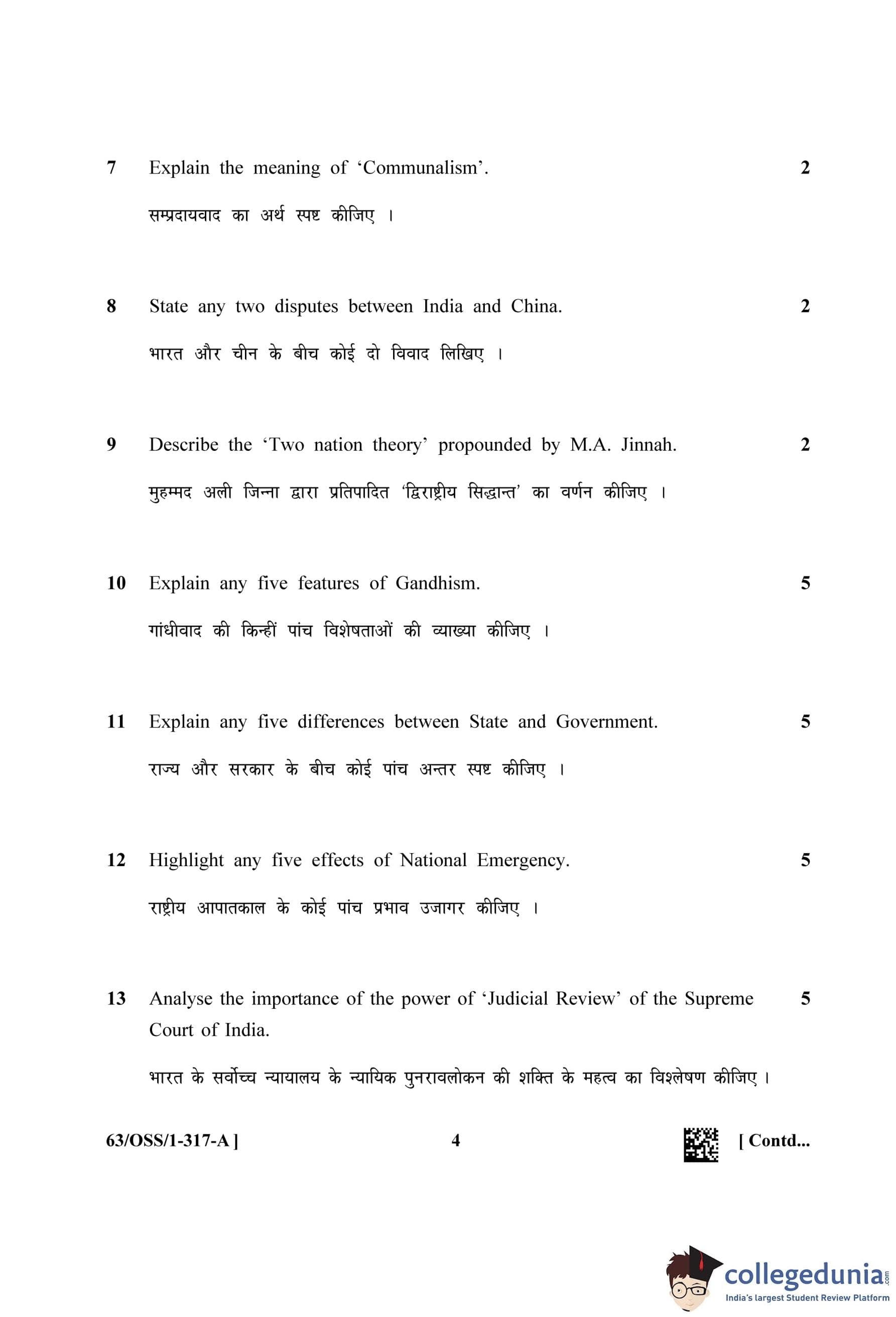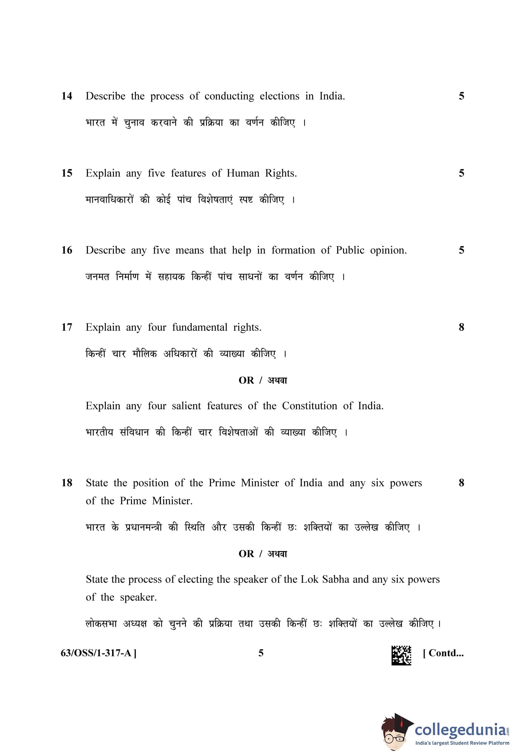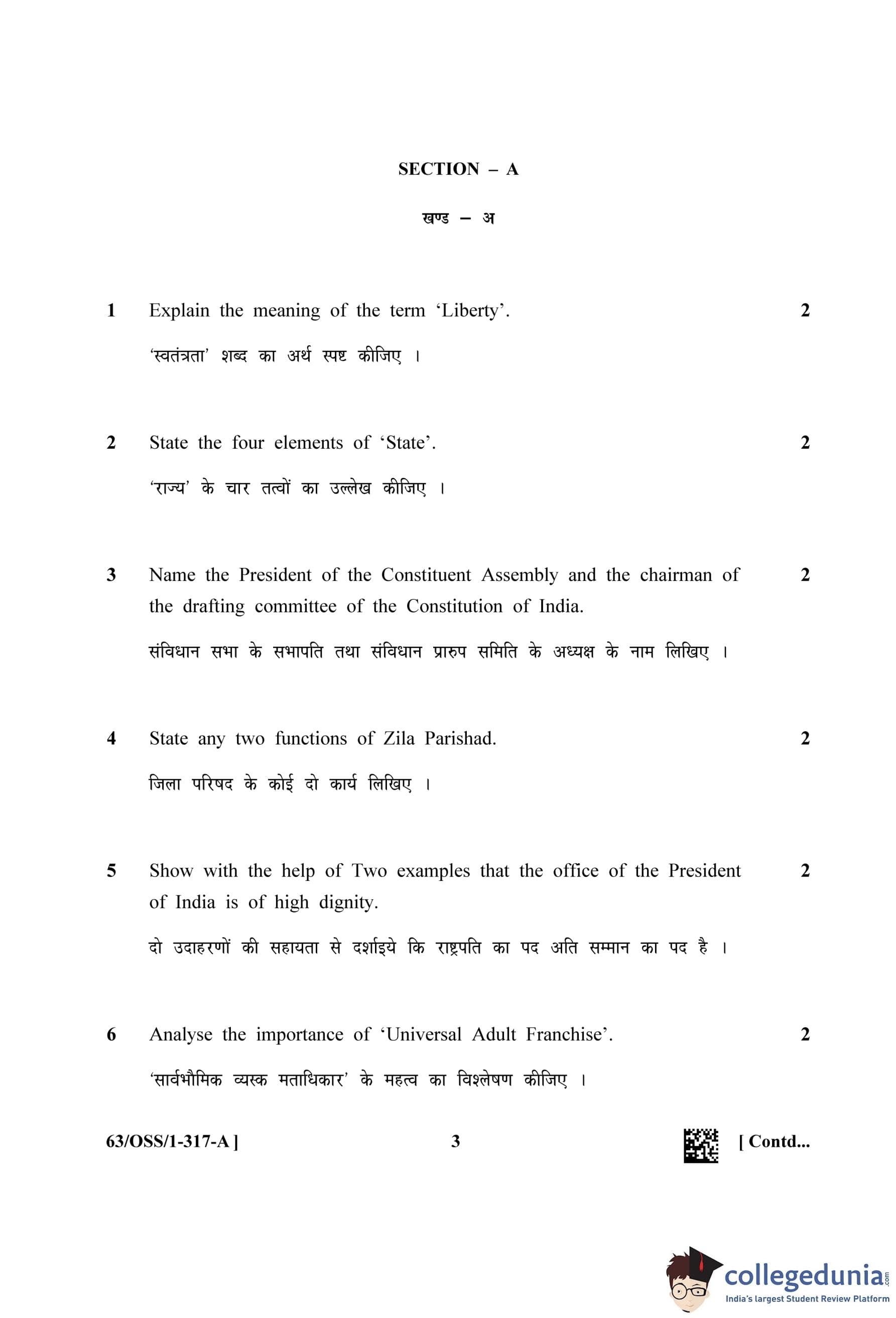 NIOS Class 12 Political Science (Set A - OSS) Question Paper 2022 with Answer Key