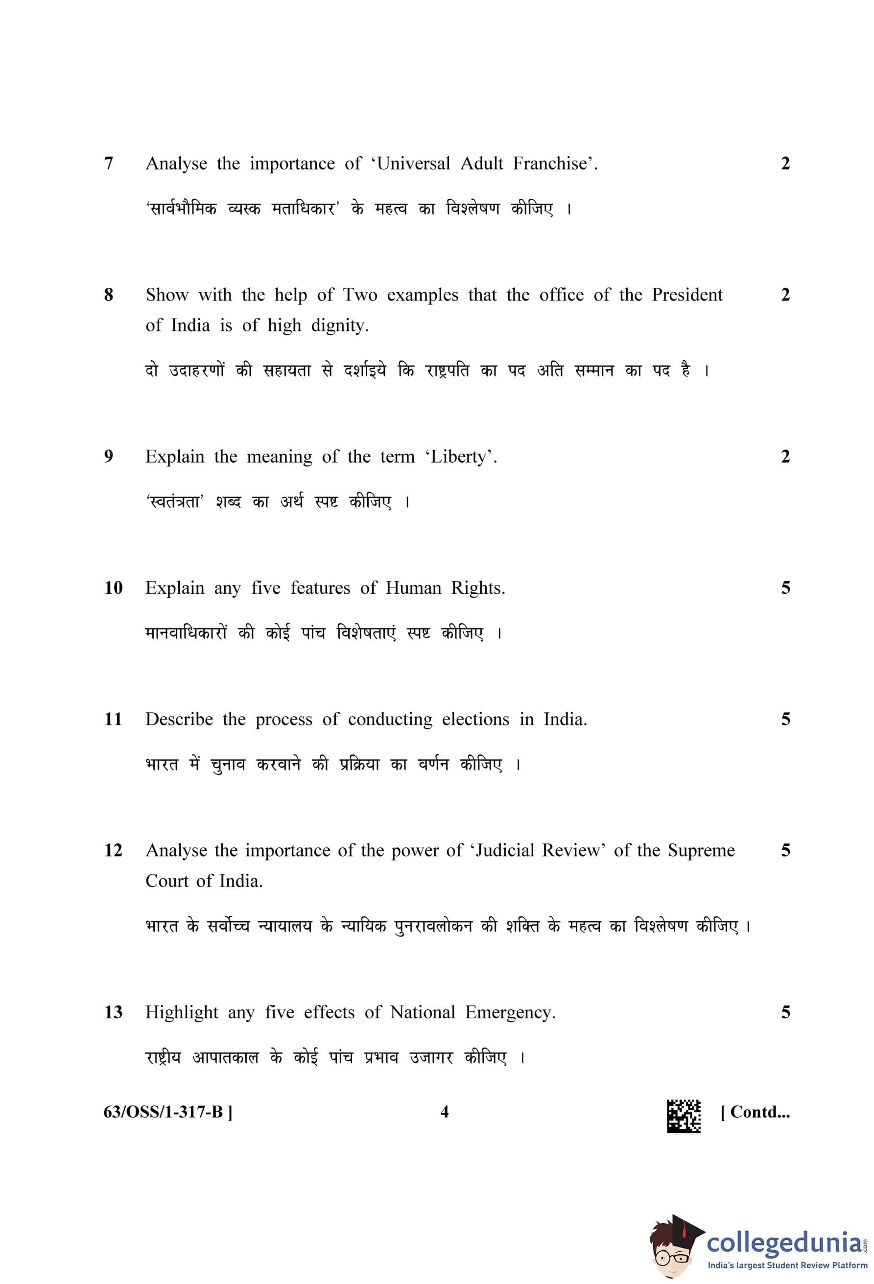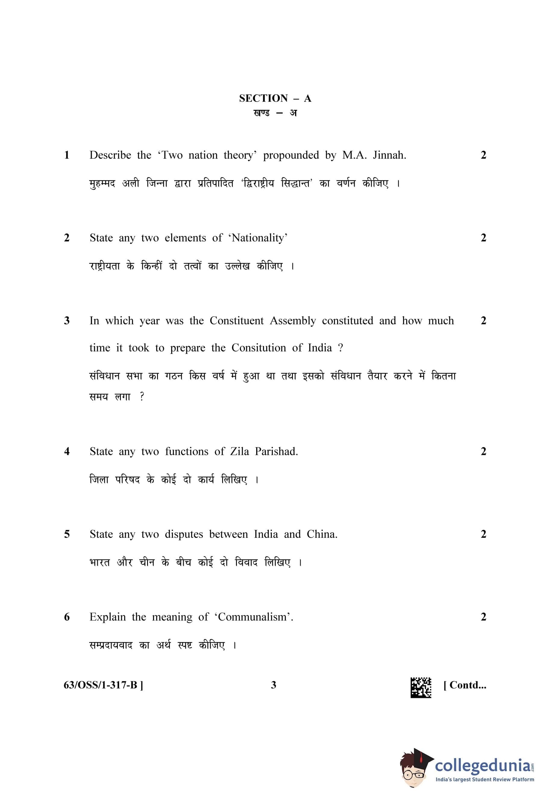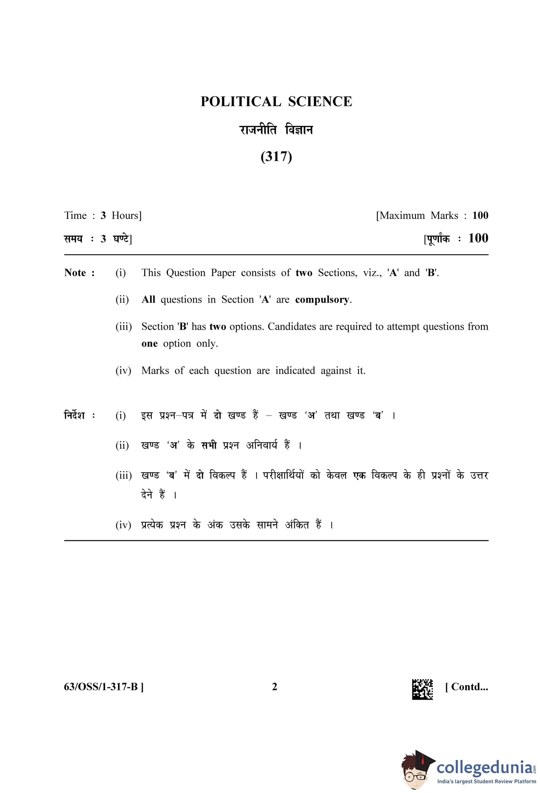 NIOS Class 12 Political Science (Set B - OSS) Question Paper 2022 with Answer Key