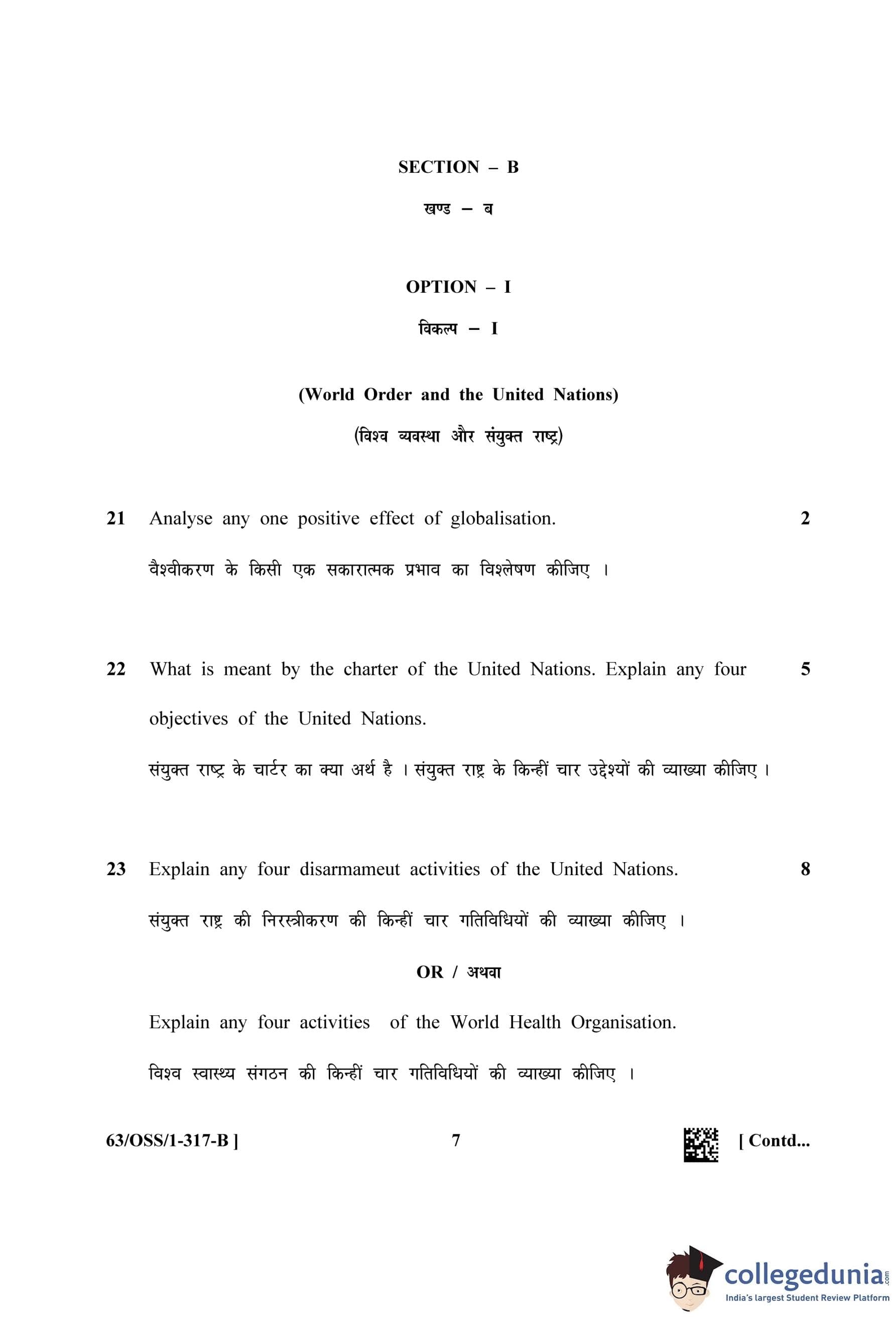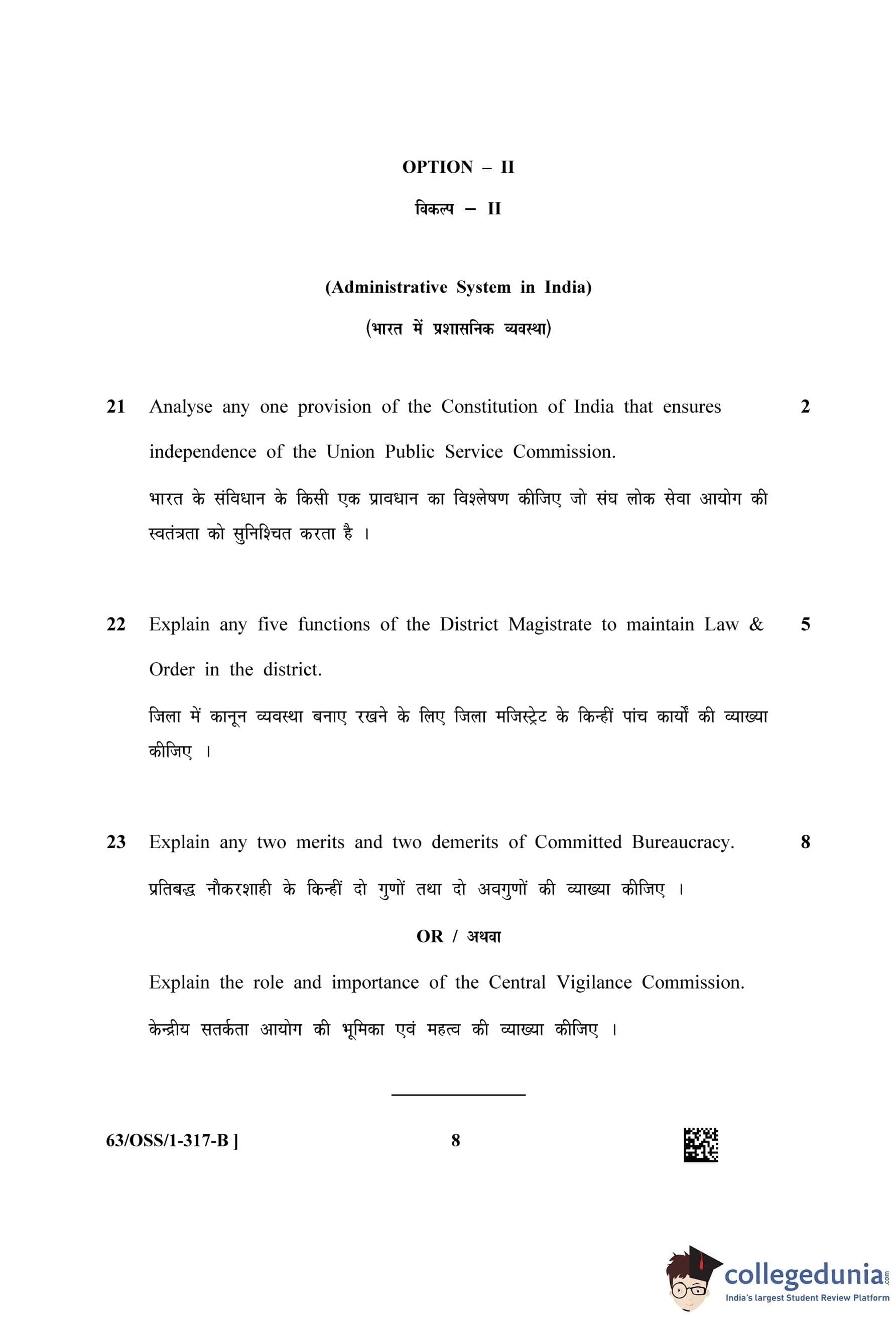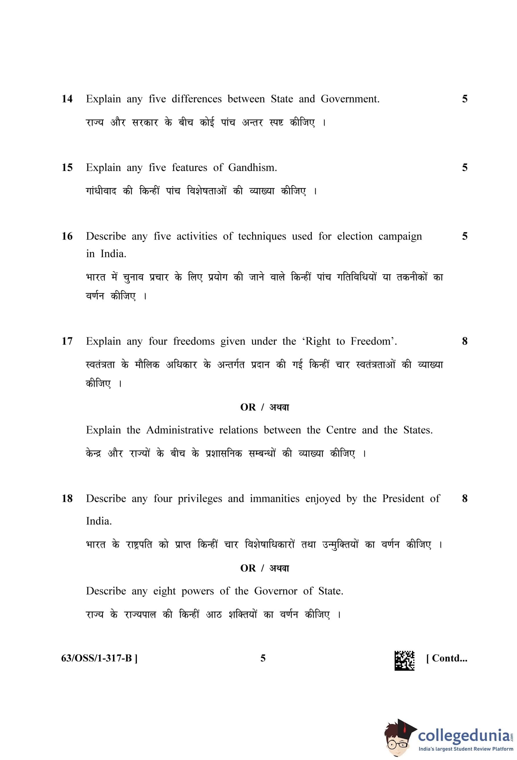 NIOS Class 12 Political Science (Set B - OSS) Question Paper 2022 with Answer Key