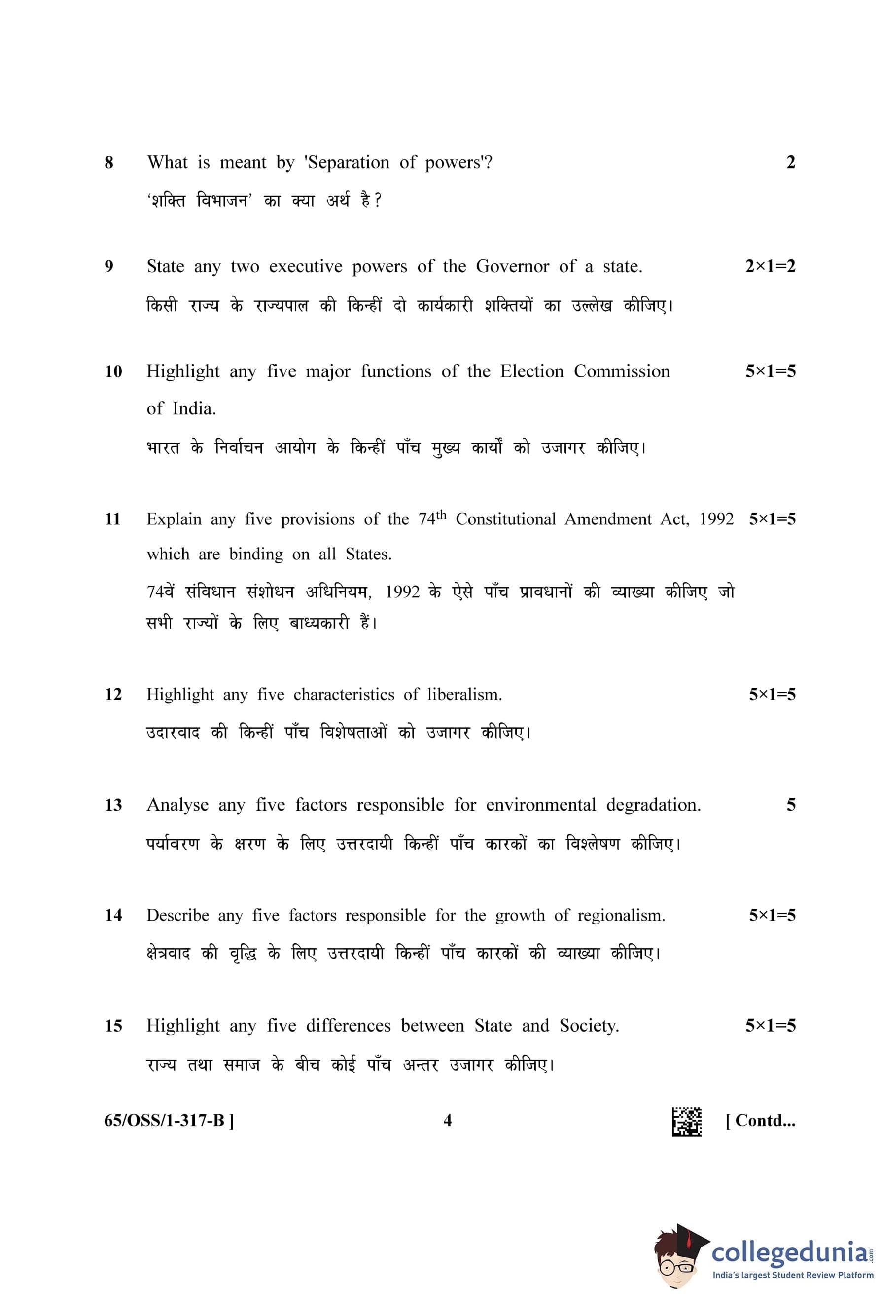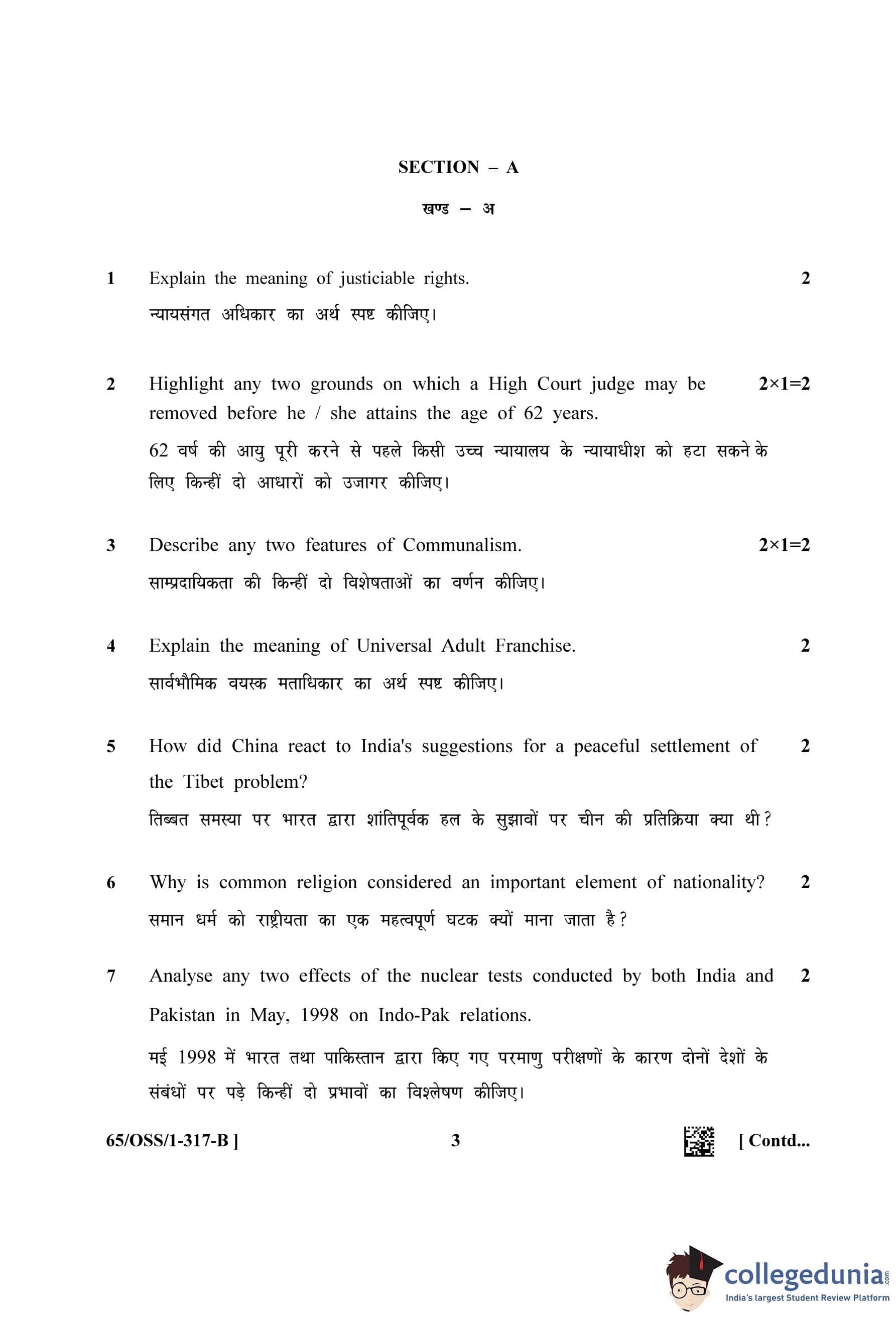 NIOS Class 12 Political Science Question Paper 2023 with Answer Key (Set B - OSS)