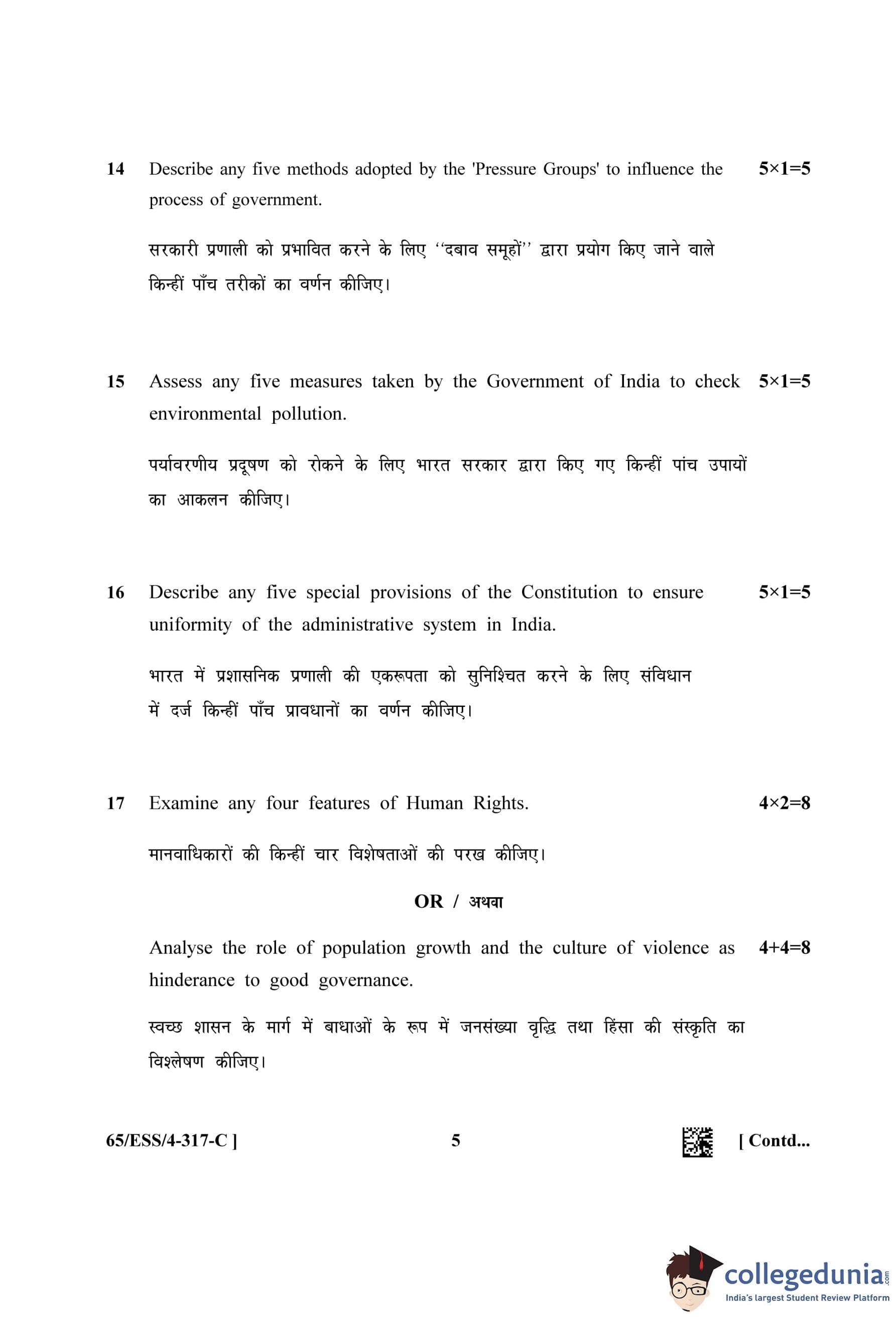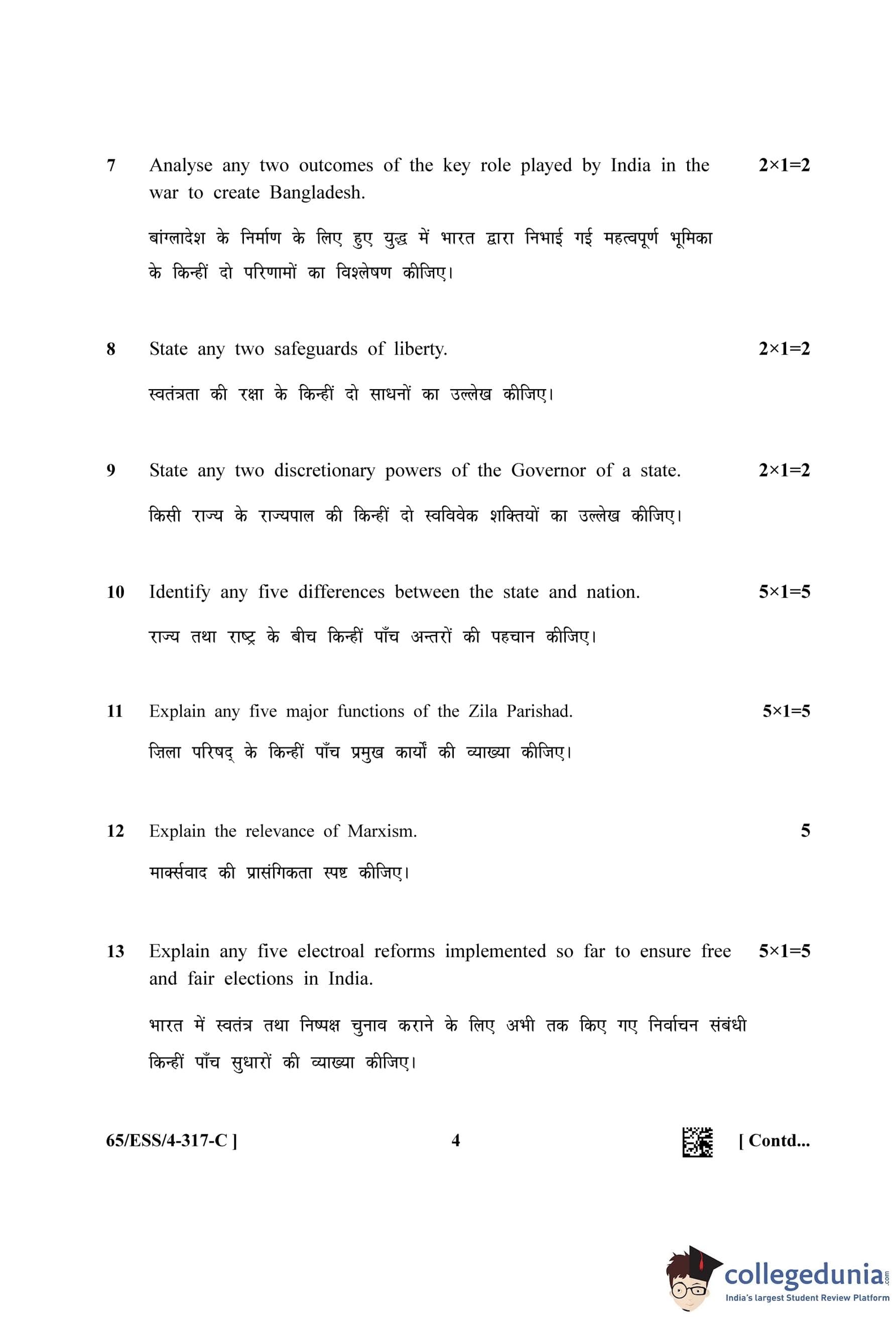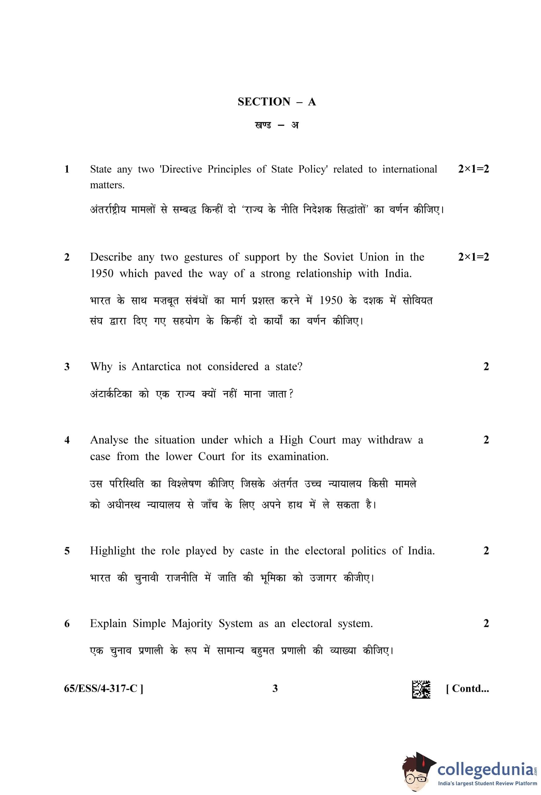 NIOS Class 12 Political Science Question Paper 2023 with Answer Key (Set C - ESS)