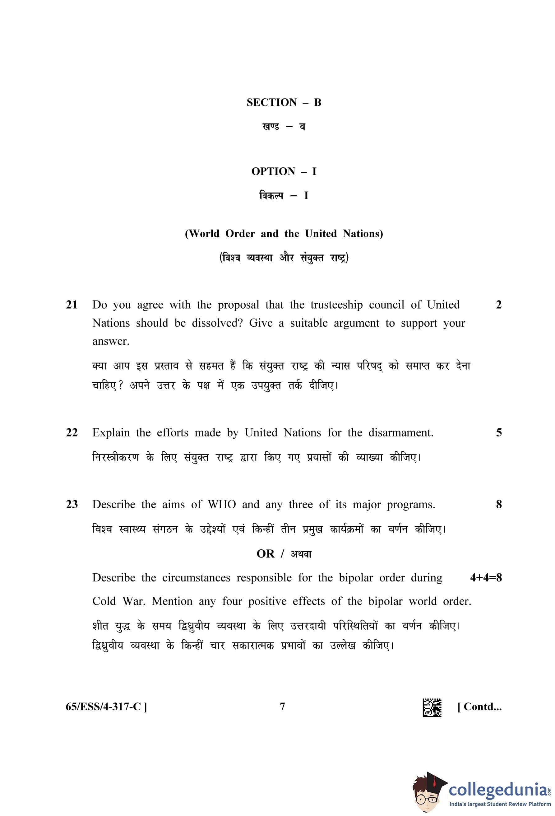 NIOS Class 12 Political Science Question Paper 2023 with Answer Key pdf (Set C - ESS) is available for download here. The exam was conducted by National Institute of Open Schooling on April 19, 2023 in the Afternoon Session 2.30 PM to 5.30 PM. The question paper comprised a total of 26 questions divided among 2 sections.