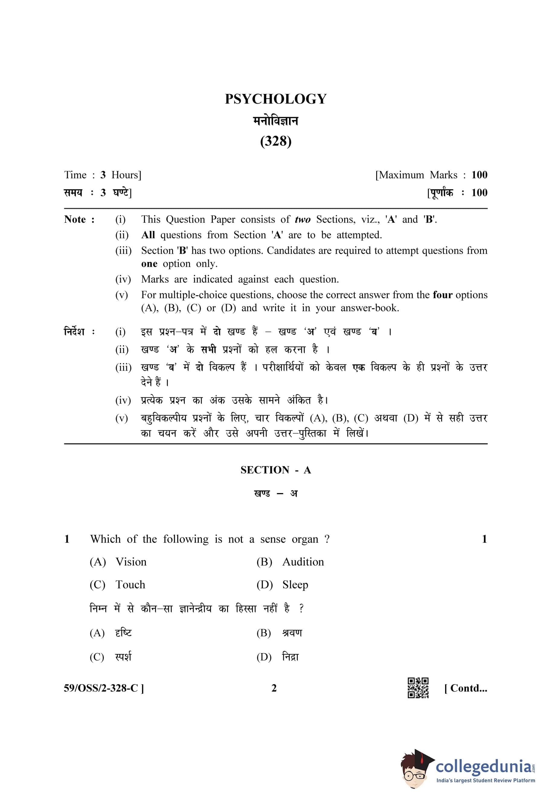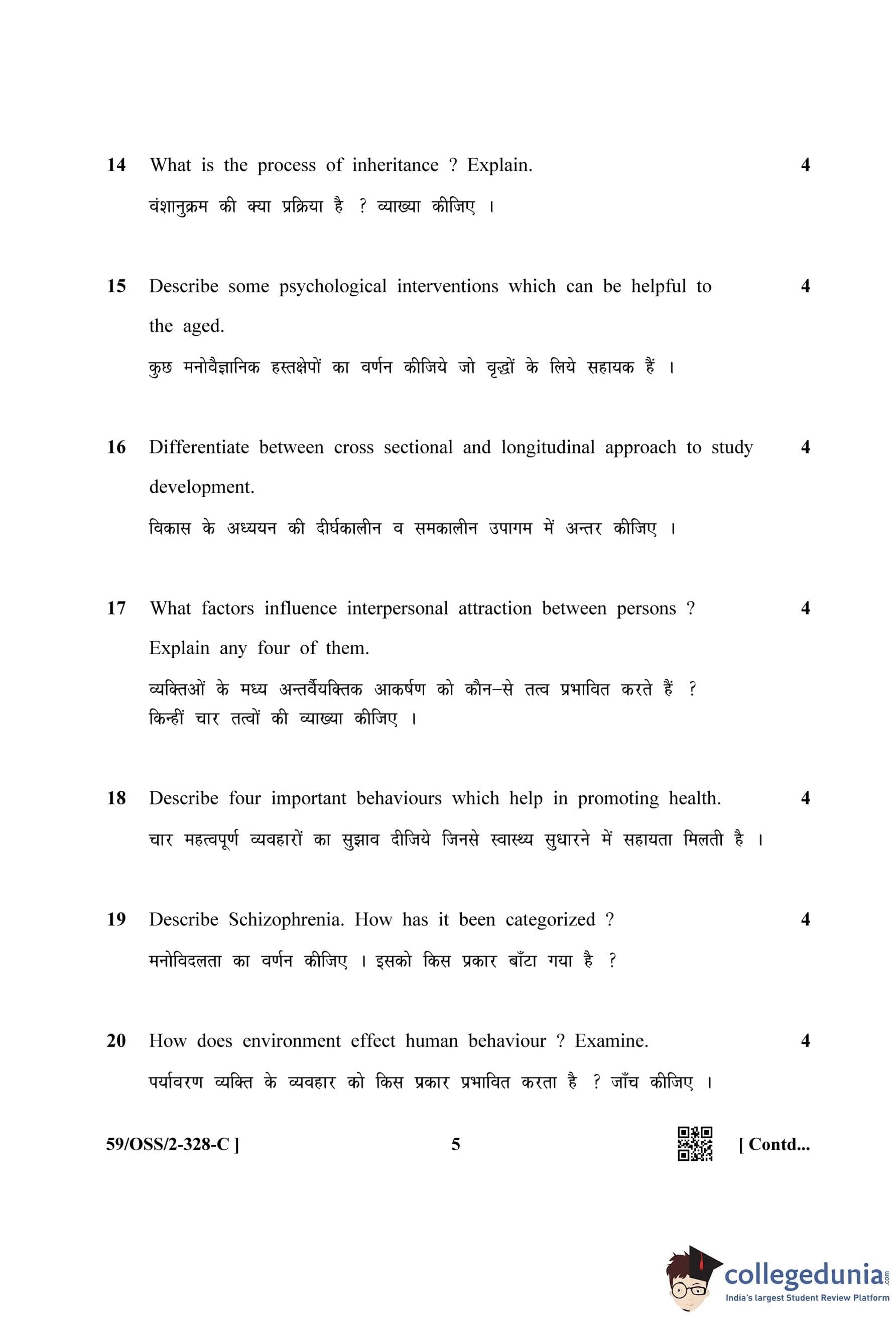 NIOS Class 12 Psychology Compartment Question Paper 2019 with Answer Key pdf (Set C) is available for download here. The exam was conducted by National Institute of Open Schooling on October 9, 2019 in the Afternoon Session 2:30 PM to 5:30 PM. The question paper comprised a total of 30 questions divided among 2 sections.