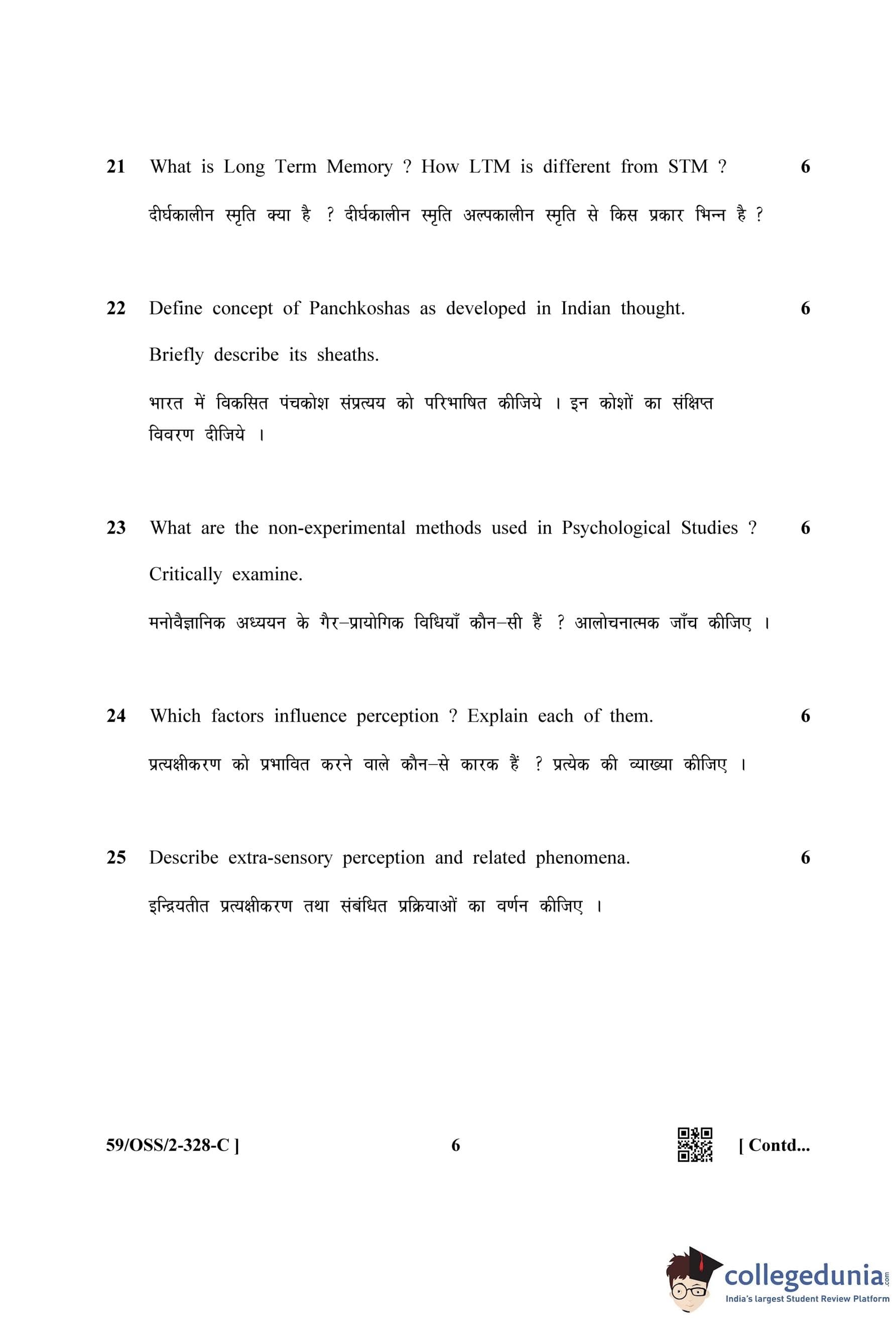 NIOS Class 12 Psychology (Set C) Compartment Question Paper 2019 with Answer Key