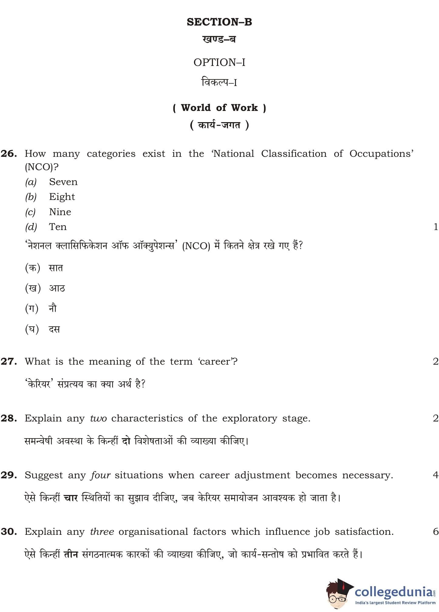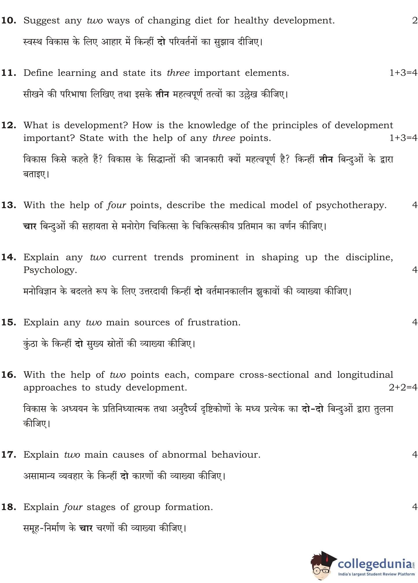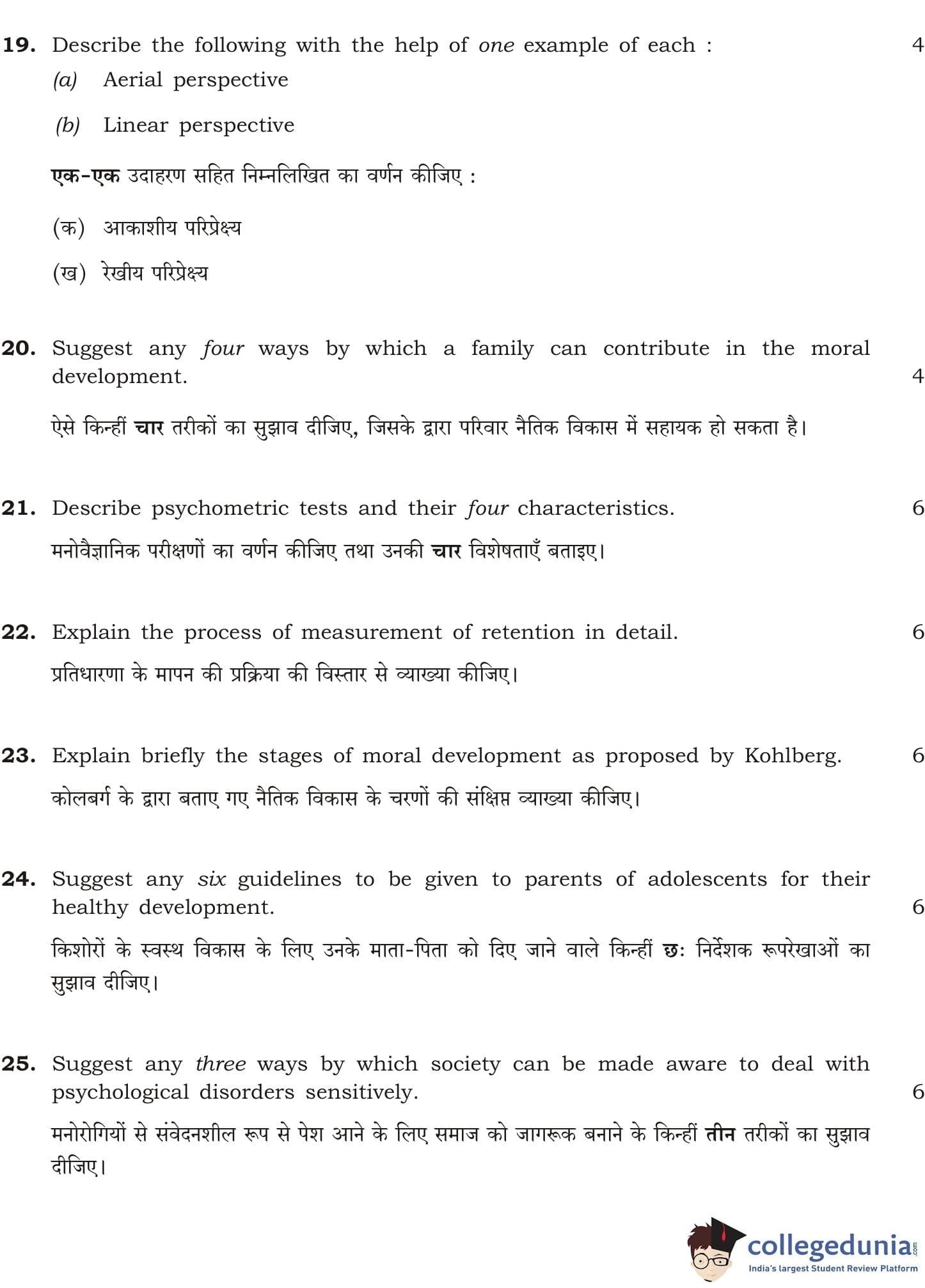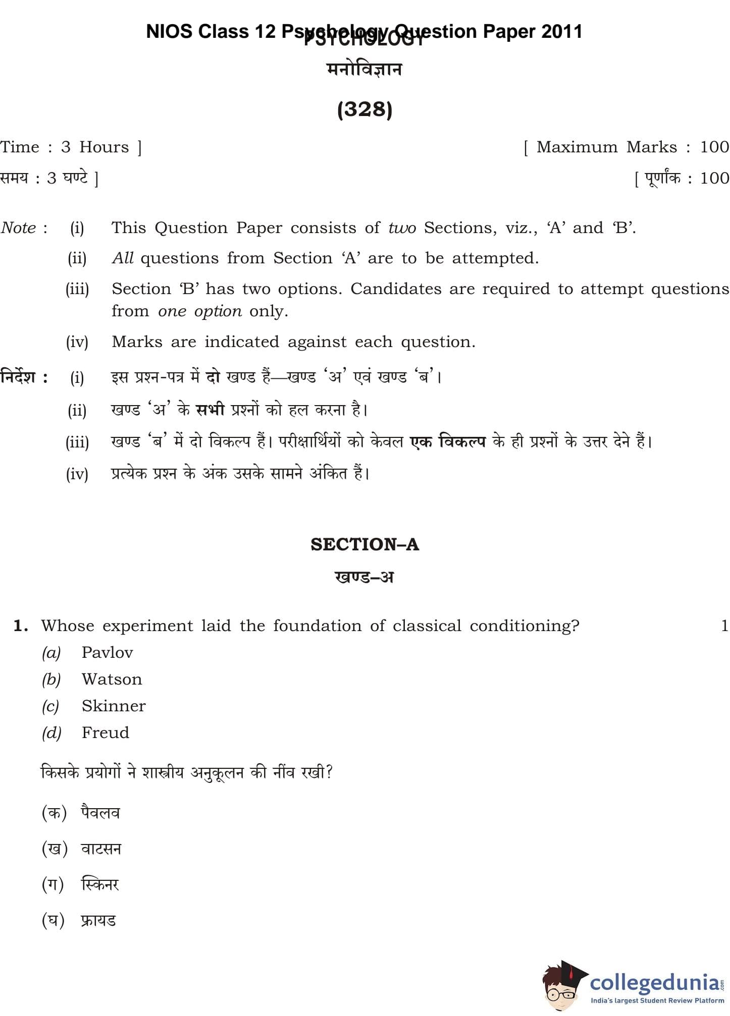 NIOS Class 12 Psychology Question Paper 2011 with Answer Key pdf is available for download here. The exam was conducted by National Institute of Open Schooling. The question paper comprised a total of 30 questions divided among 2 sections.