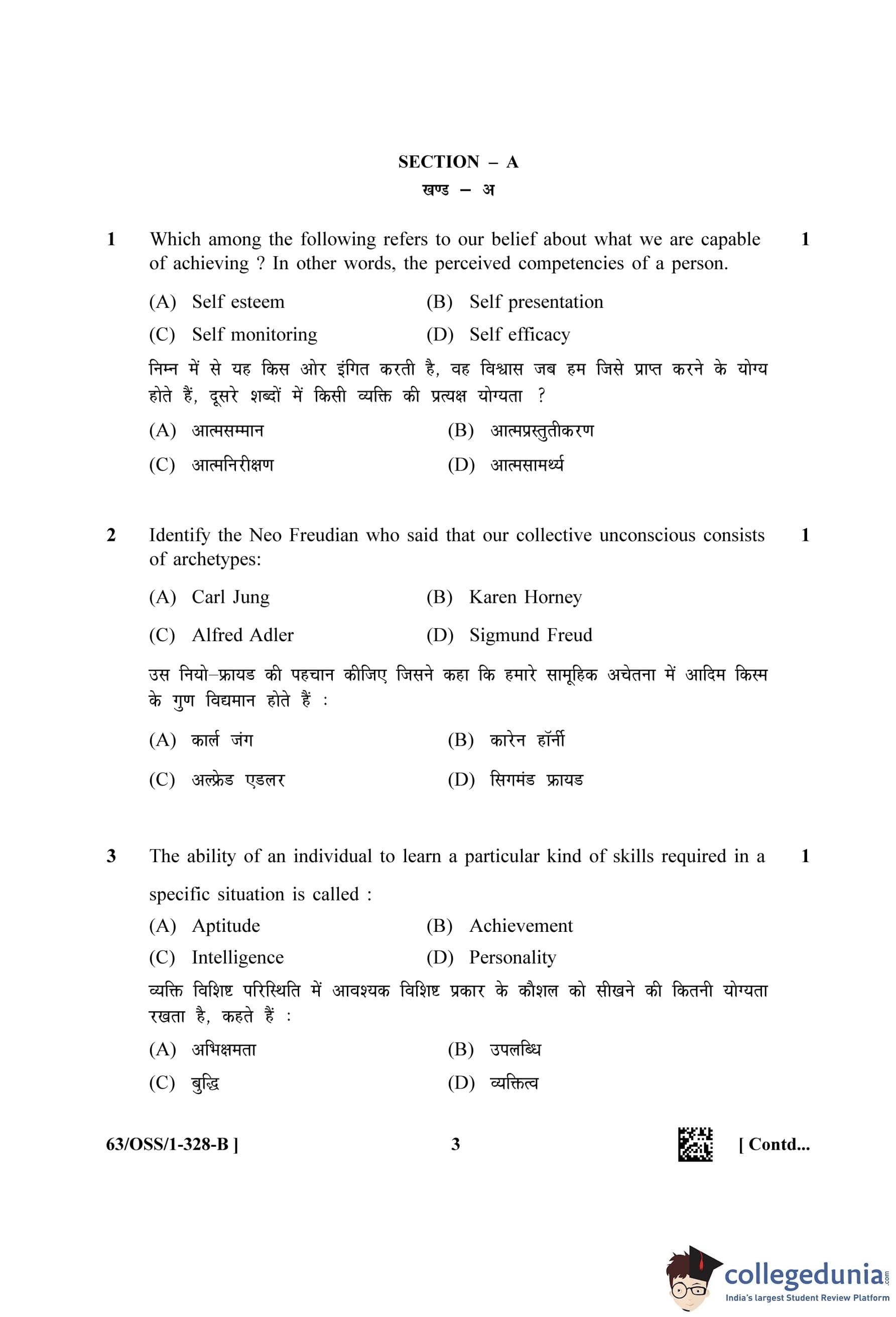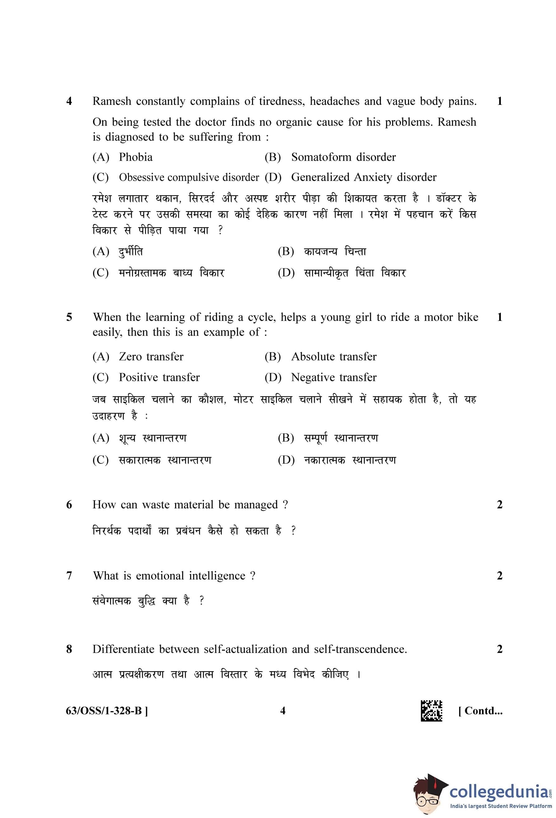 NIOS Class 12 Psychology (Set B - OSS) Question Paper 2022 with Answer Key