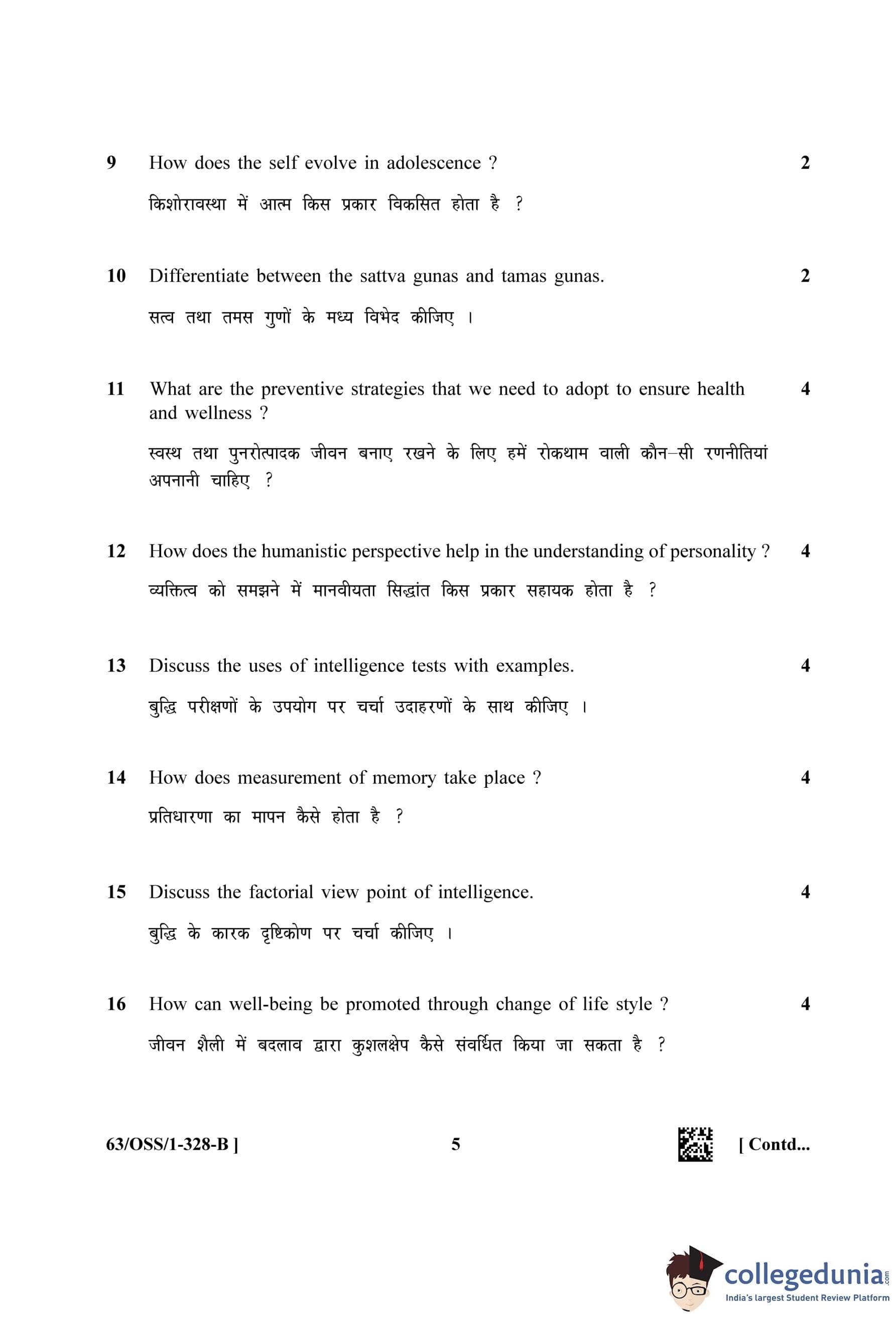NIOS Class 12 Psychology Question Paper 2022 with Answer Key pdf (Set B - OSS) is available for download here. The exam was conducted by National Institute of Open Schooling on April 11, 2022 in the Afternoon Session 2:30 PM to 5:30 PM. The question paper comprised a total of 30 questions divided among 2 sections.