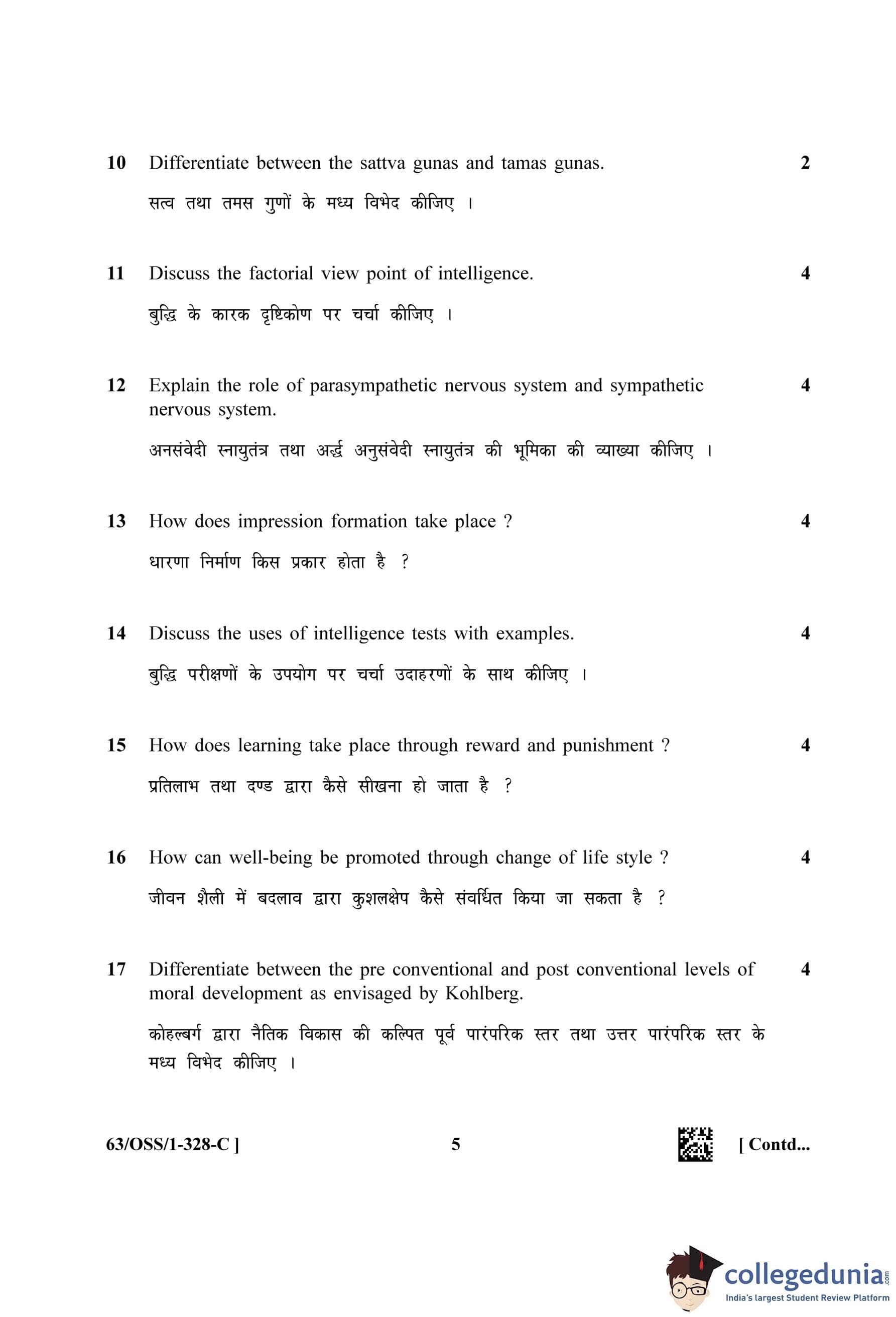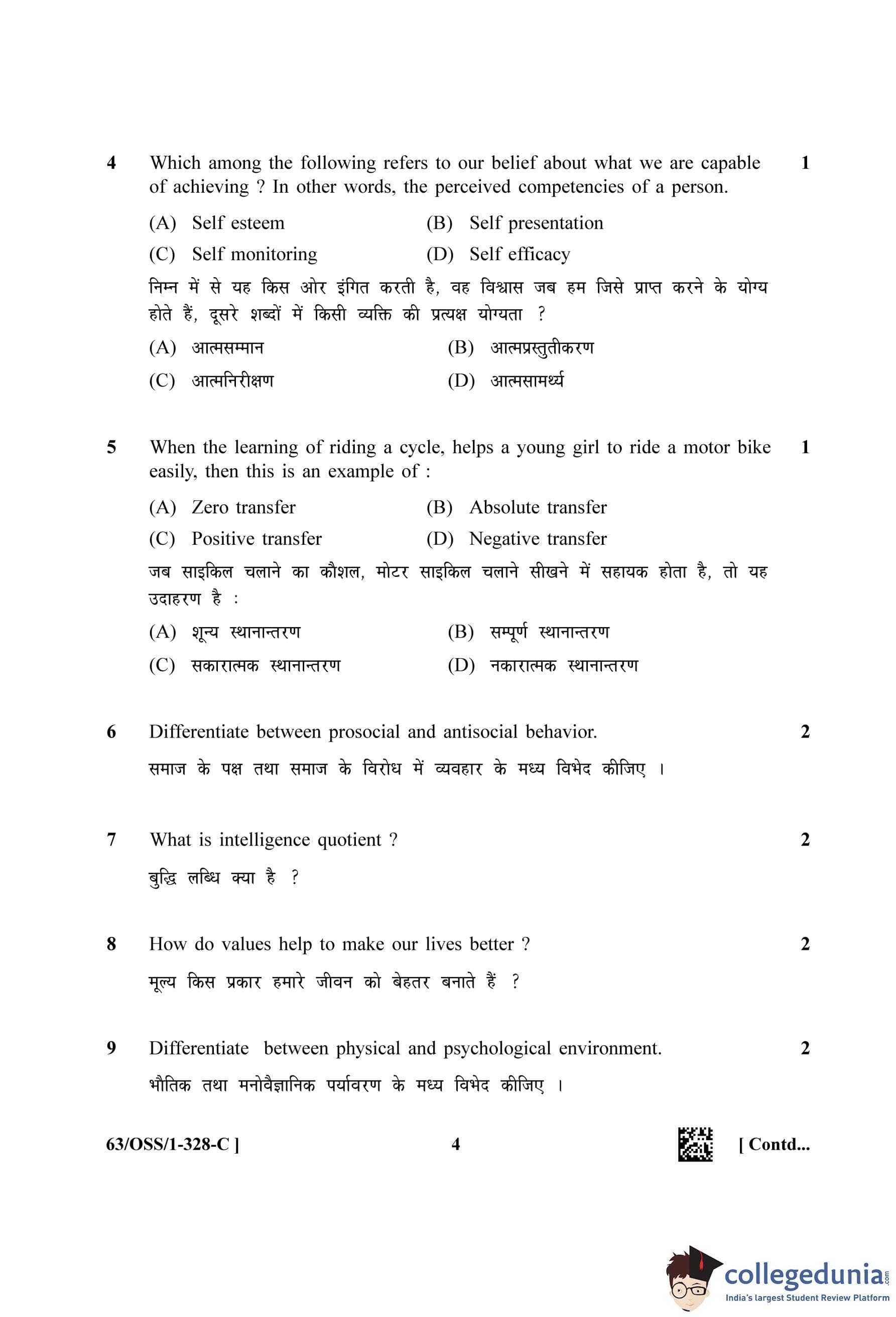 NIOS Class 12 Psychology (Set C - OSS) Question Paper 2022 with Answer Key