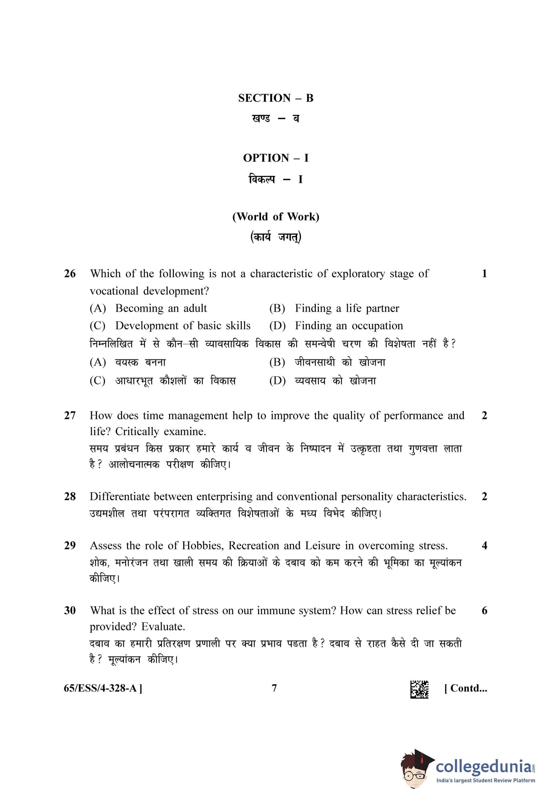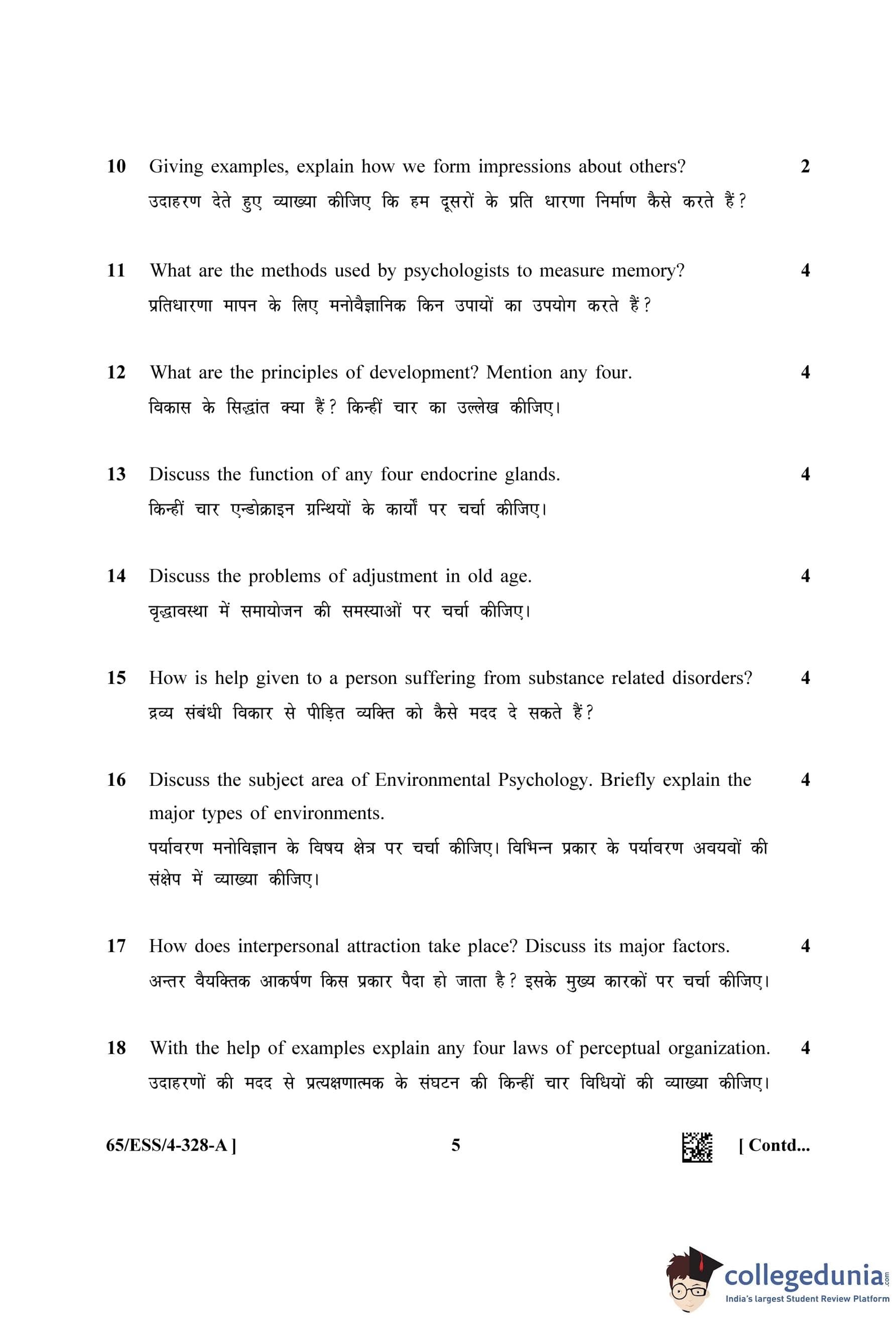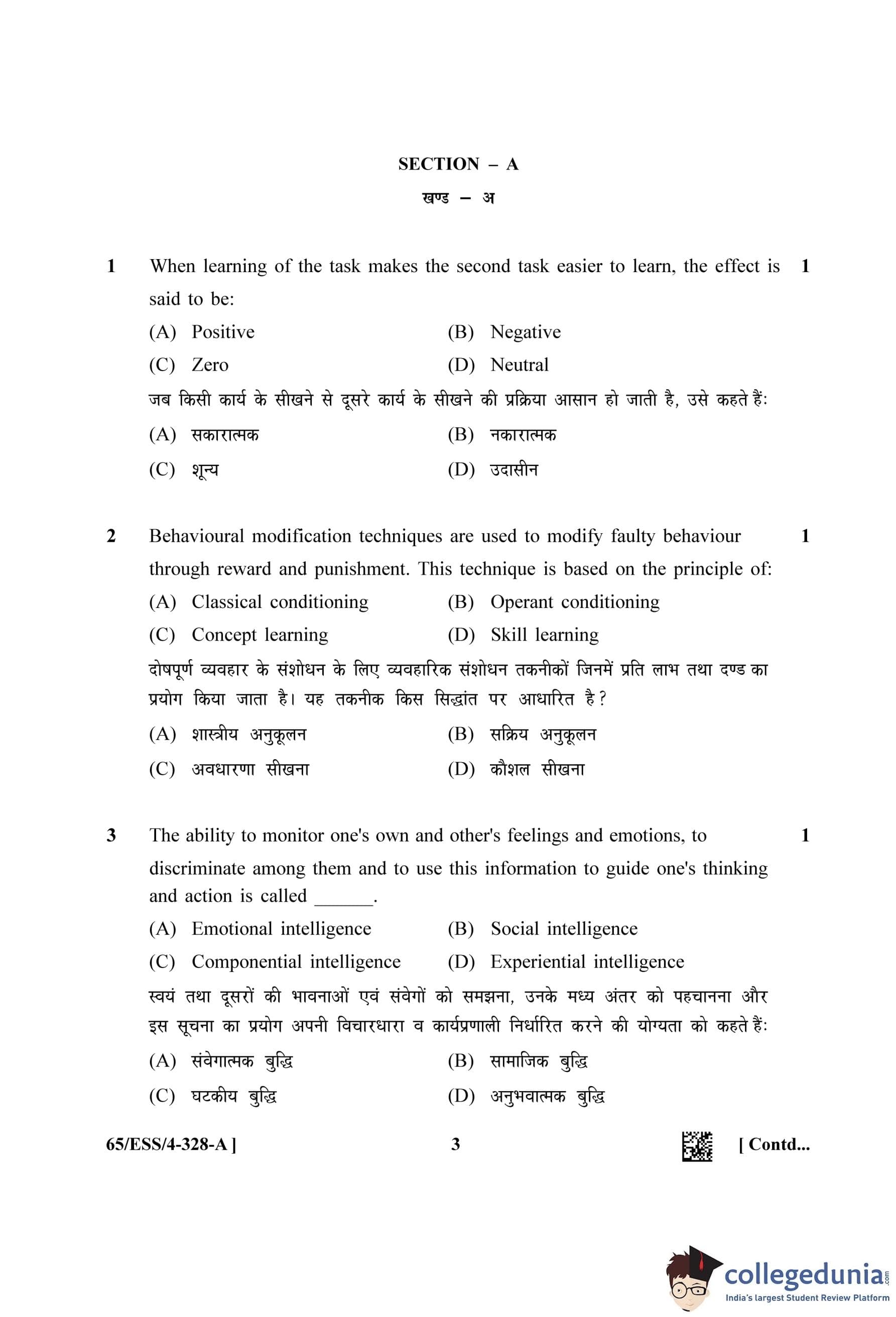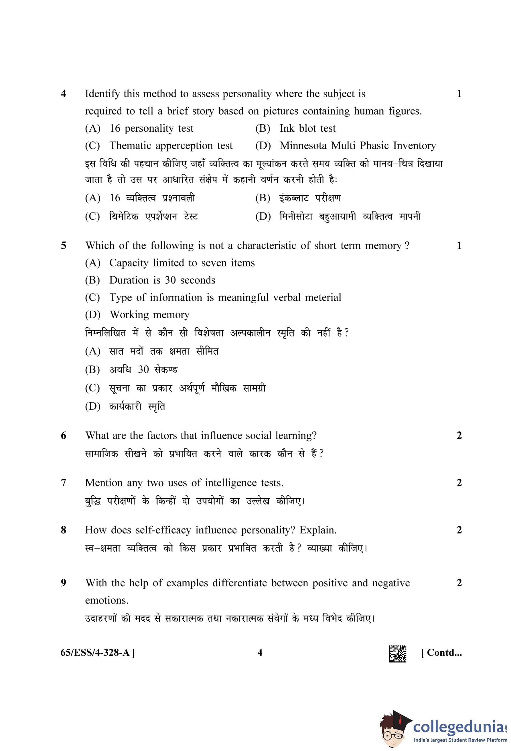 NIOS Class 12 Psychology (Set A - ESS) Question Paper 2023 with Answer Key