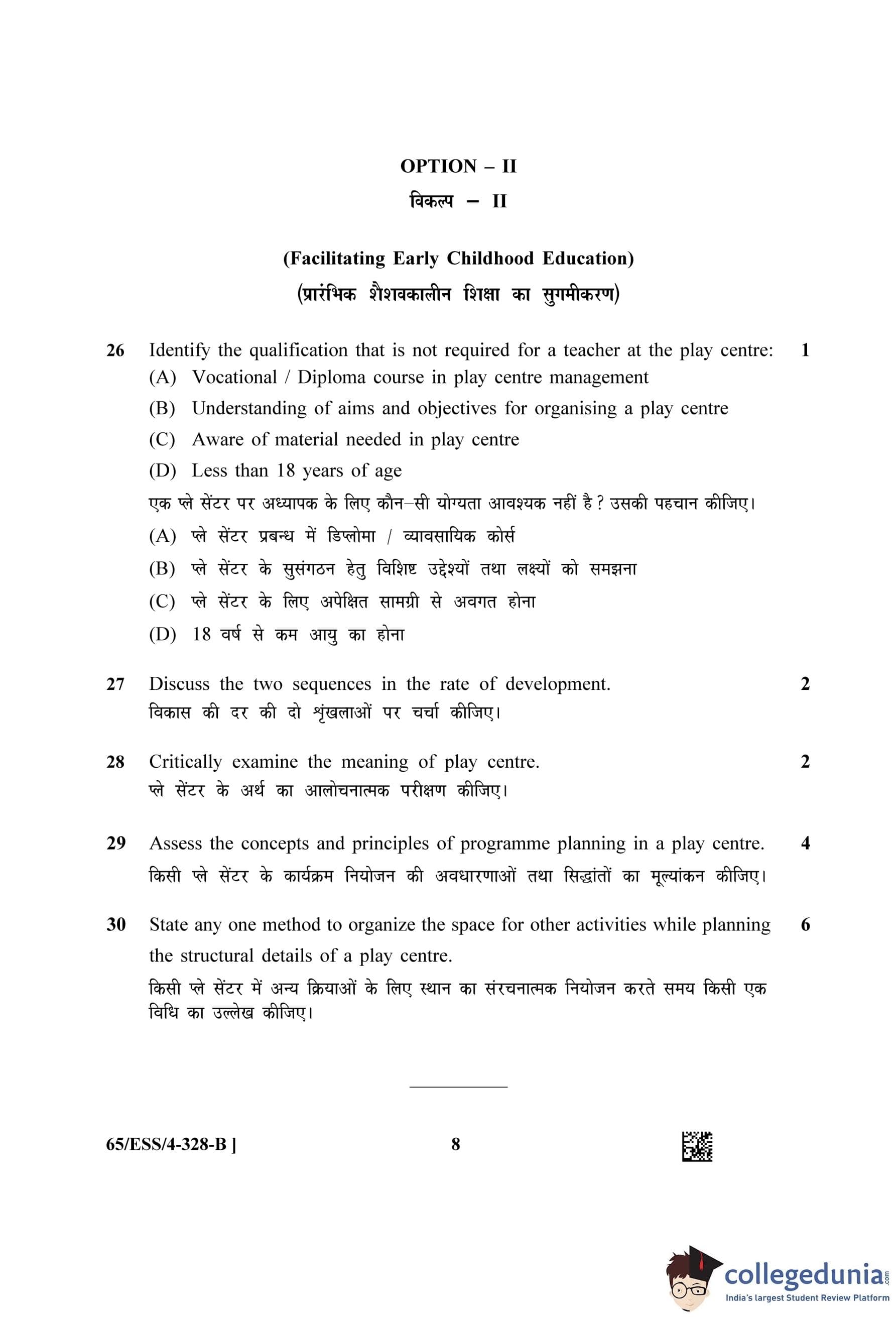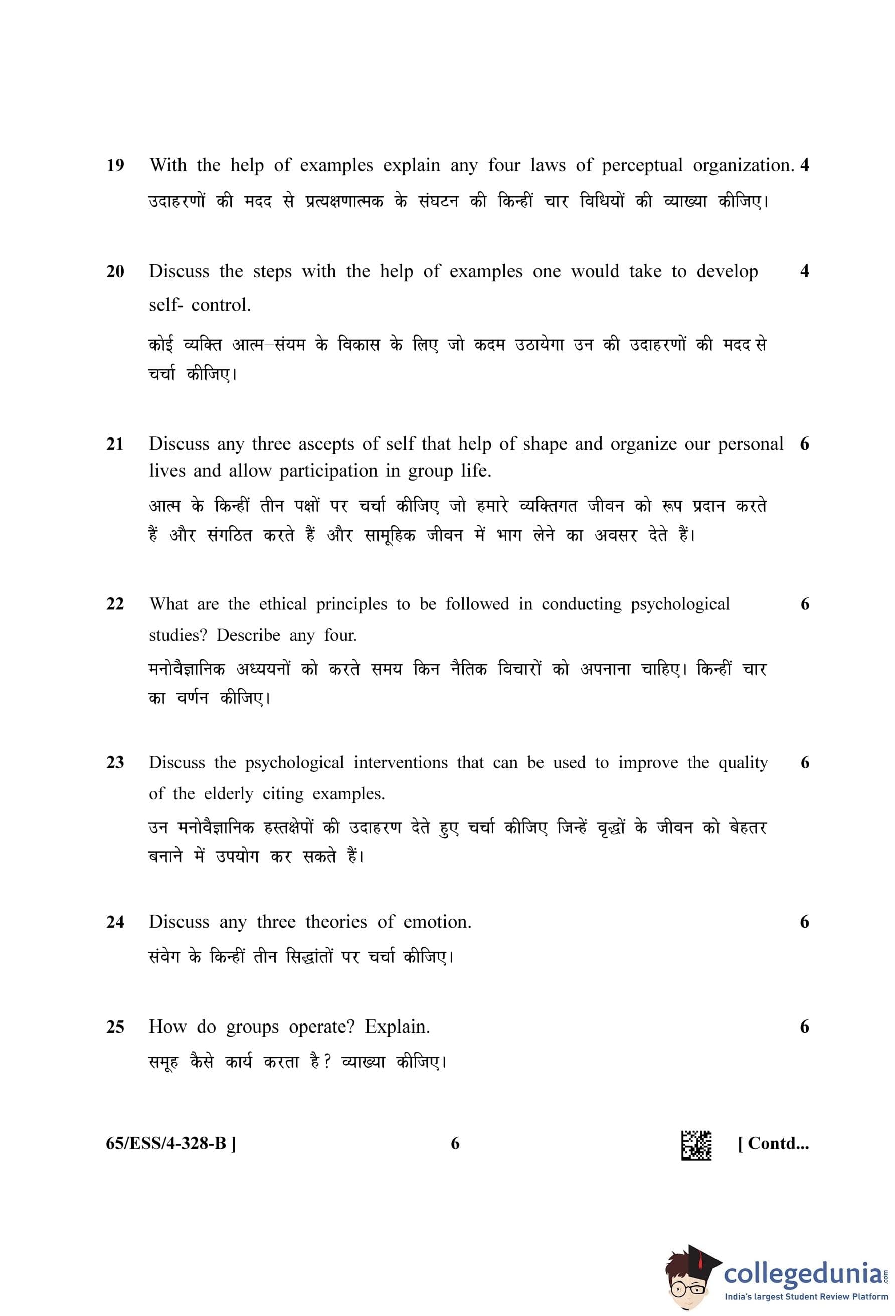 NIOS Class 12 Psychology Question Paper 2023 with Answer Key pdf (Set B - ESS) is available for download here. The exam was conducted by National Institute of Open Schooling on April 27, 2023 in the Afternoon Session 2.30 PM to 5.30 PM. The question paper comprised a total of 35 questions divided among 2 sections.