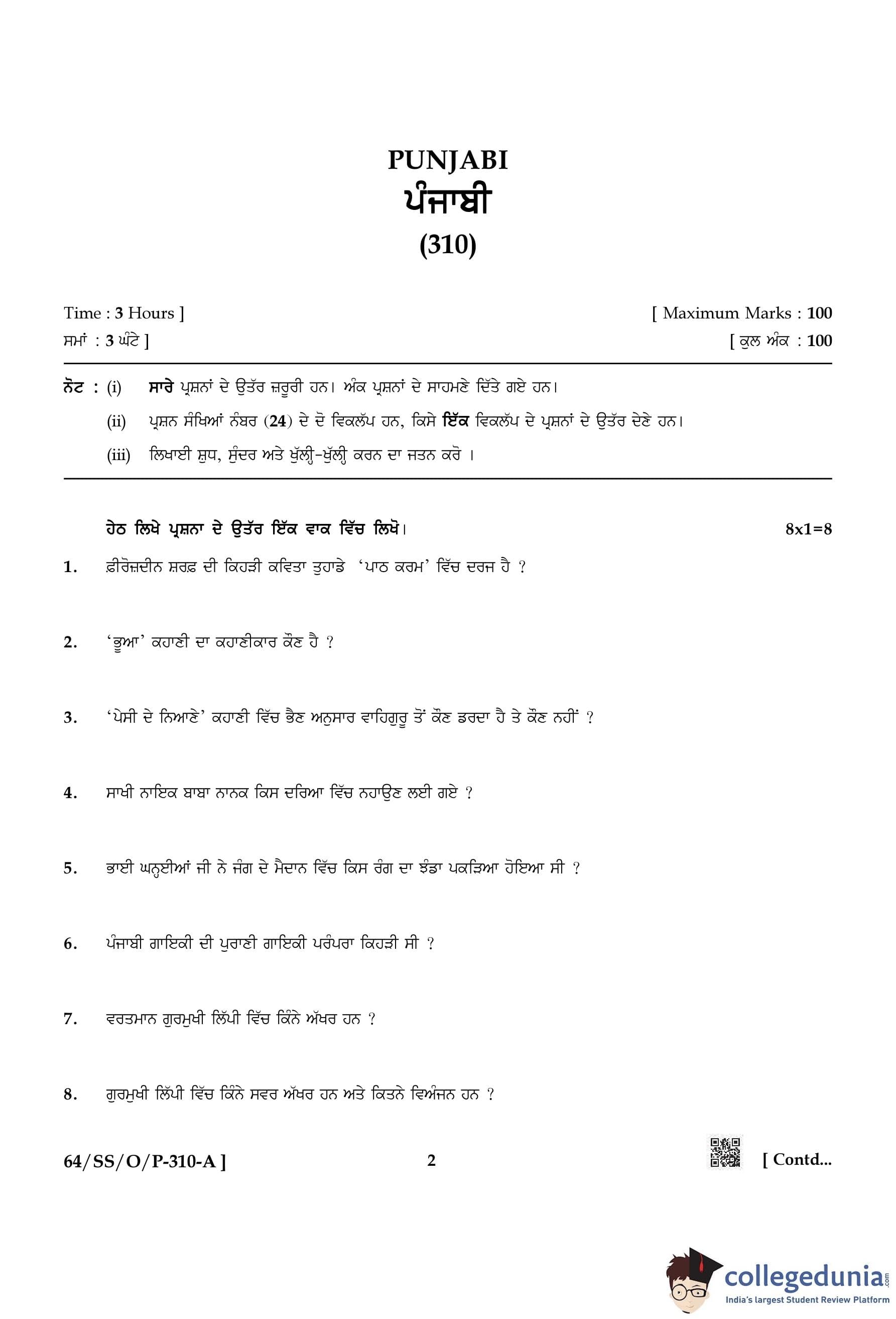| NIOS Class 12 Punjabi Question Paper 2022 PDF | NIOS Class 12 Punjabi Answer Key 2022 PDF |