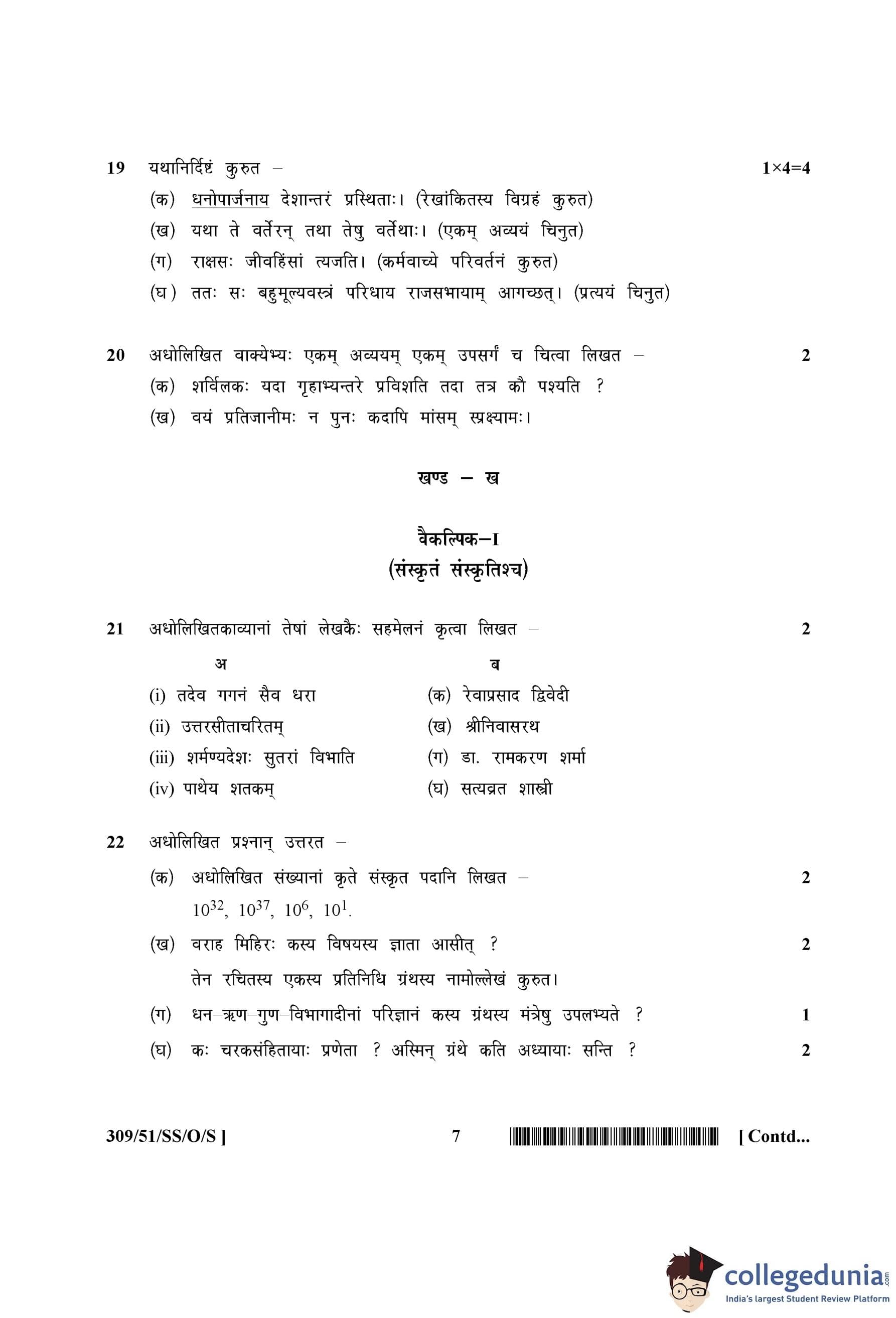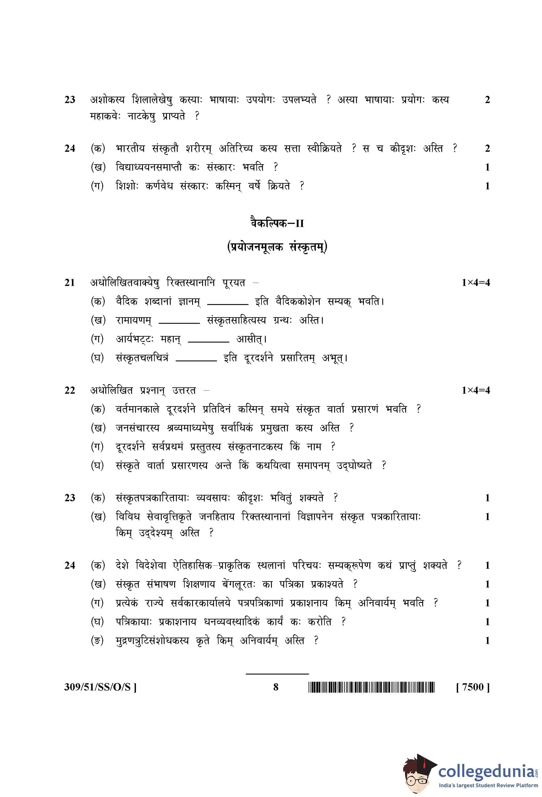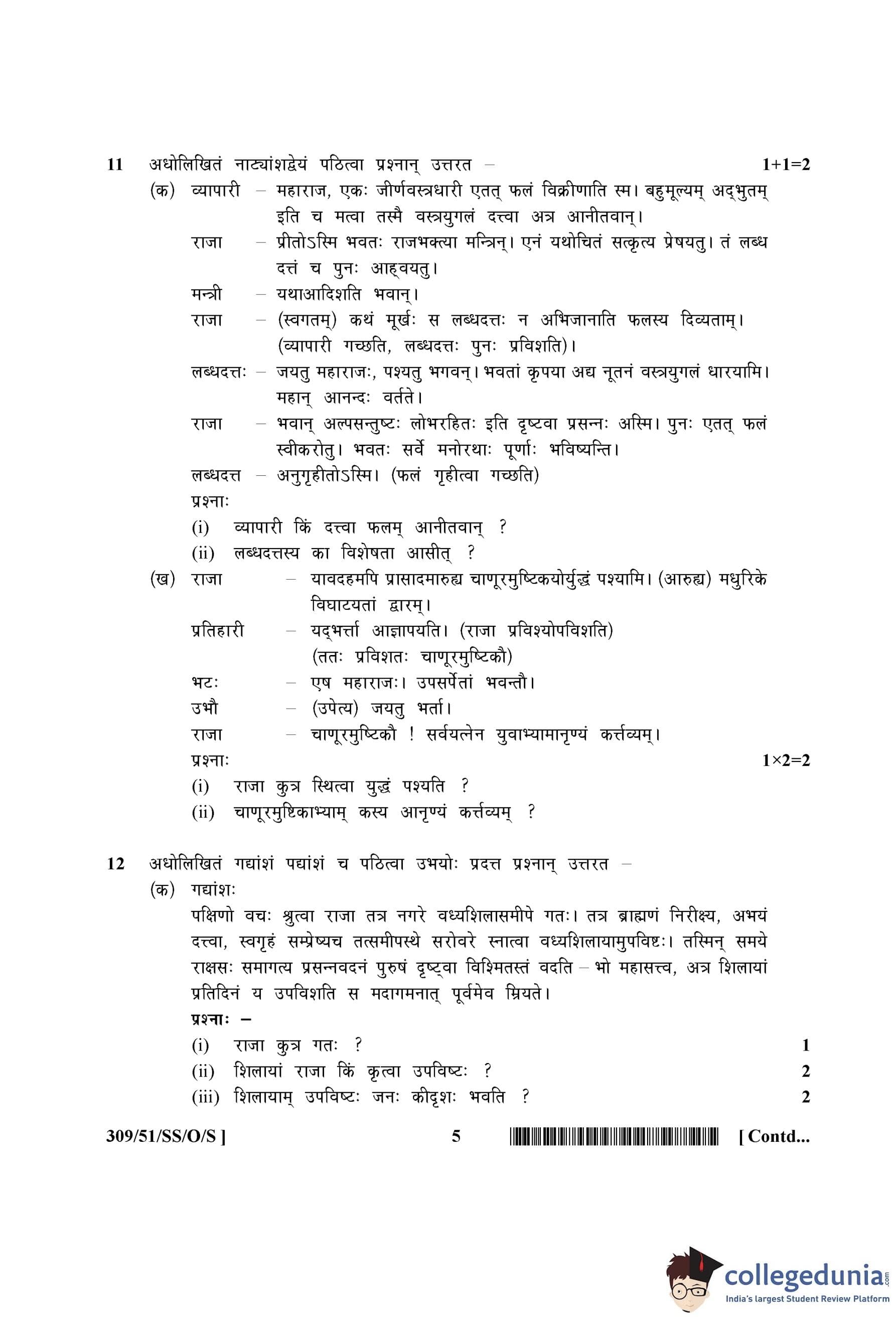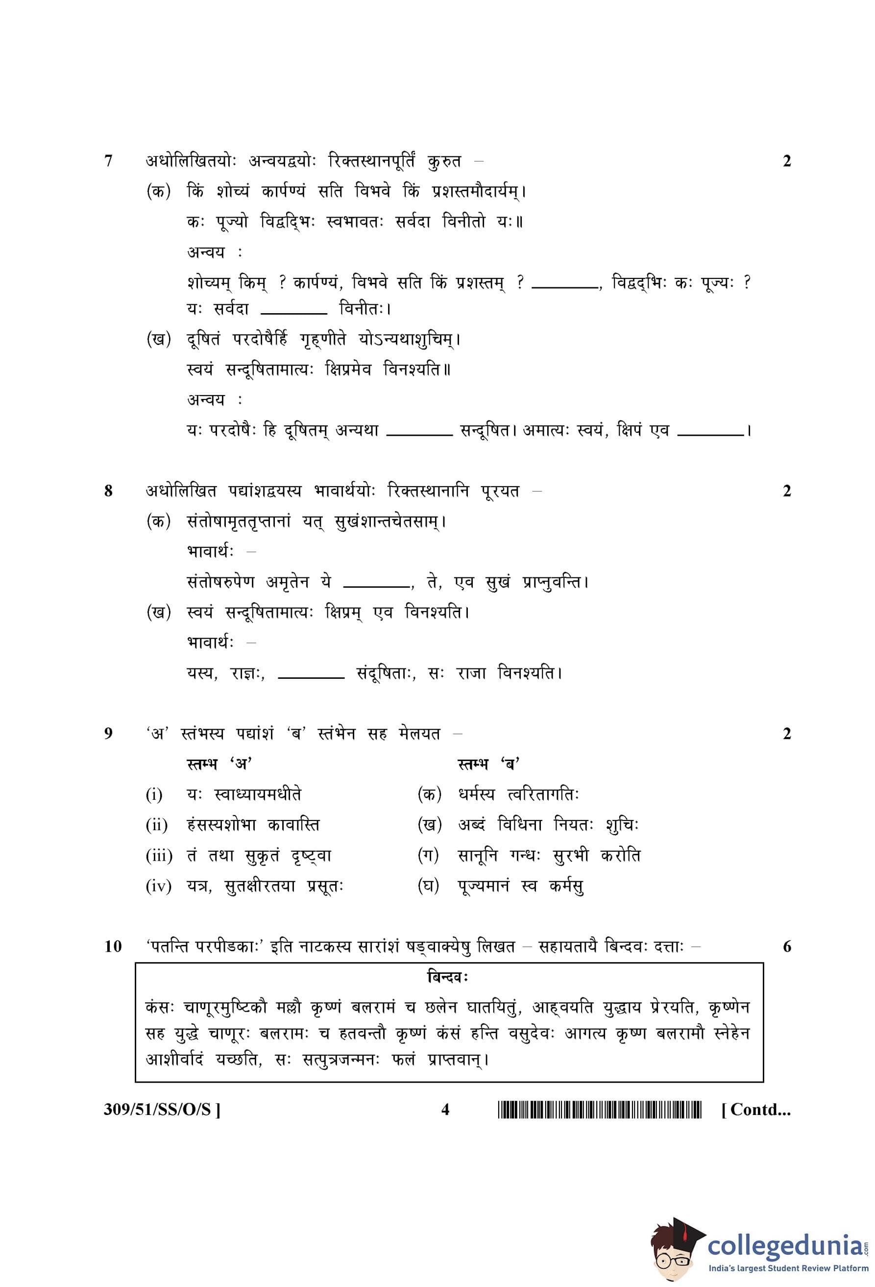 NIOS Class 12 Sanskrit Compartment Question Paper 2015 with Answer Key