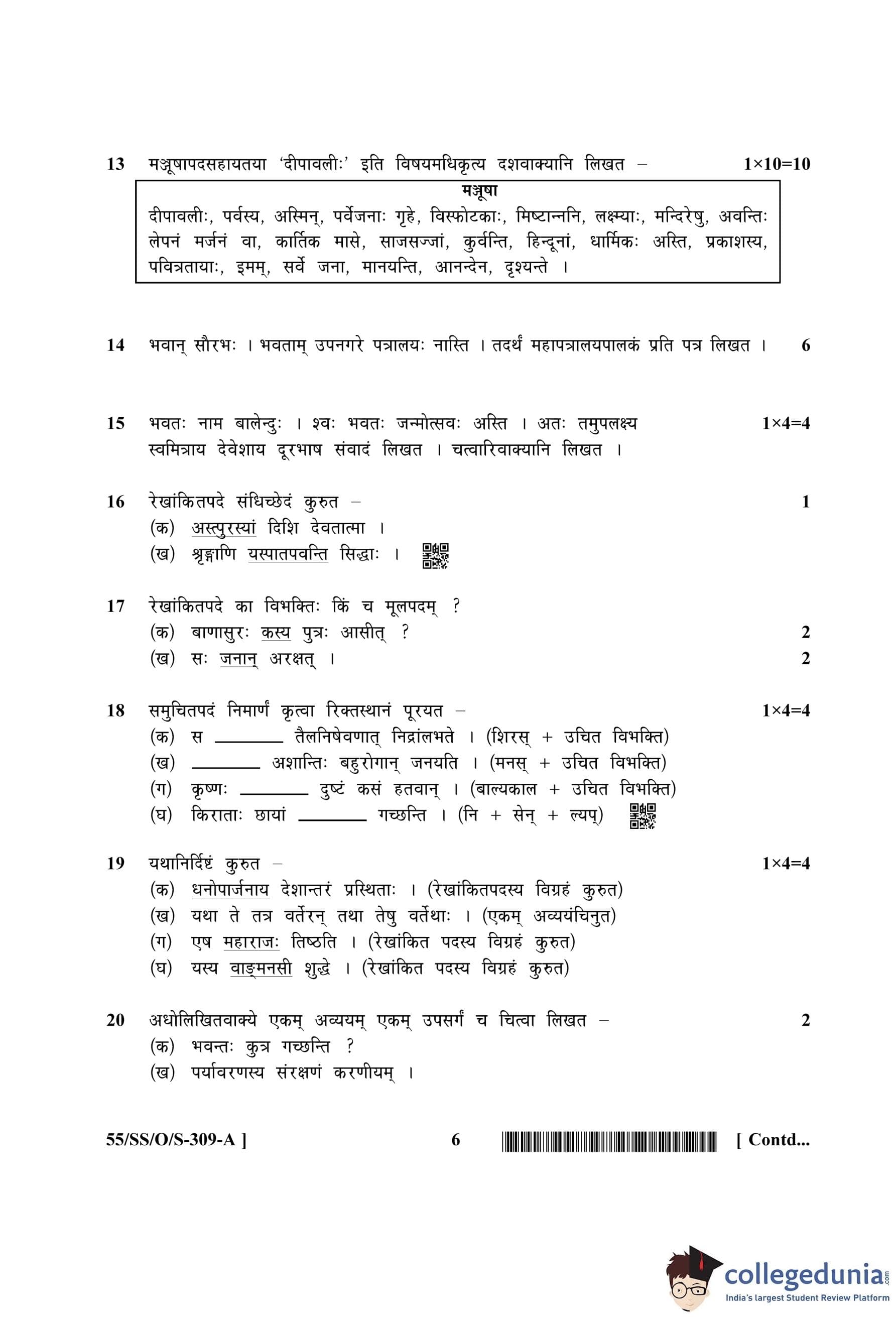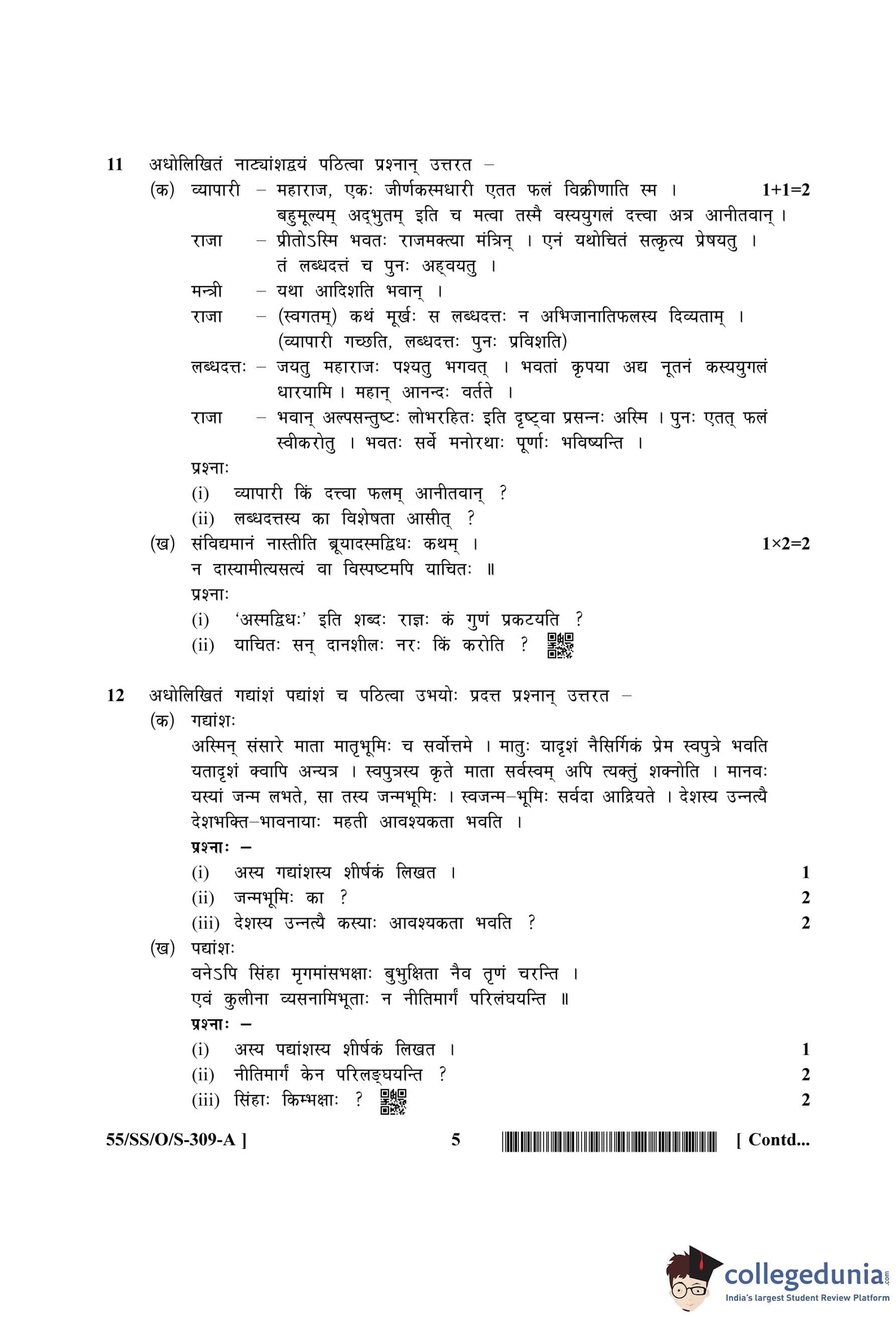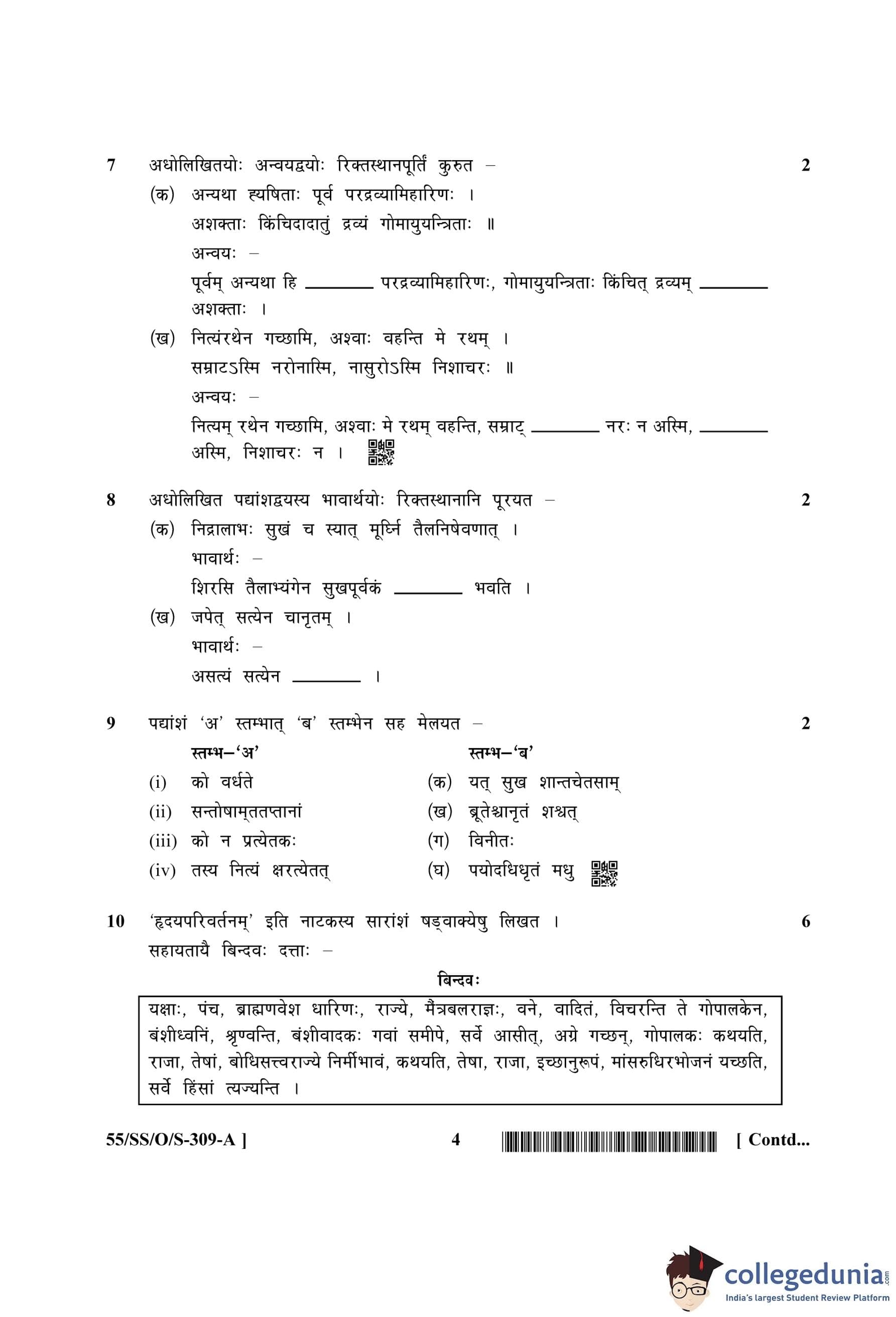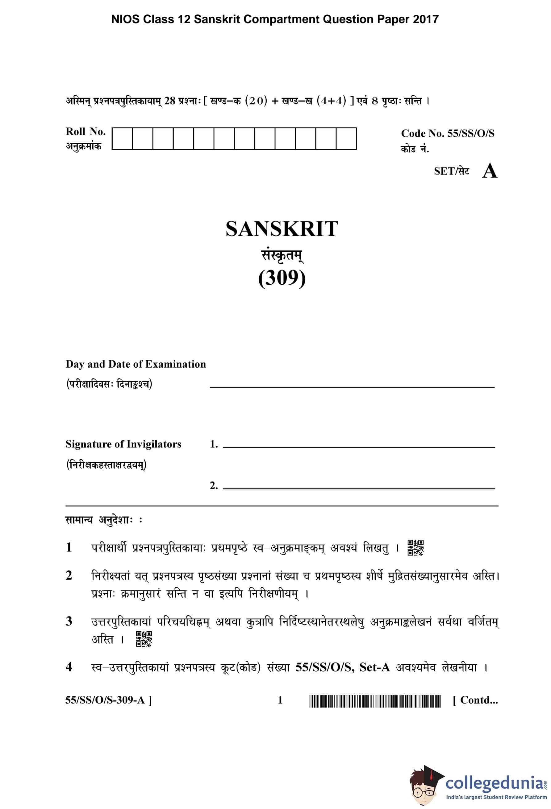 NIOS Class 12 Sanskrit Compartment Question Paper 2017 with Answer Key
