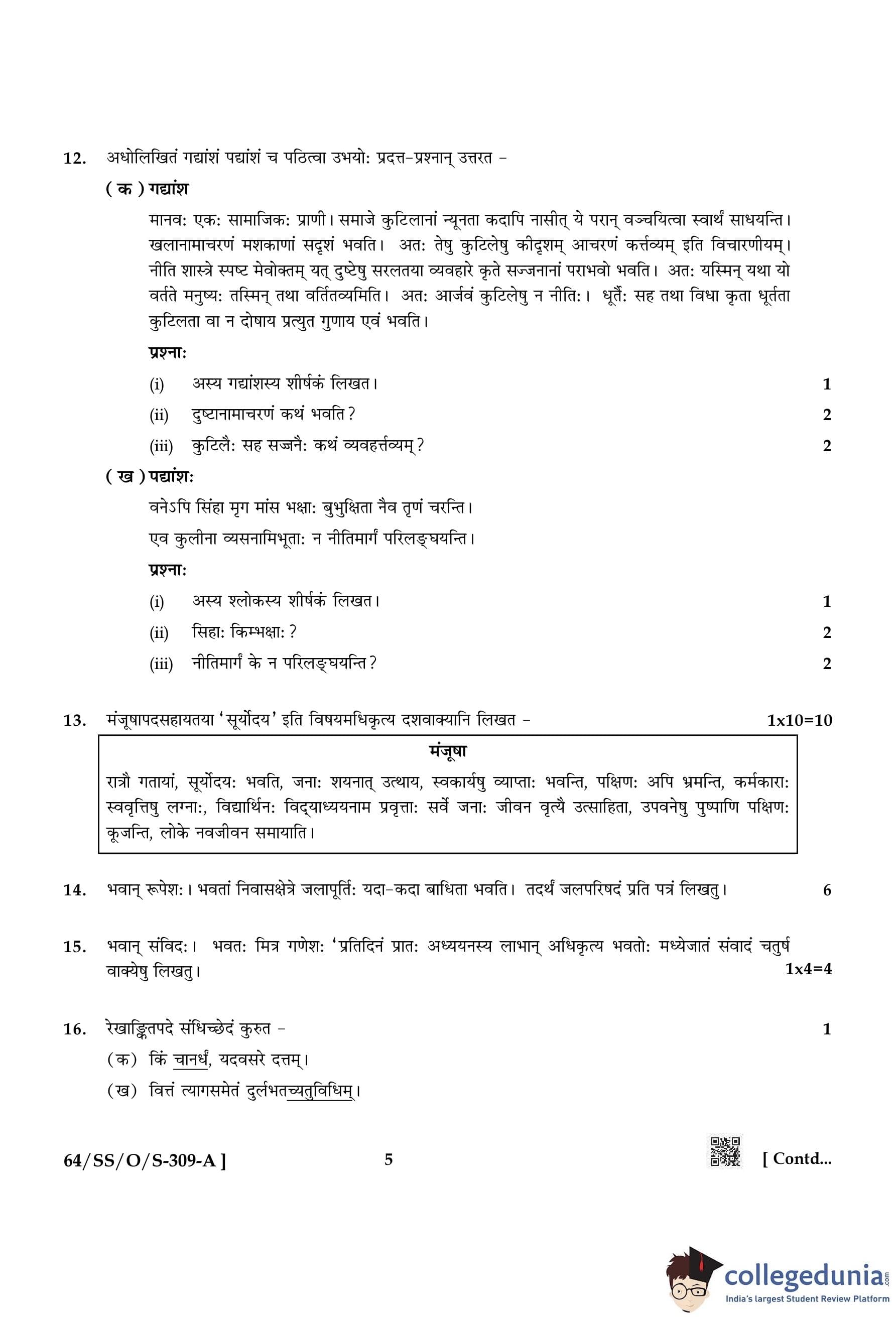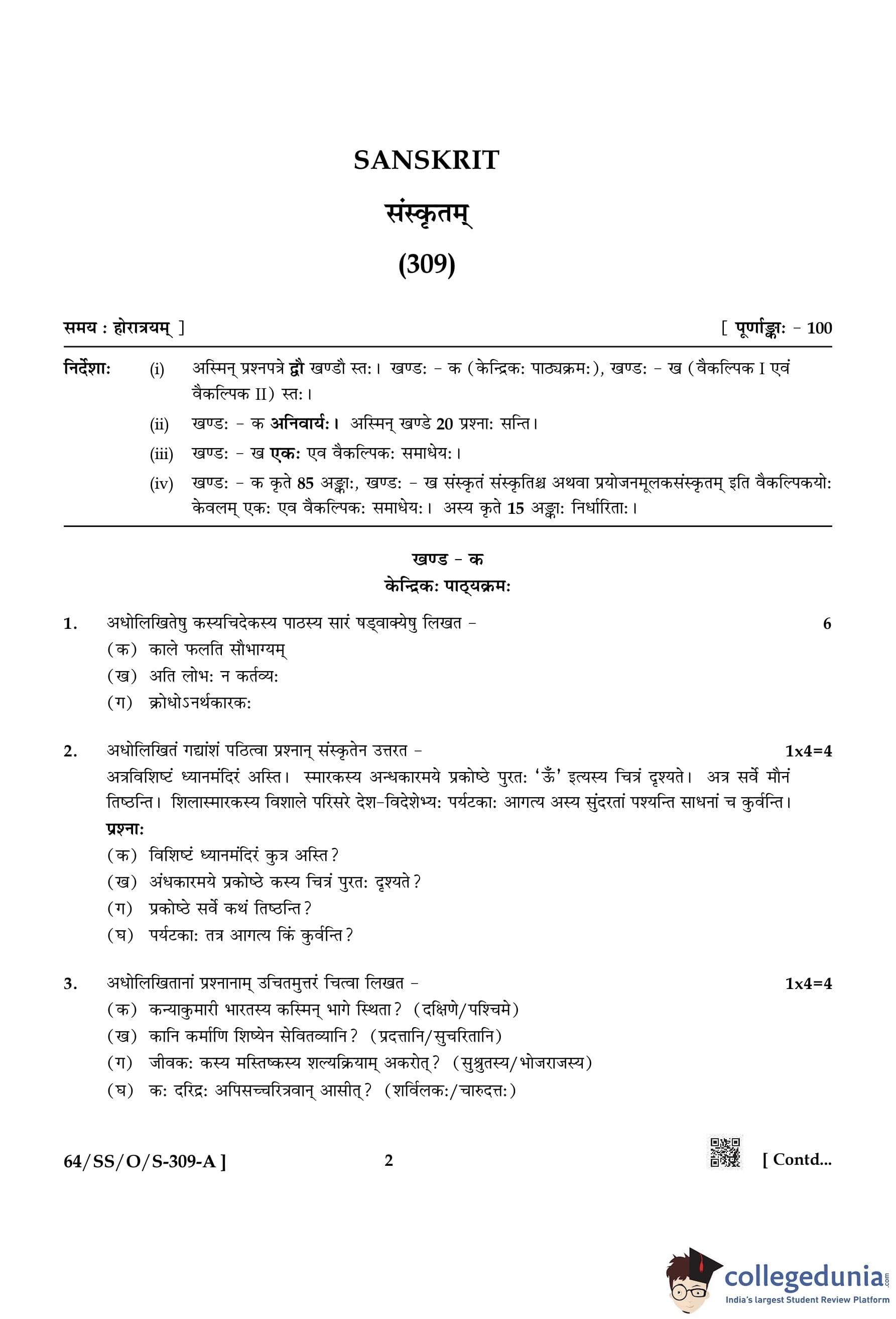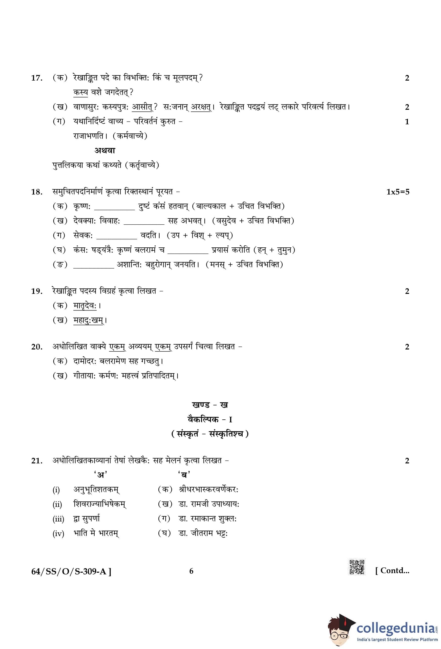 NIOS Class 12 Sanskrit Compartment Question Paper 2022 with Answer Key pdf is available for download here. The exam was conducted by National Institute of Open Schooling on October 12, 2022 in the Afternoon Session 2:30 PM to 5:30 PM. The question paper comprised a total of 24 questions divided among 2 sections.