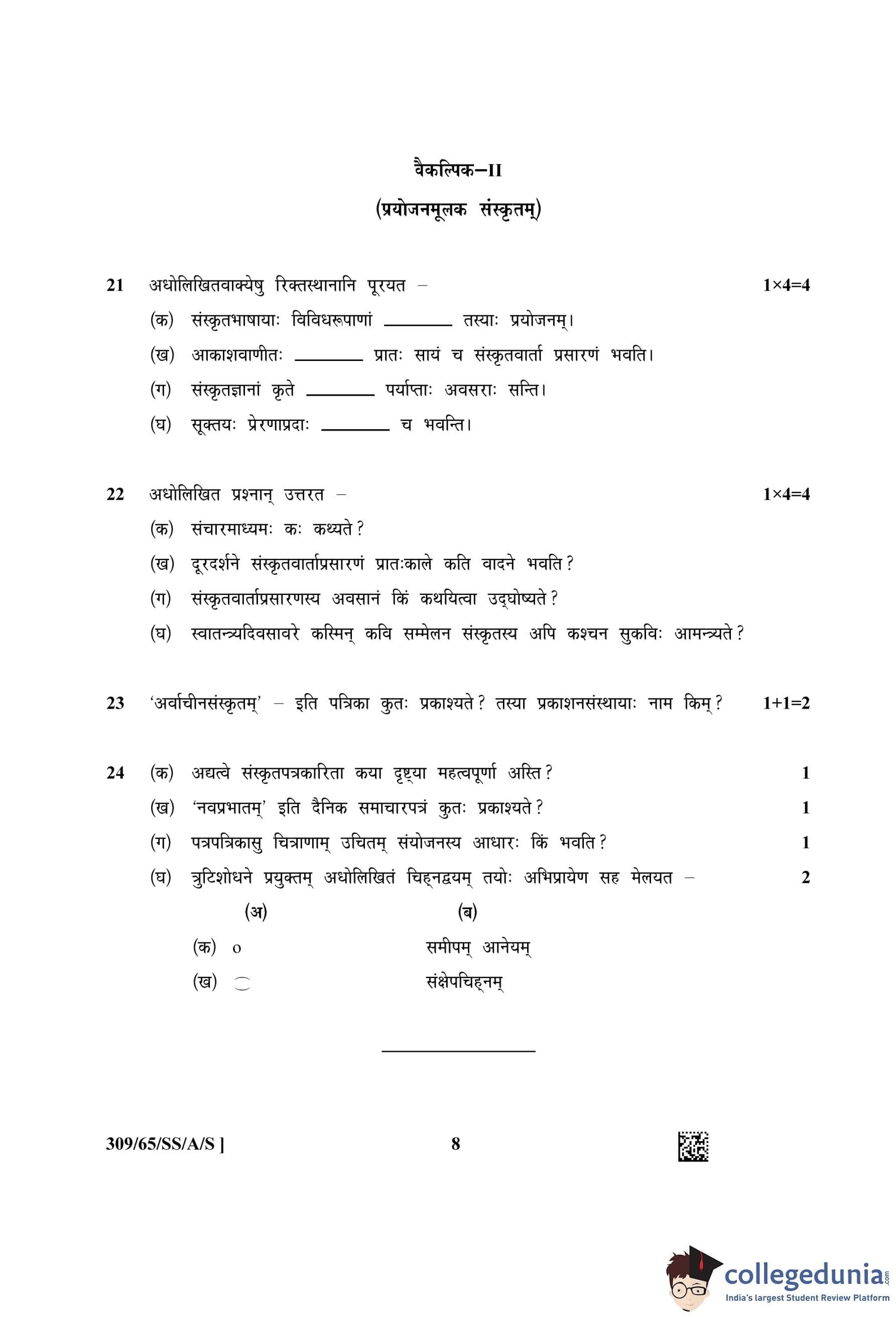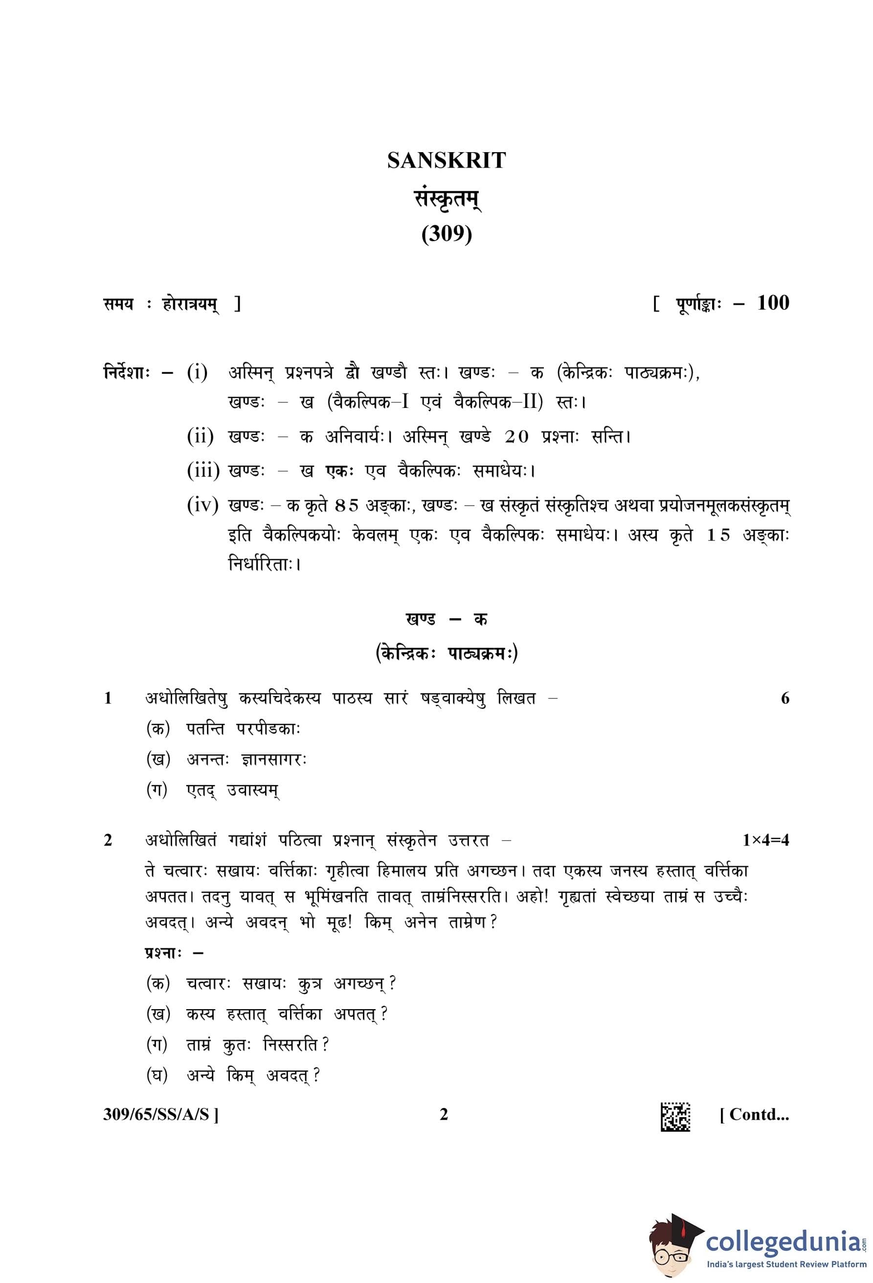 NIOS Class 12 Sanskrit Question Paper 2023 with Answer Key pdf (Set A) is available for download here. The exam was conducted by National Institute of Open Schooling on April 6, 2023 in the Afternoon Session 2.30 PM to 5.30 PM. The question paper comprised a total of 28 questions divided among 2 sections.