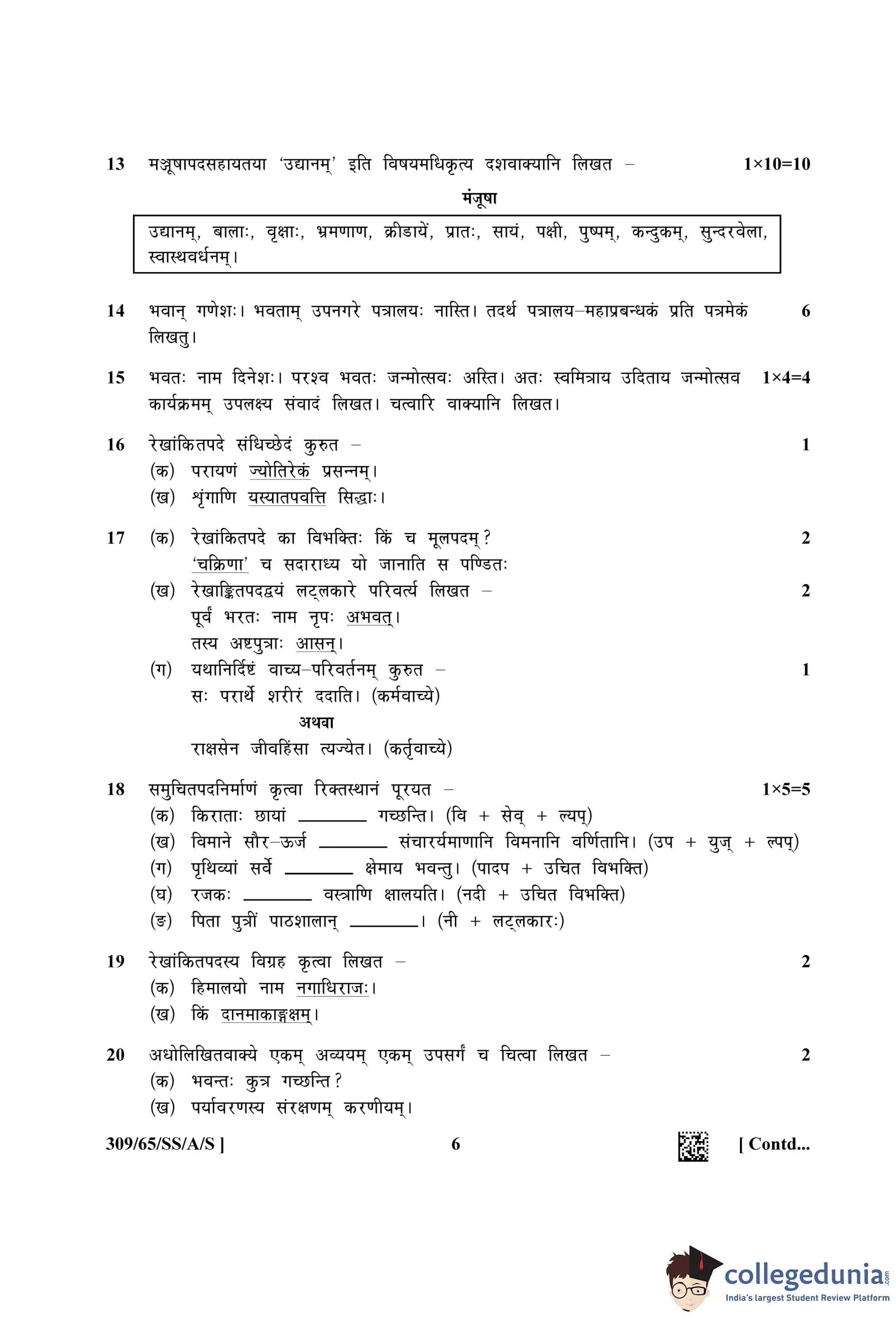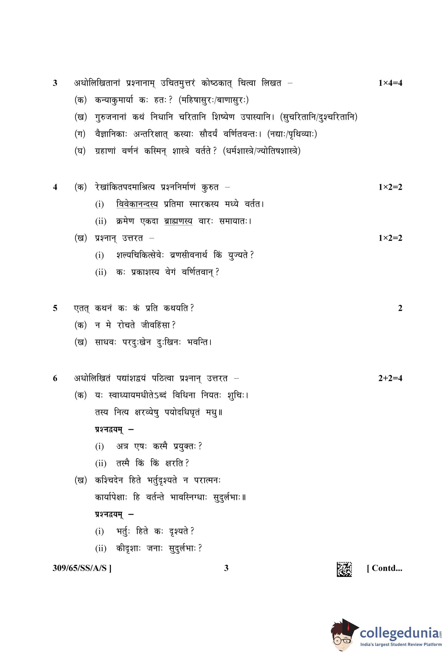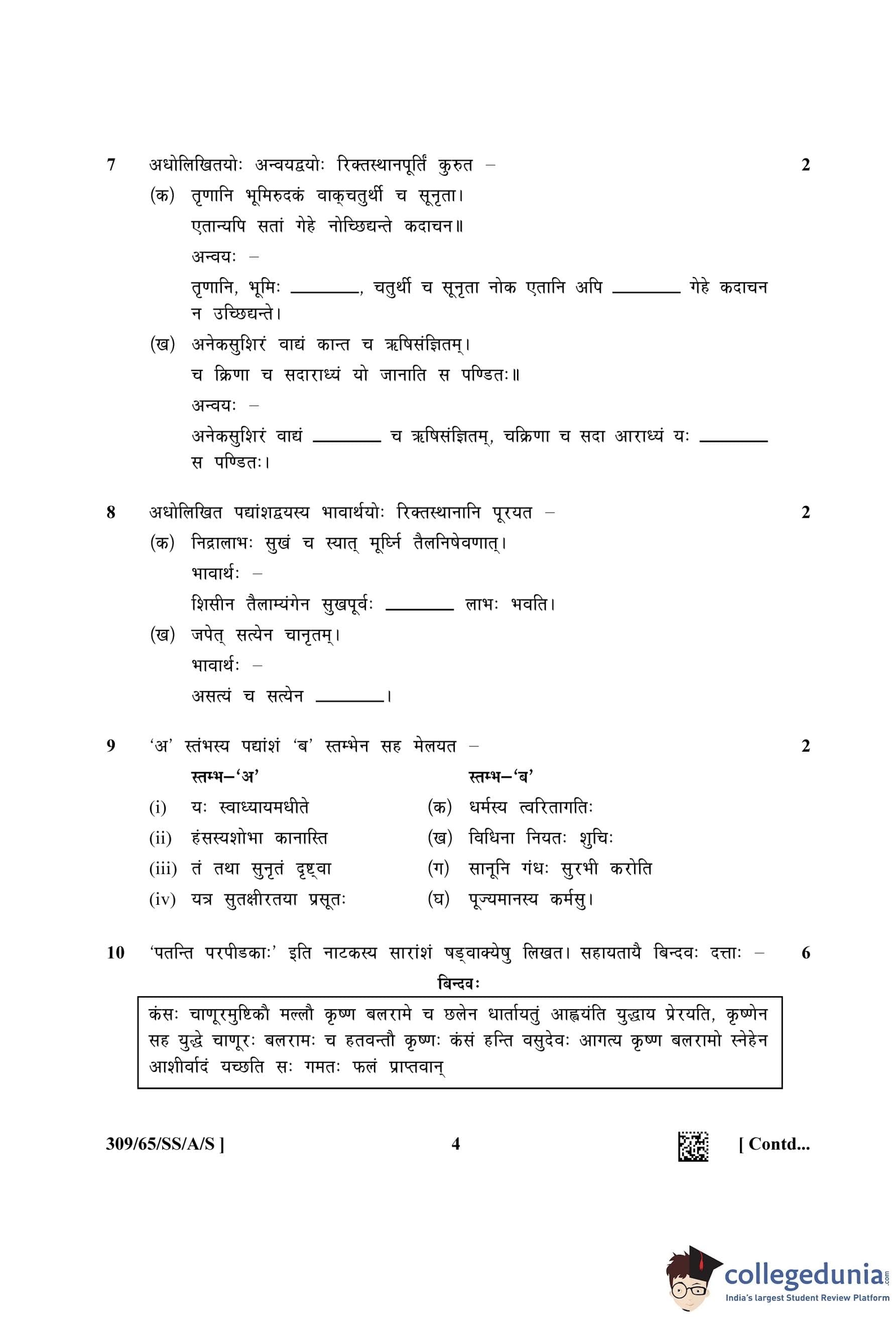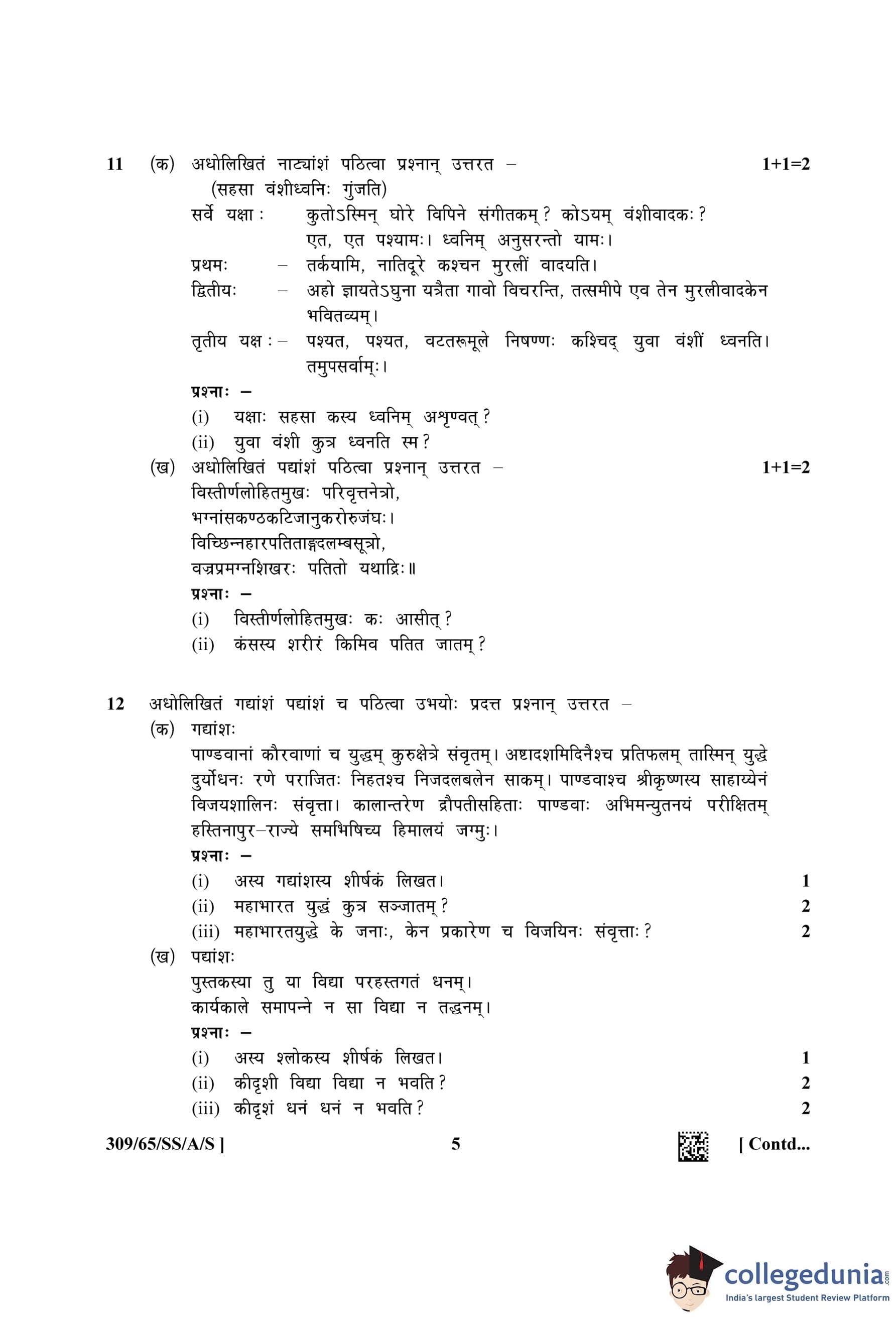 NIOS Class 12 Sanskrit (Set A) Question Paper 2023 with Answer Key