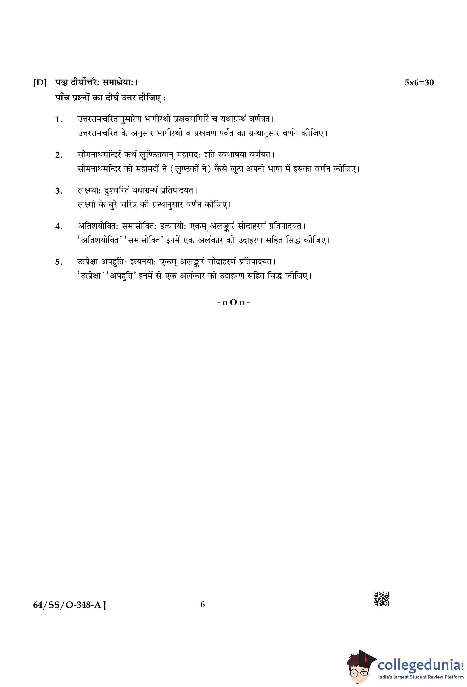 NIOS Class 12 Sanskrit Sahitya Compartment Question Paper 2022 with Answer Key