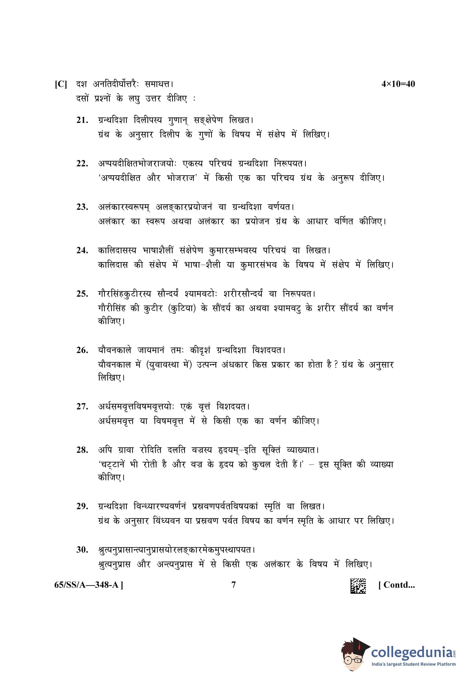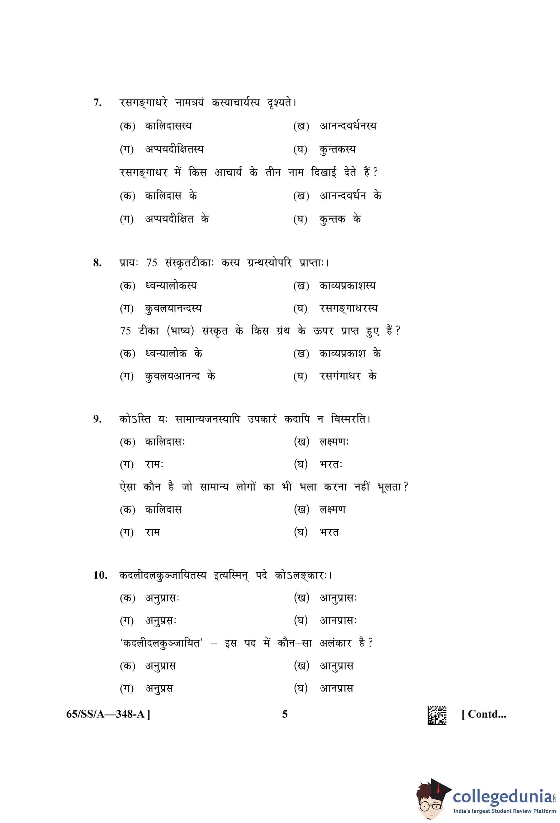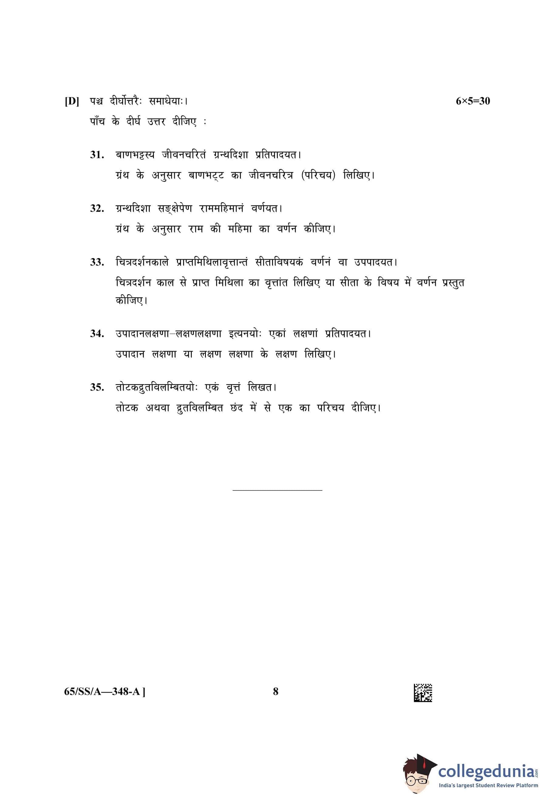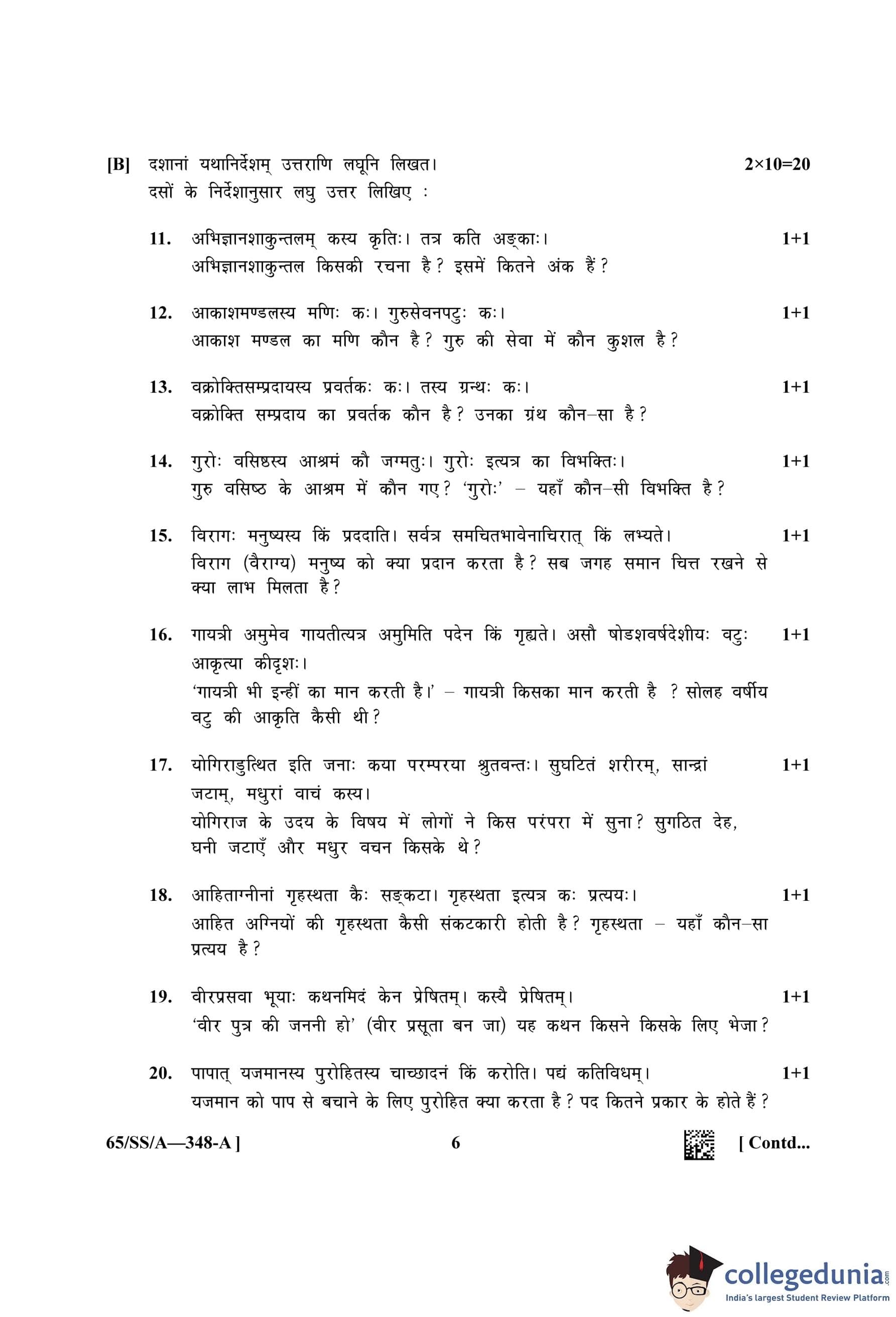 NIOS Class 12 Sanskrit Sahitya (Set A) Question Paper 2023 with Answer Key