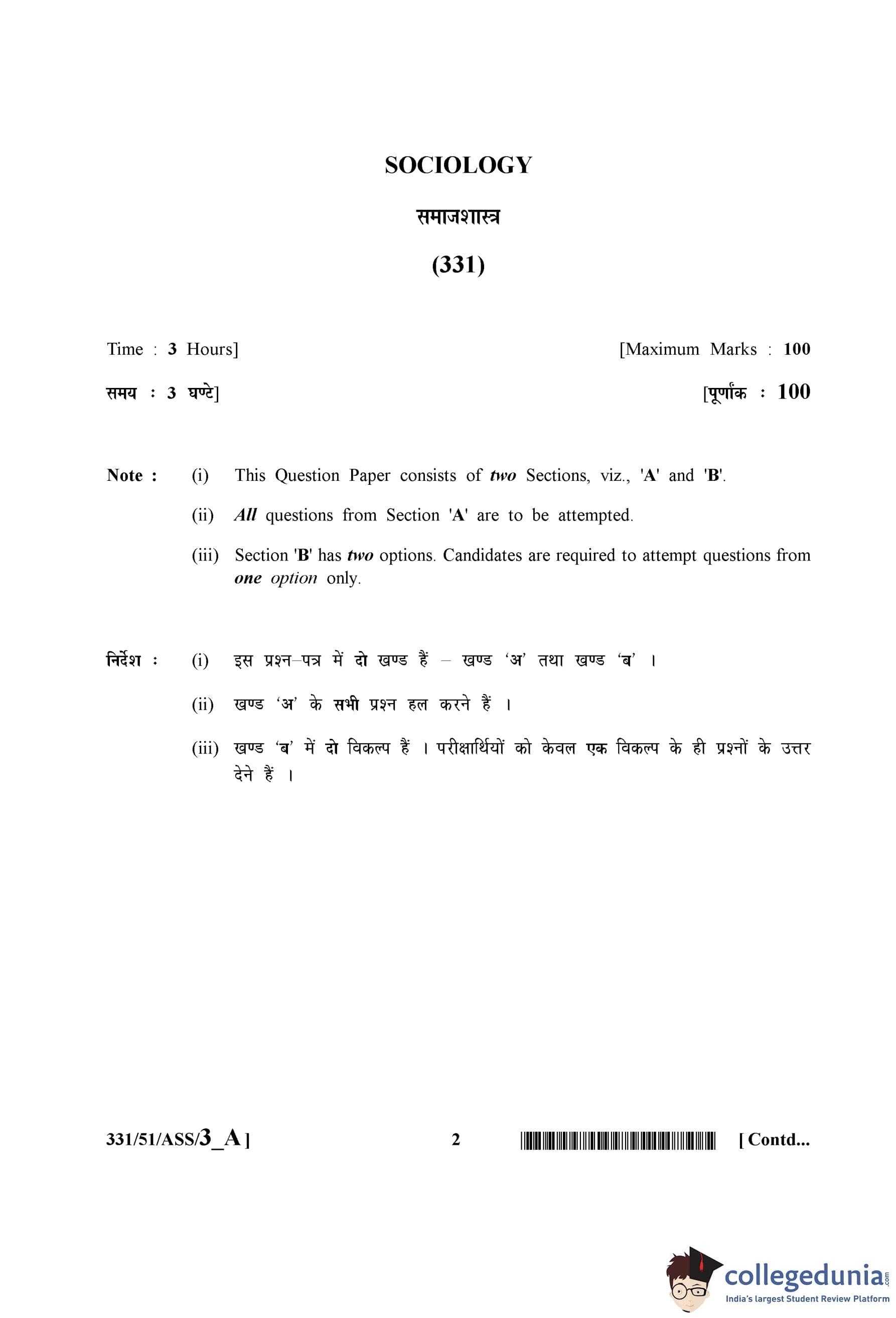 NIOS Class 12 Sociology Question Paper 2015 with Answer Key pdf is available for download here. The exam was conducted by National Institute of Open Schooling on May 6, 2015 in the Afternoon Session 2:30 PM to 5:30 PM. The question paper comprised a total of 29 questions divided among 2 sections.