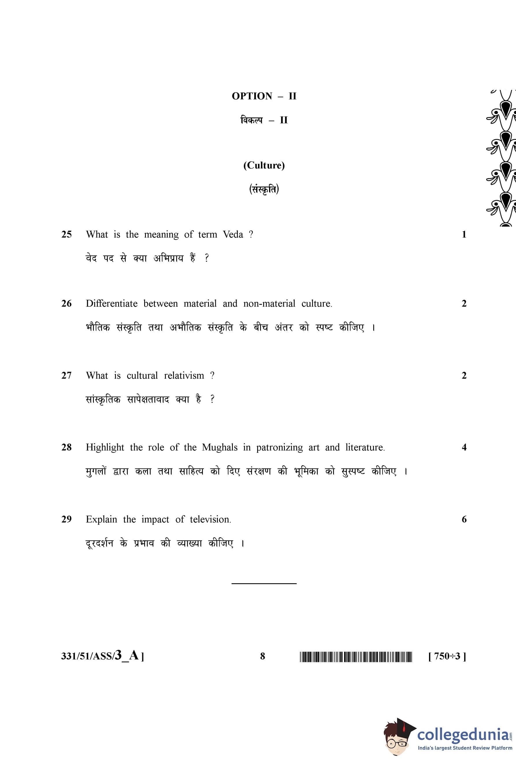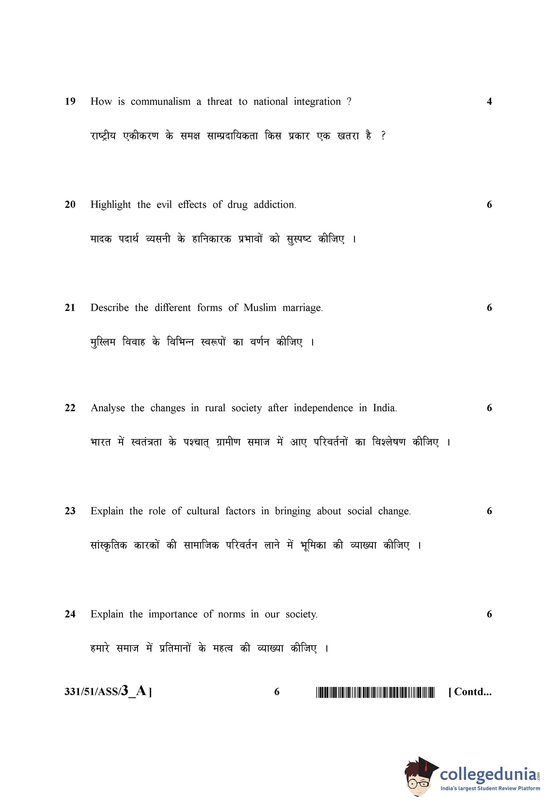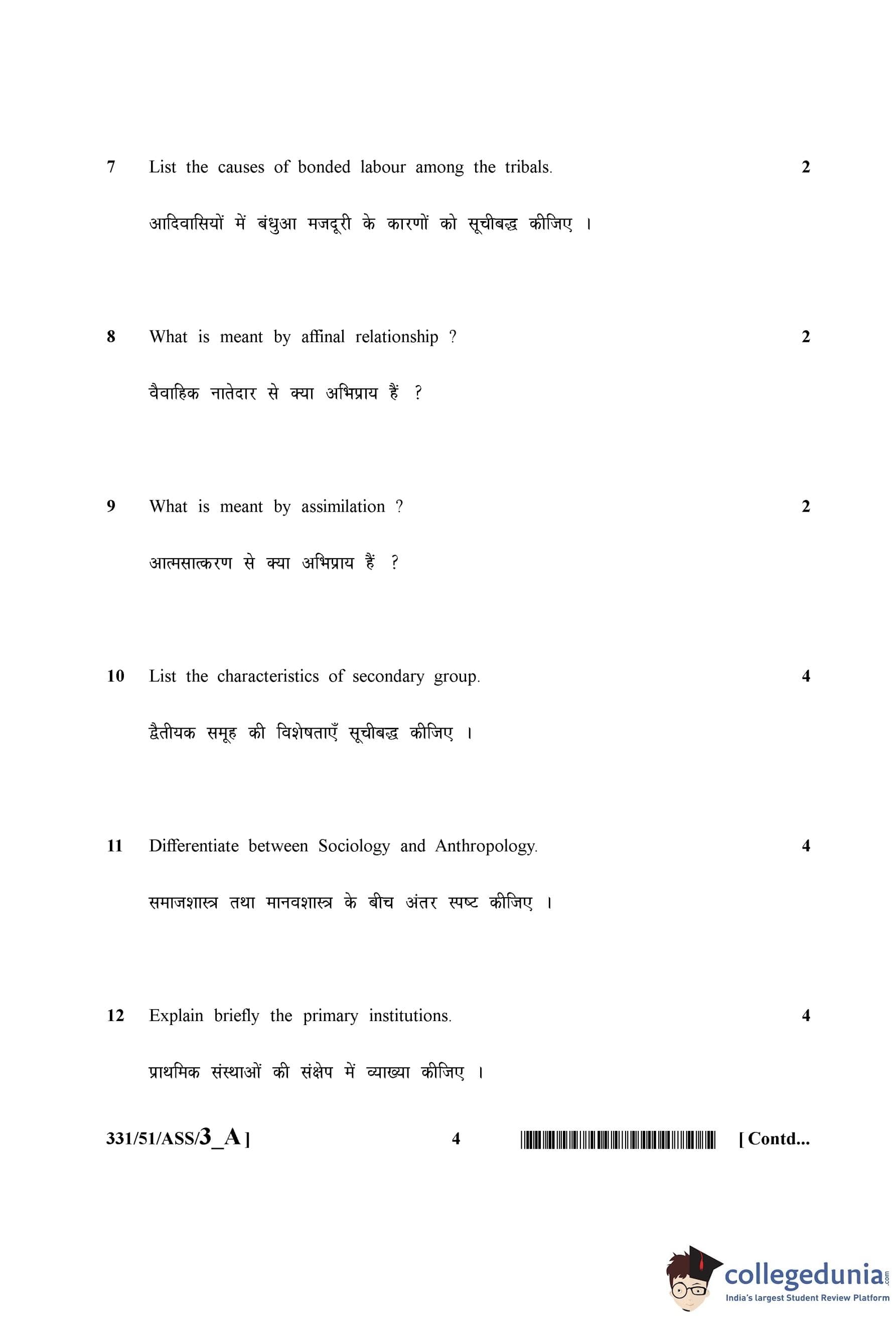 NIOS Class 12 Sociology Question Paper 2015 with Answer Key