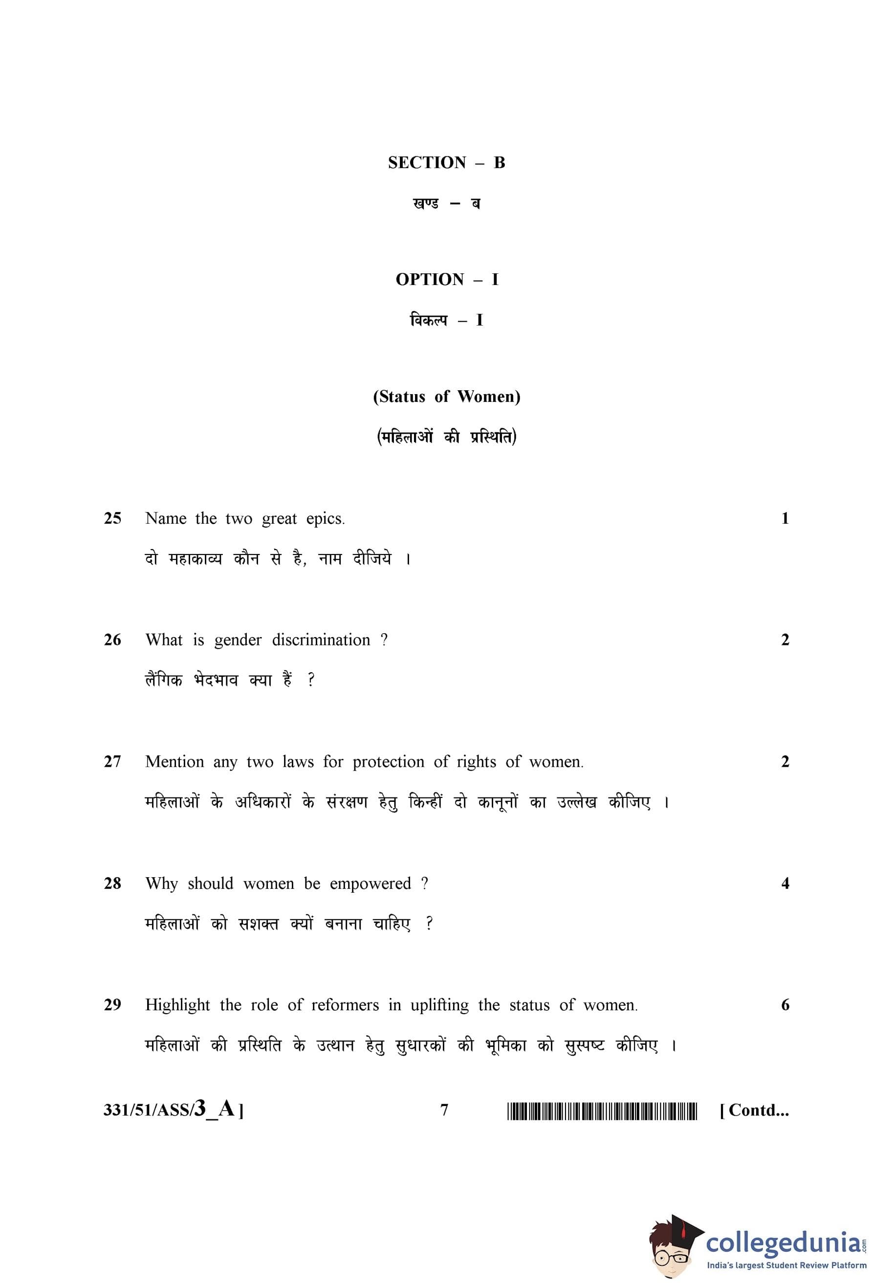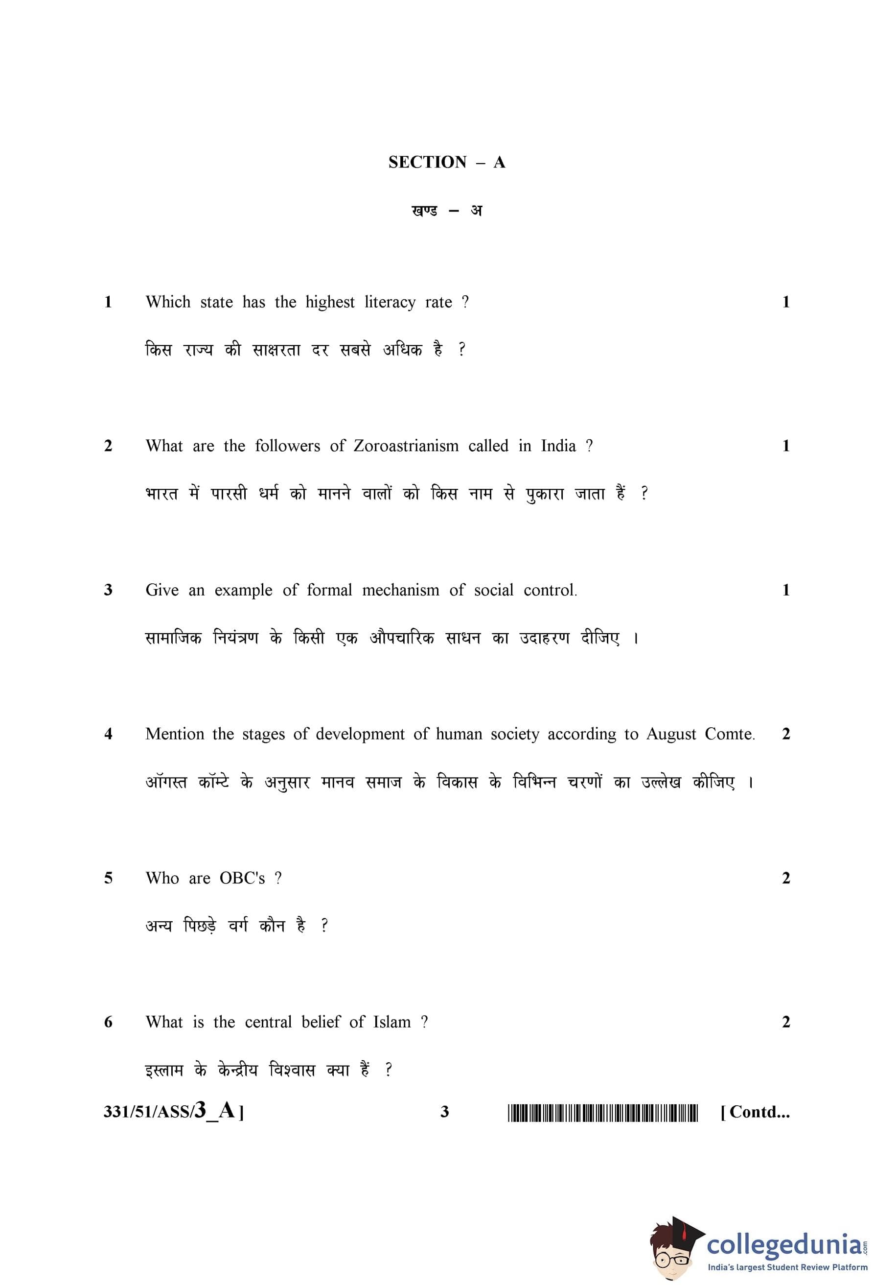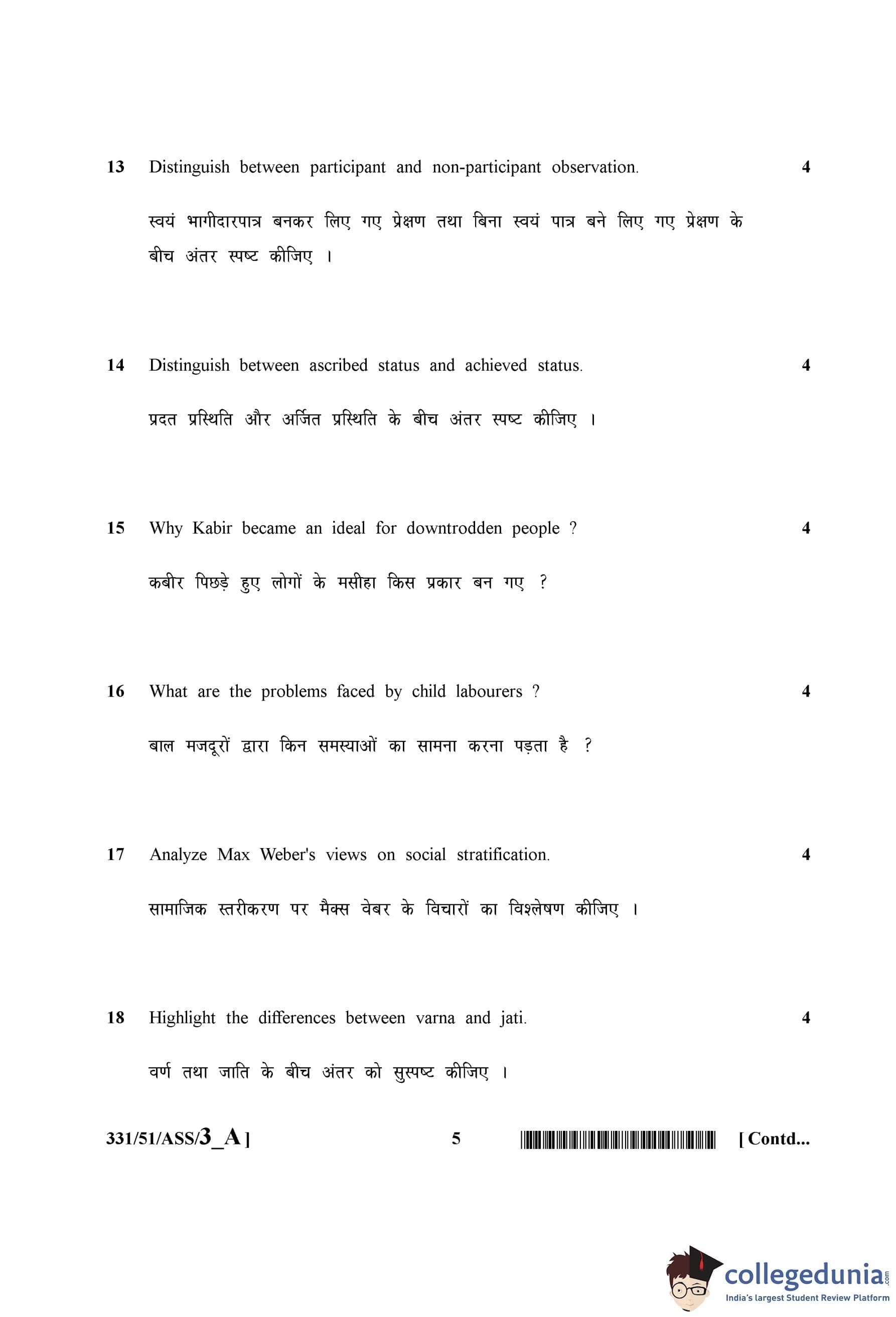 NIOS Class 12 Sociology Question Paper 2015 with Answer Key