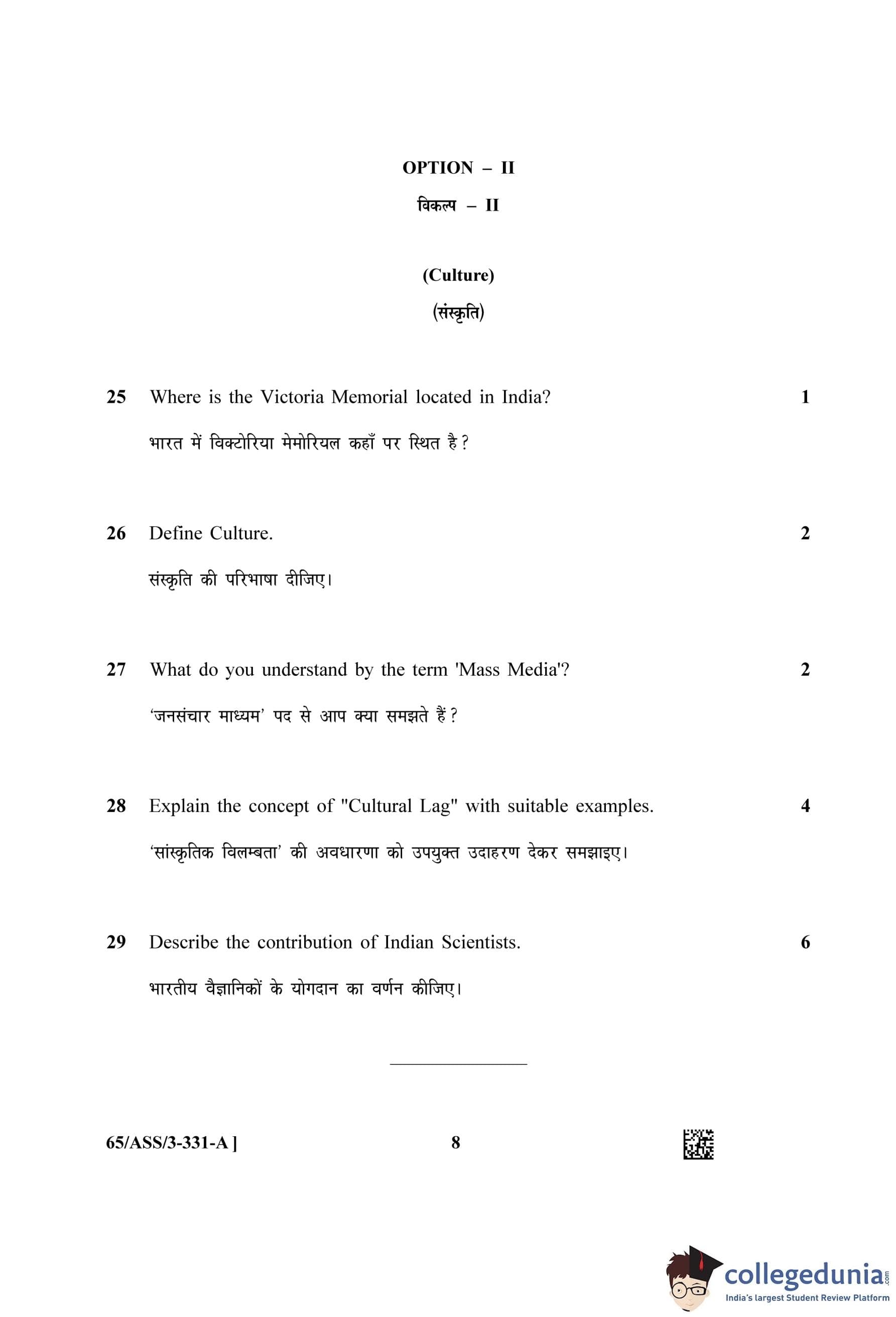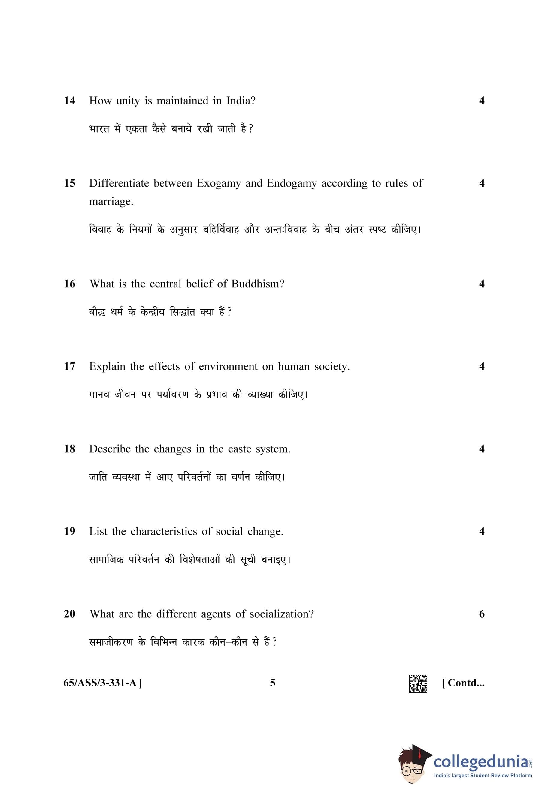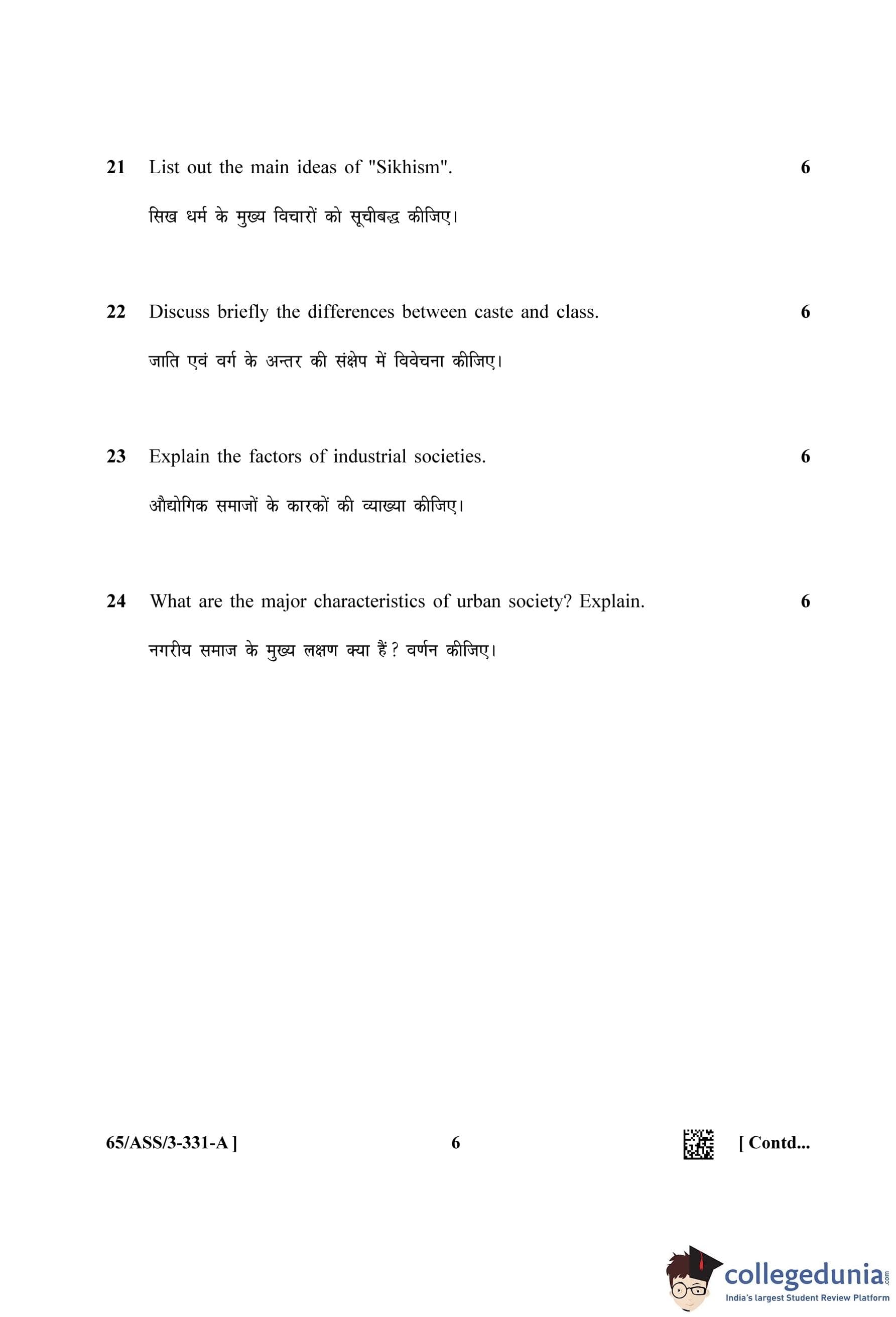NIOS Class 12 Sociology Question Paper 2023 with Answer Key pdf (Set A - ASS) is available for download here. The exam was conducted by National Institute of Open Schooling on April 18, 2023 in the Afternoon Session 2.30 PM to 5.30 PM. The question paper comprised a total of 34 questions divided among 2 sections.