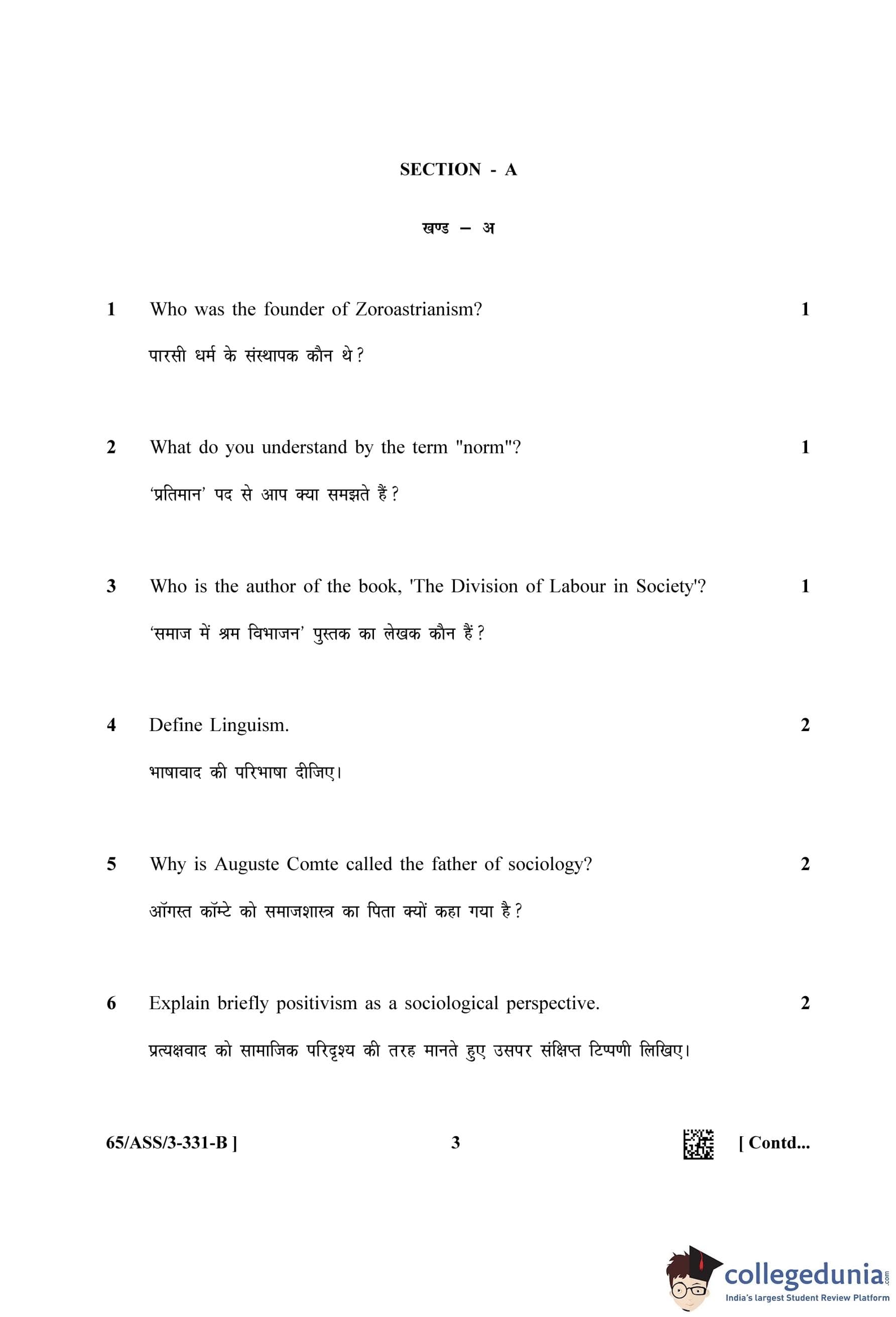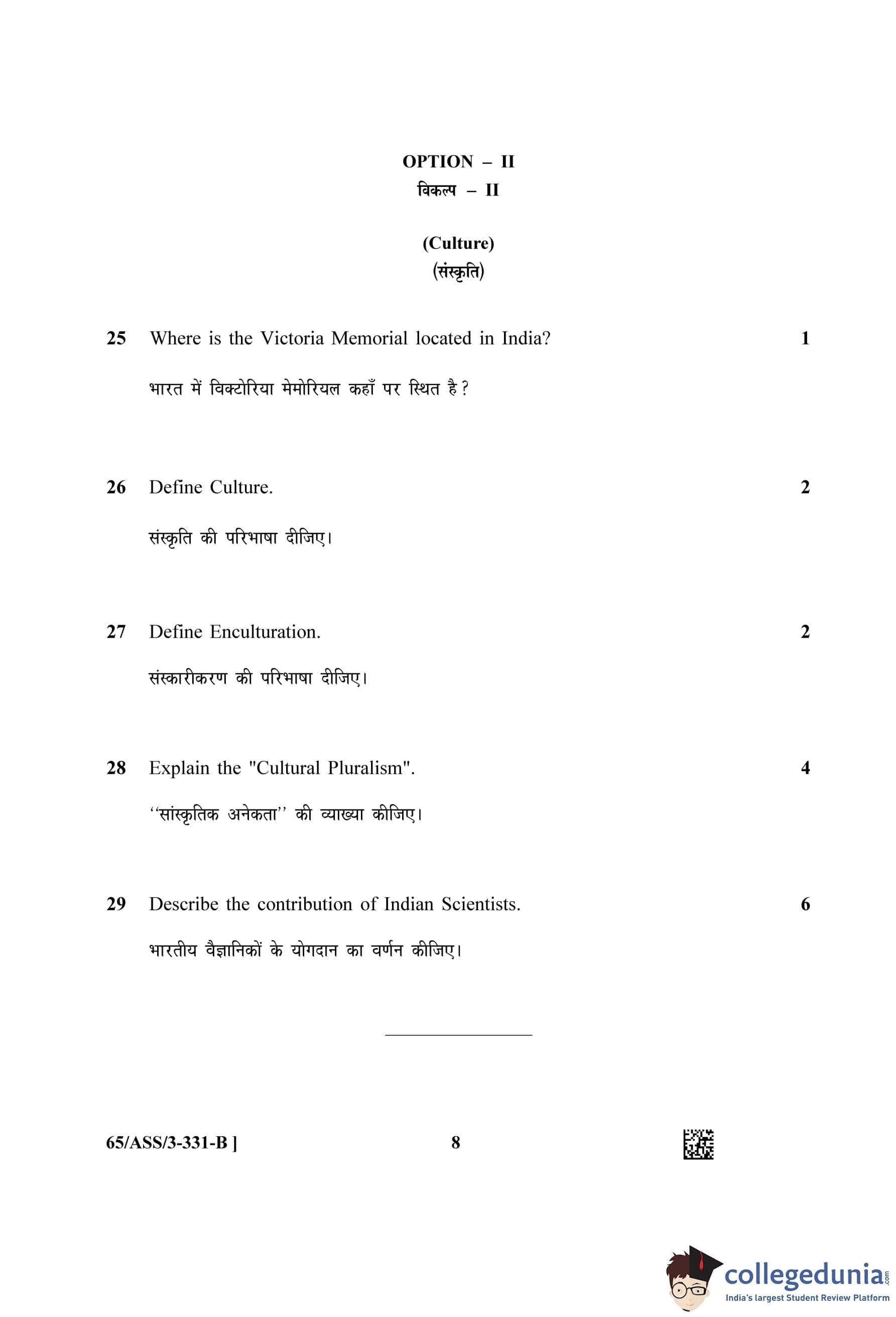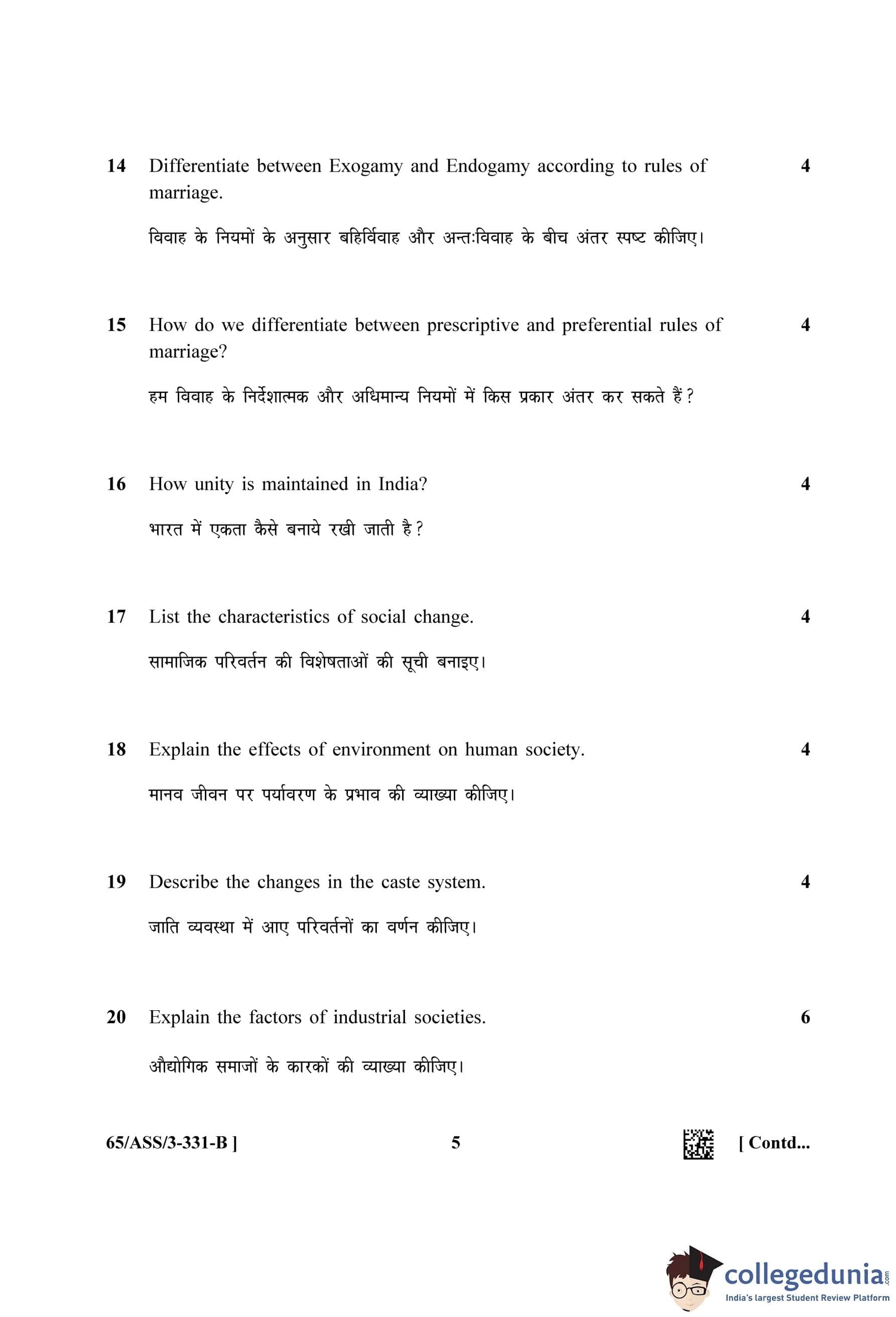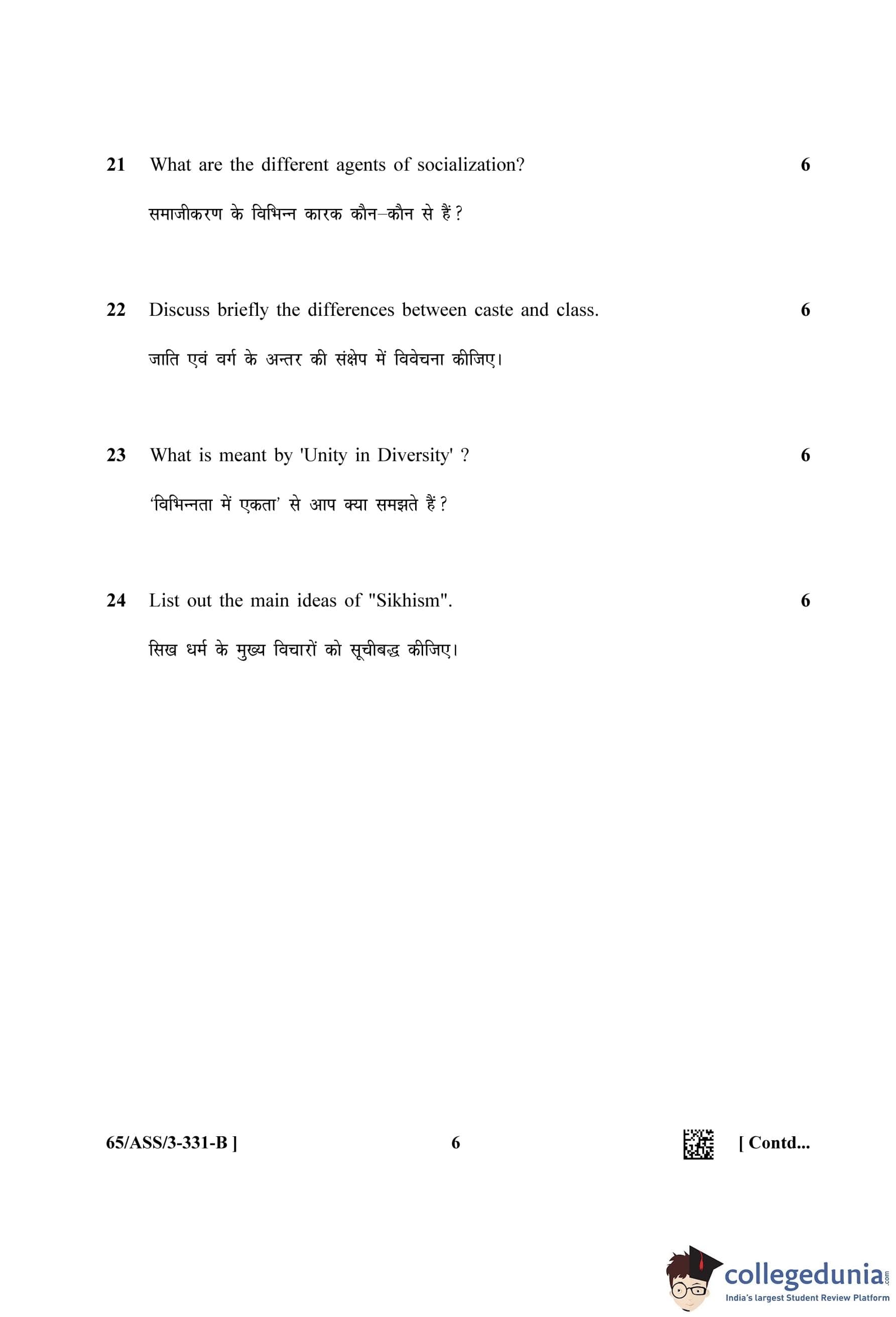 NIOS Class 12 Sociology Question Paper 2023 with Answer Key (Set B - ASS)