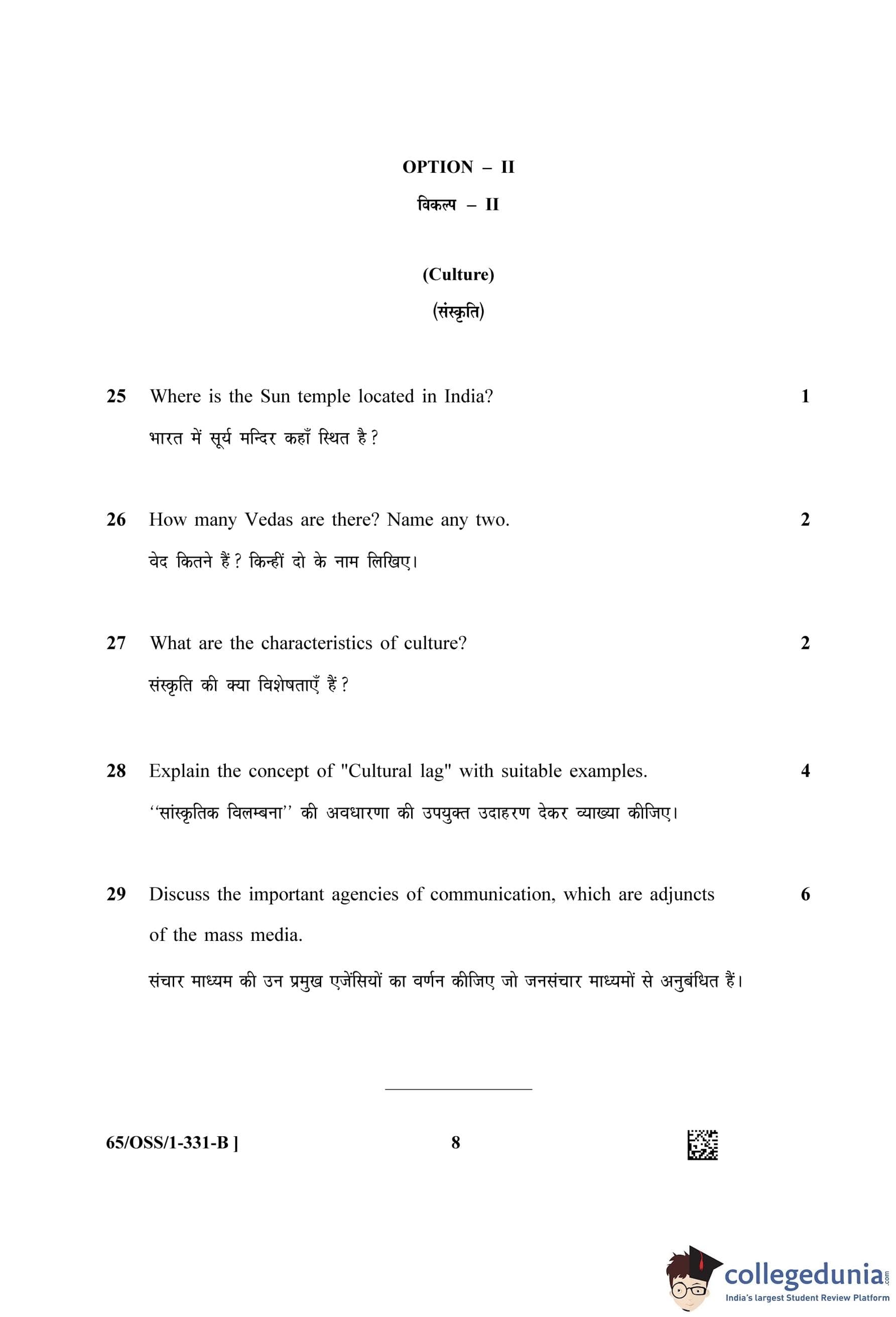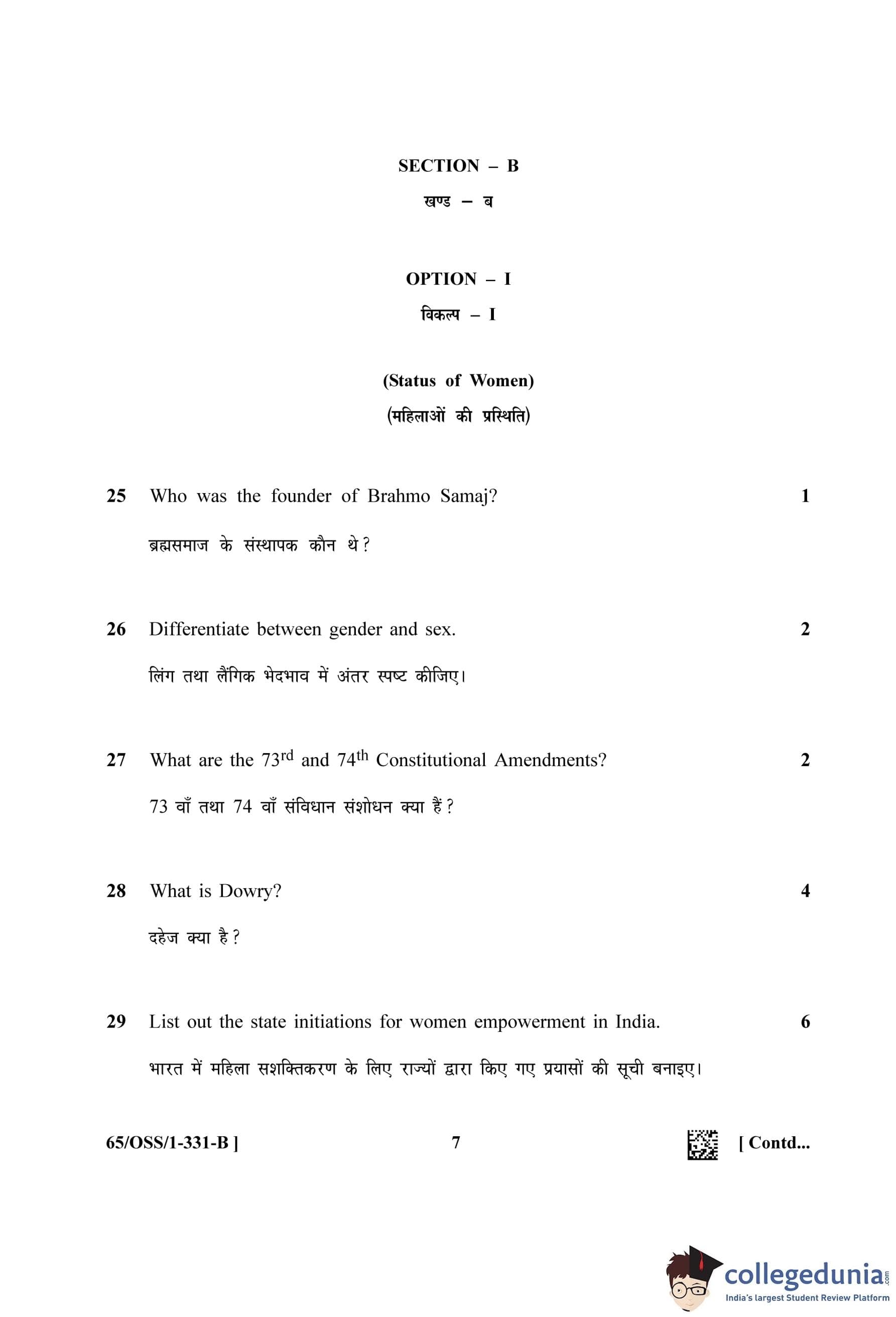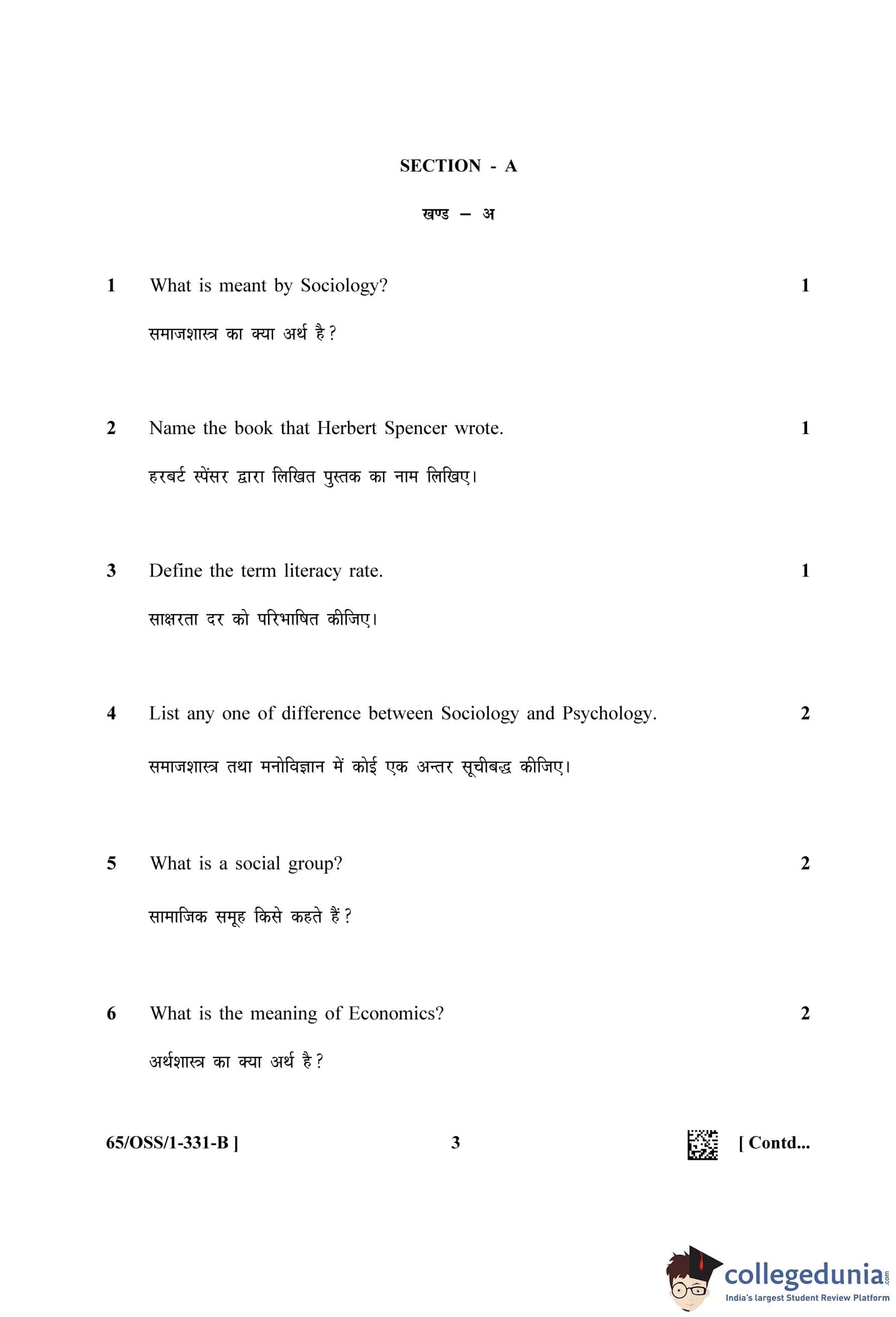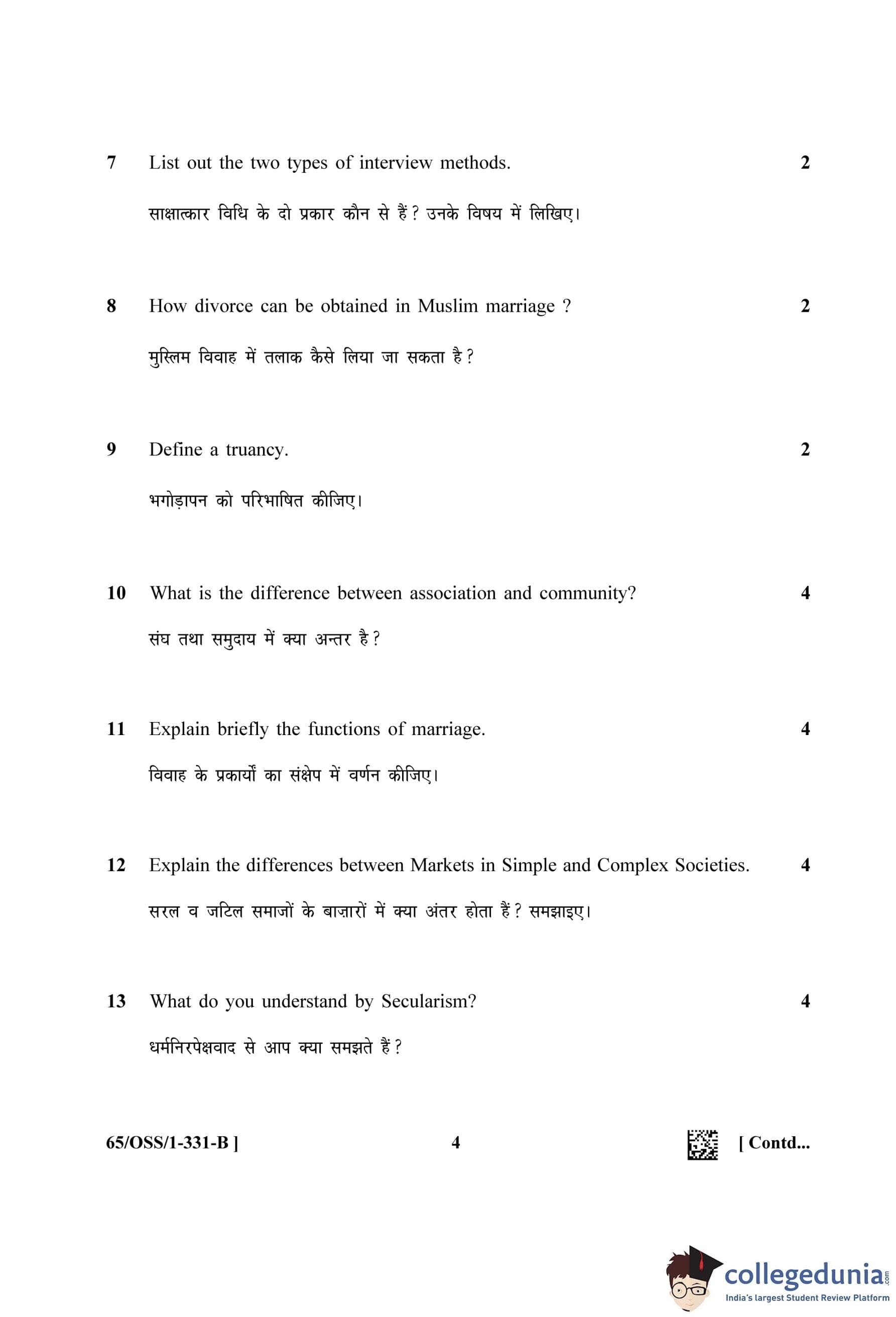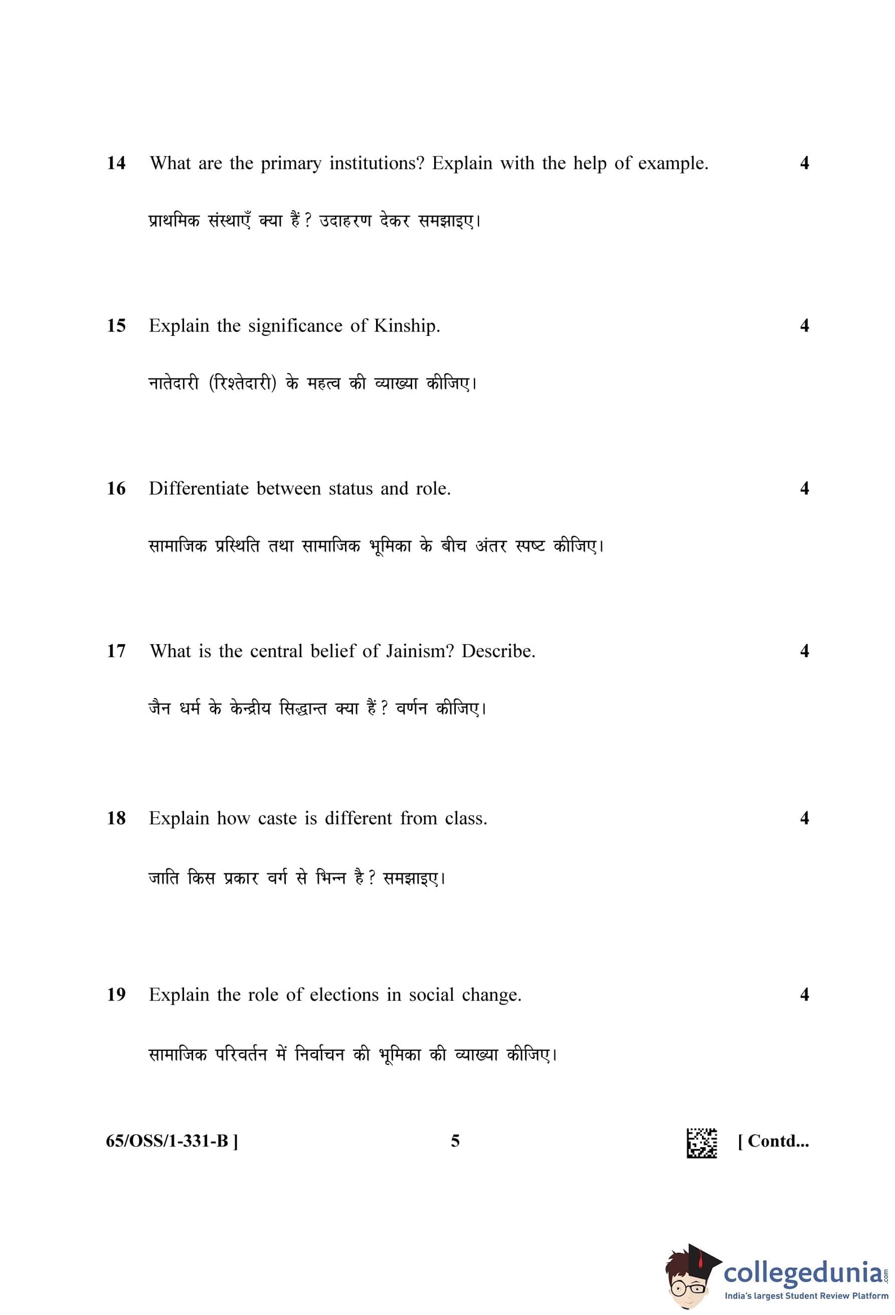 NIOS Class 12 Sociology Question Paper 2023 with Answer Key (Set B - OSS)