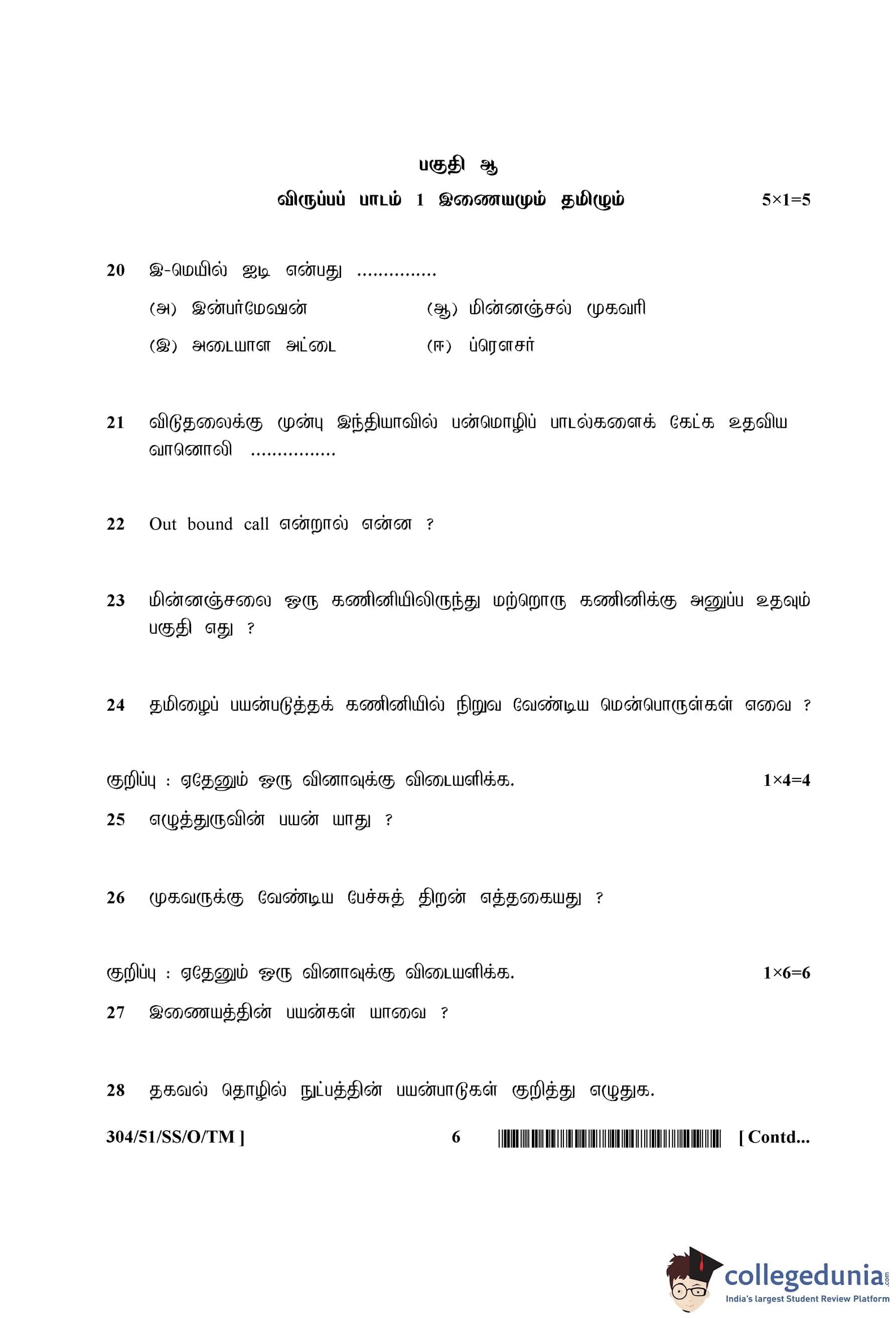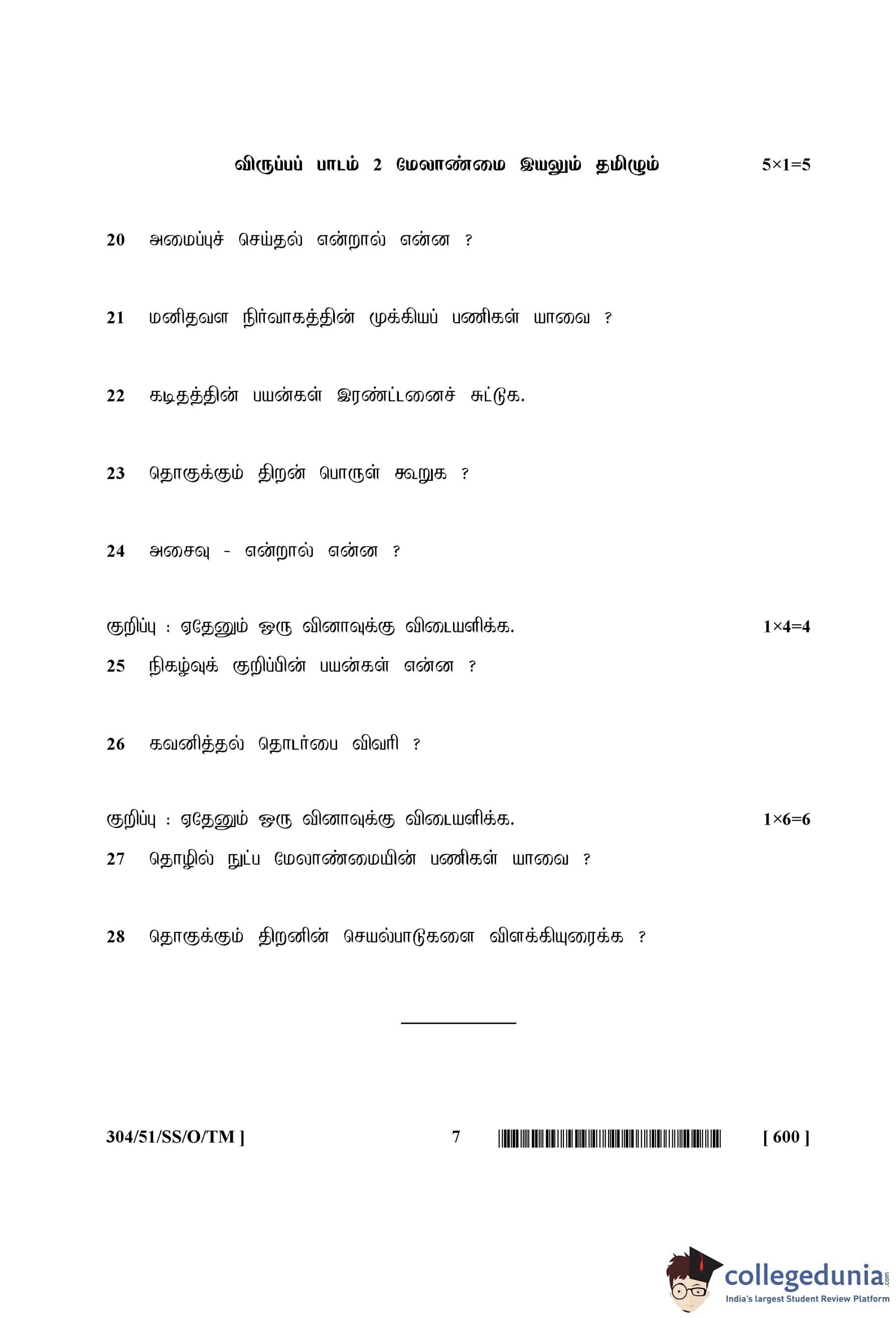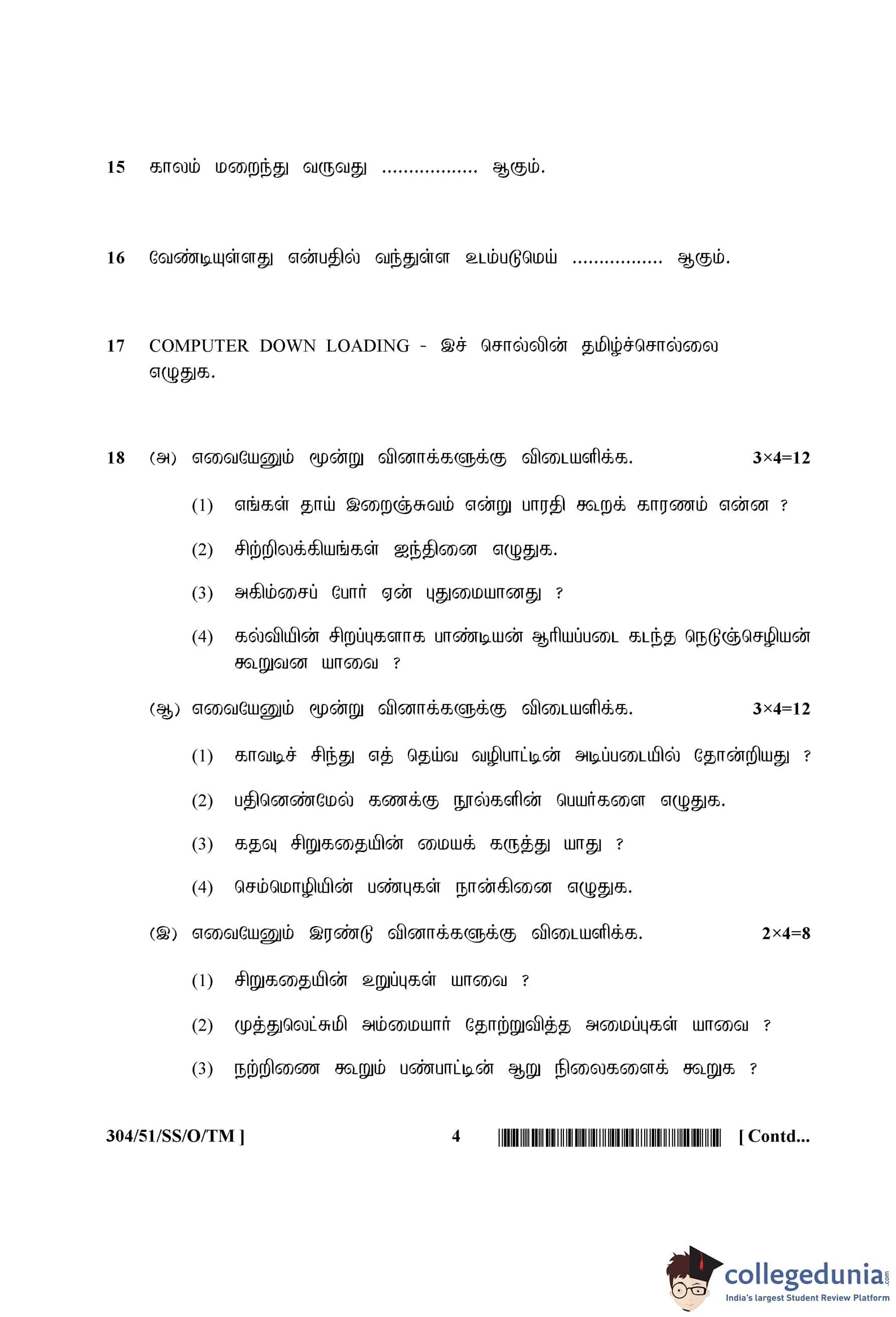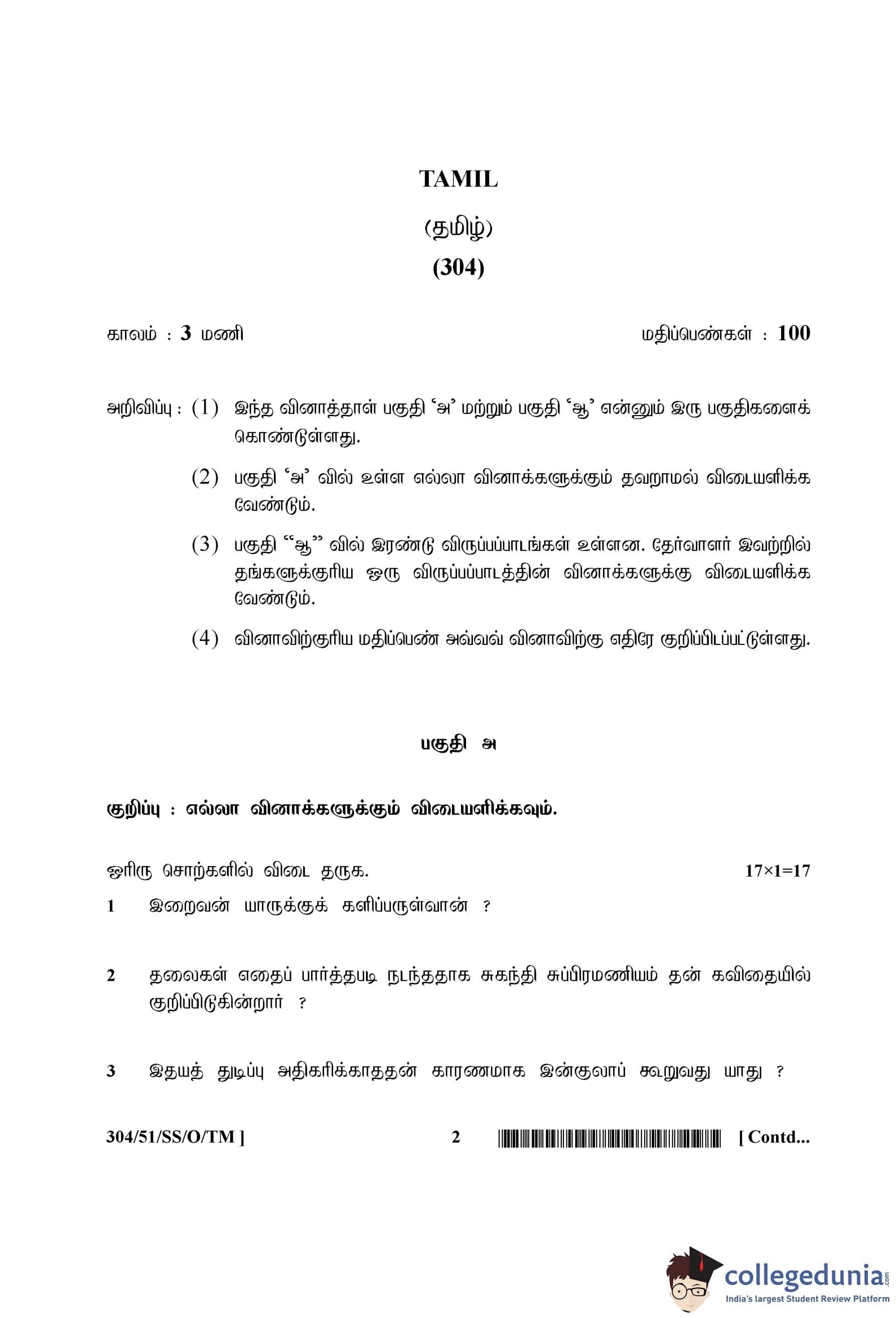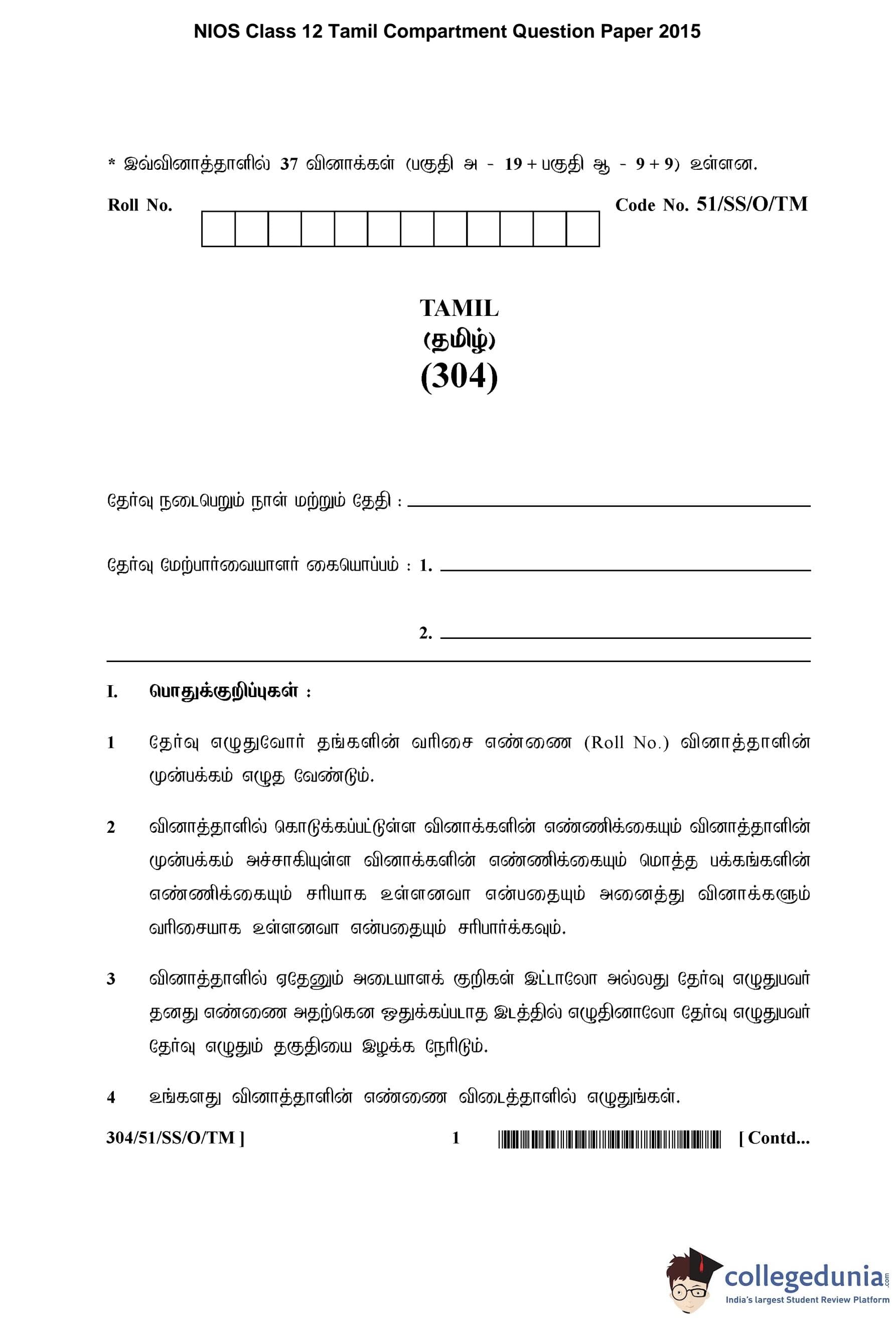 NIOS Class 12 Tamil Compartment Question Paper 2015 with Answer Key pdf is available for download here. The exam was conducted by National Institute of Open Schooling on October 7, 2015 in the Afternoon Session 2:30 PM to 5:30 PM. The question paper comprised a total of 28 questions divided among 2 sections.