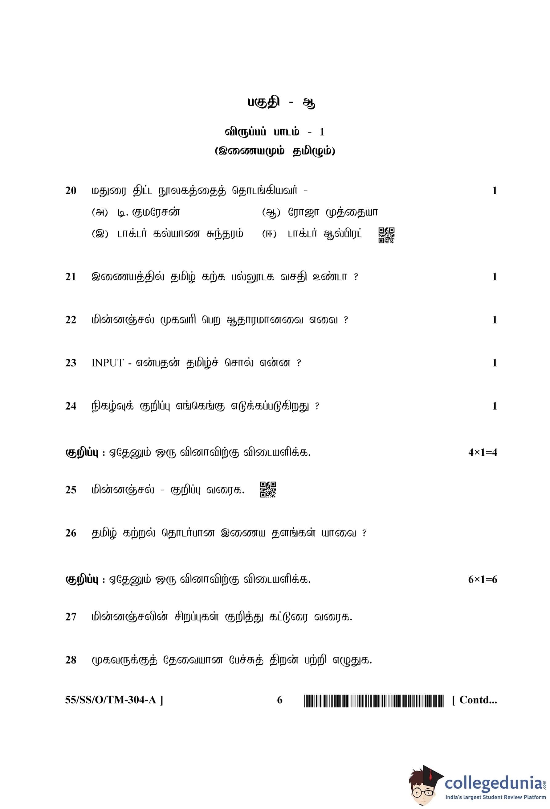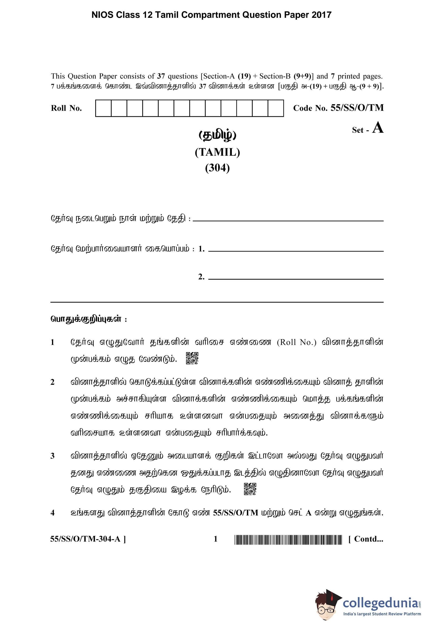 NIOS Class 12 Tamil Compartment Question Paper 2017 with Answer Key